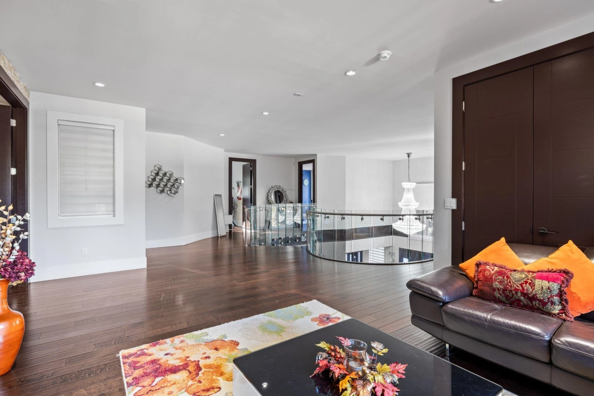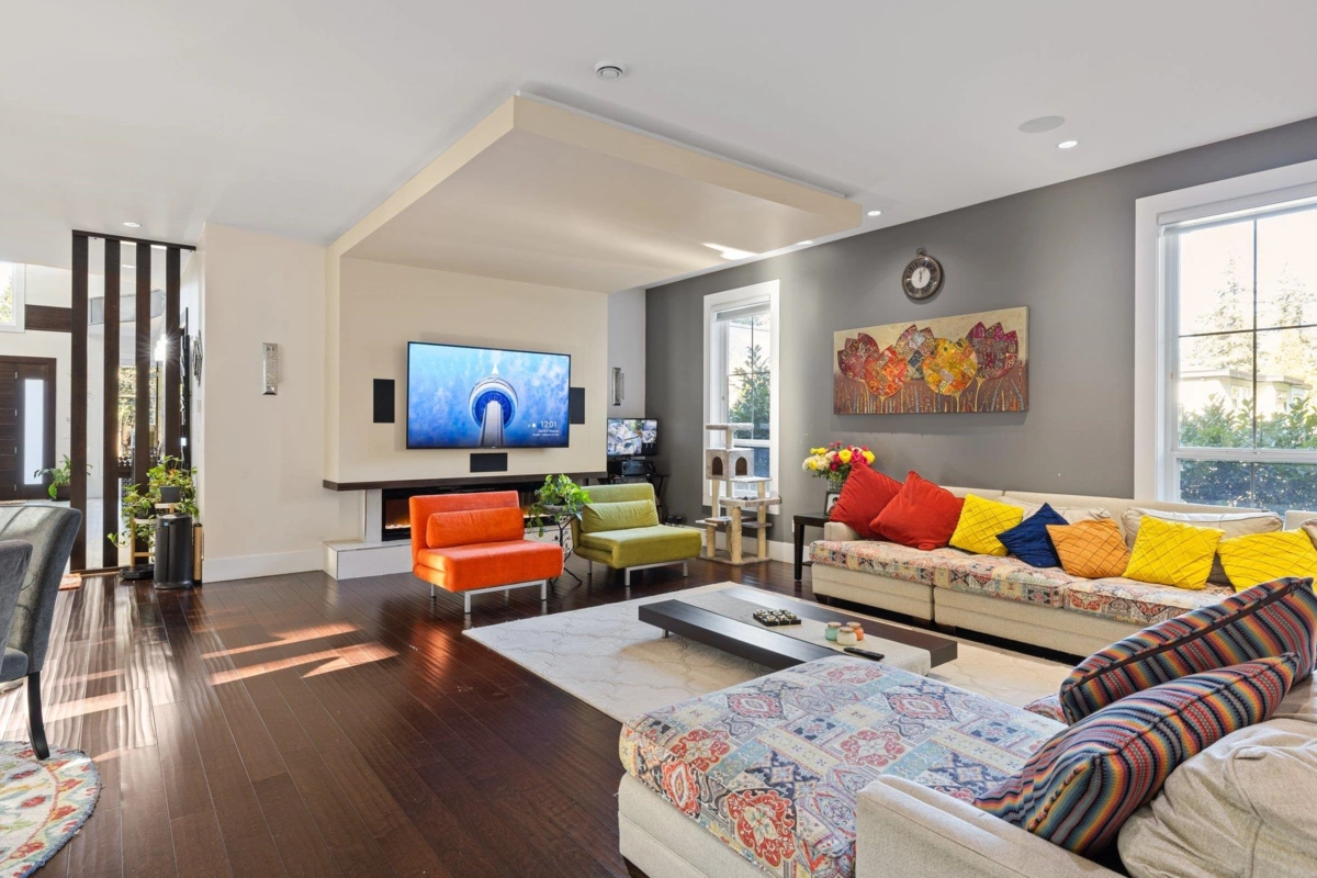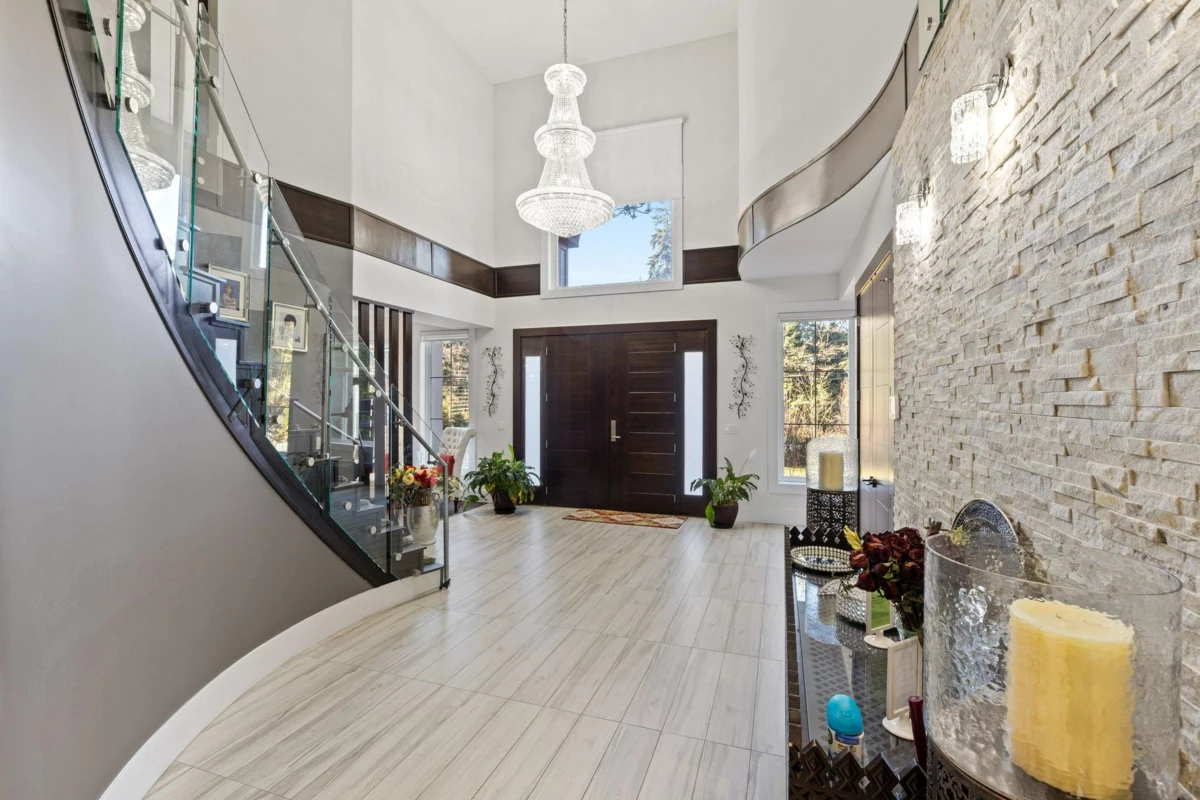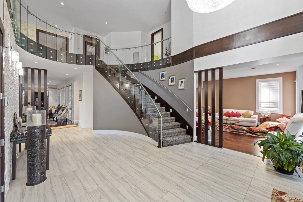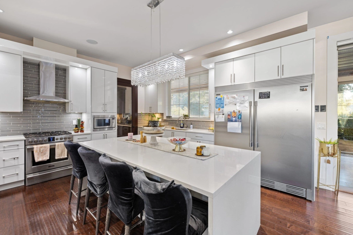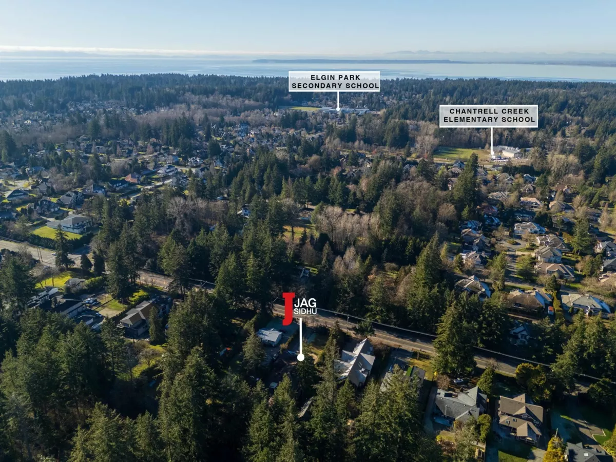 This exquisite 7,000+ sq ft home on a 0.55-acre lot showcases impeccable craftsmanship and high-end finishes. The interior features vaulted ceilings, feature walls with fireplaces, and an open-concept layout. The gourmet kitchen boasts white quartz countertops, a large waterfall island, and a WOK/spice kitchen, flowing into the bright living and dining areas. The main floor includes an office, a bedroom with an ensuite, and a covered deck. Upstairs, a spiral staircase leads to four bedrooms, all with ensuites, including a grand master suite with a private enclosed deck. Additional highlights include a two-bedroom nanny suite and a large solarium upstairs. Located in desirable Elgin Park, this is a must-see! Call today!