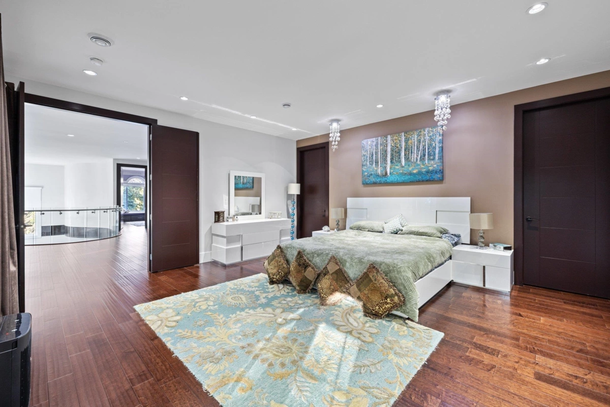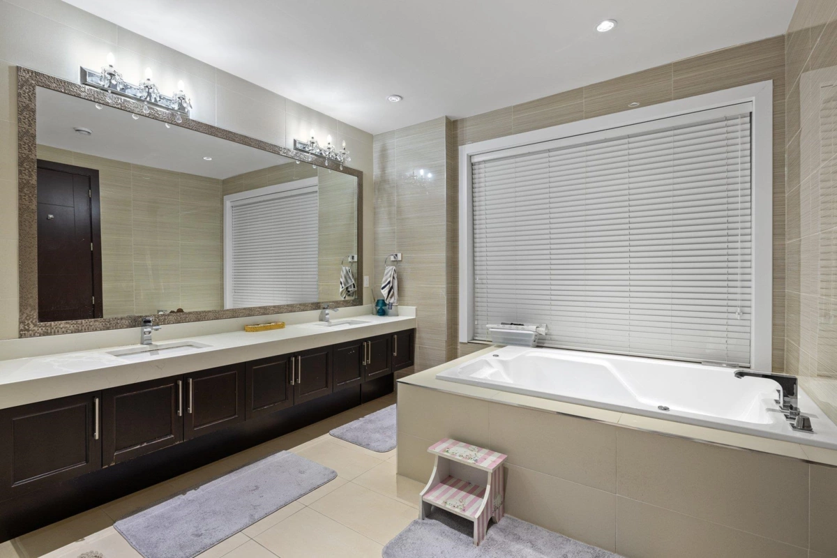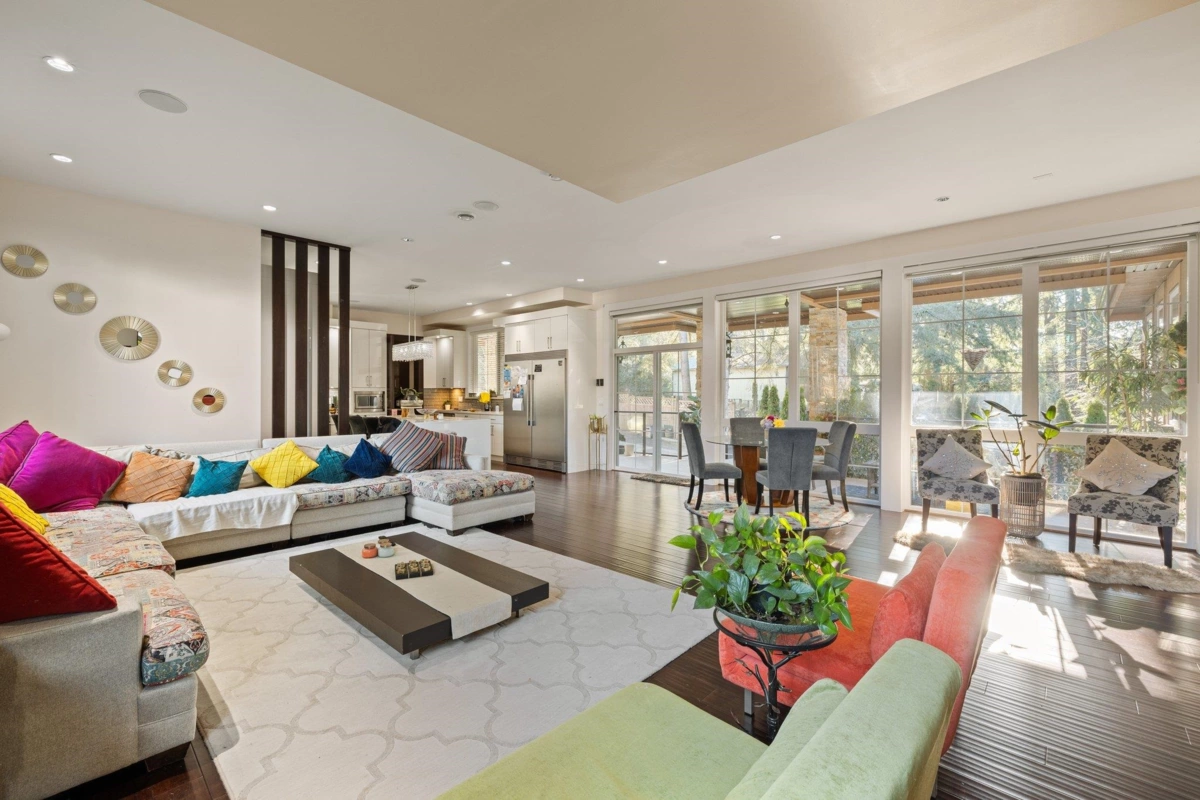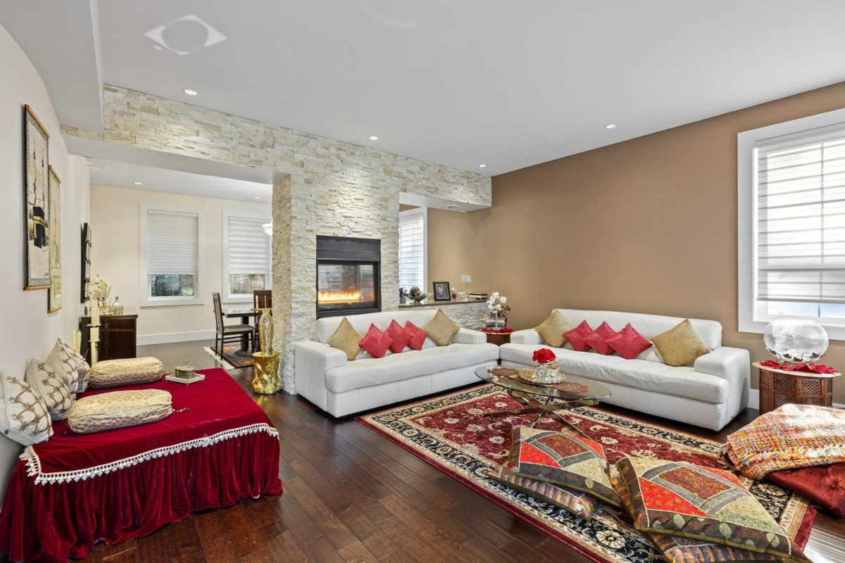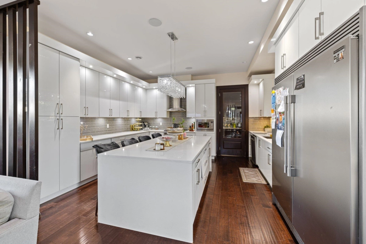 This exquisite 7,000+ sq ft home on a 0.55-acre lot showcases impeccable craftsmanship and high-end finishes. The interior features vaulted ceilings, feature walls with fireplaces, and an open-concept layout. The gourmet kitchen boasts white quartz countertops, a large waterfall island, and a WOK/spice kitchen, flowing into the bright living and dining areas. The main floor includes an office, a bedroom with an ensuite, and a covered deck. Upstairs, a spiral staircase leads to four bedrooms, all with ensuites, including a grand master suite with a private enclosed deck. Additional highlights include a two-bedroom nanny suite and a large solarium upstairs. Located in desirable Elgin Park, this is a must-see! Call today!