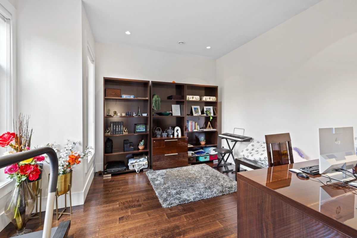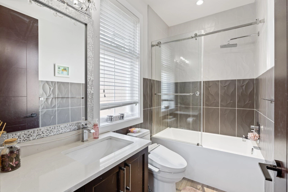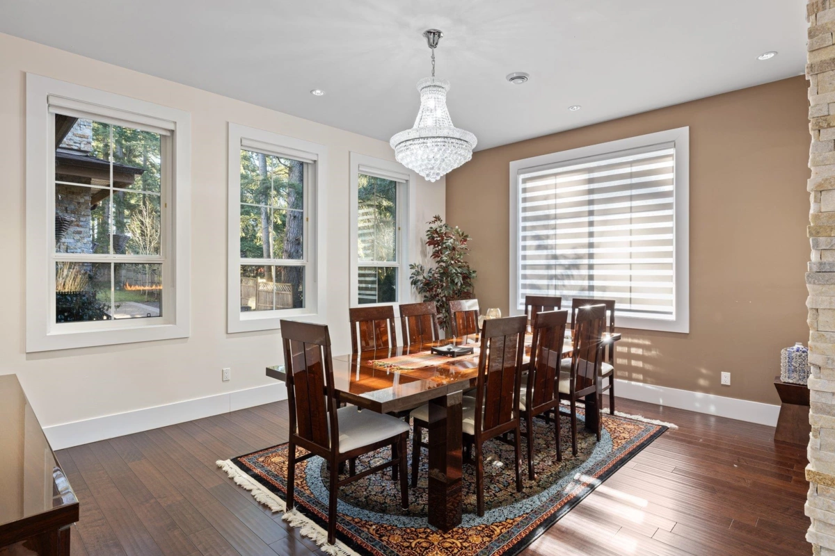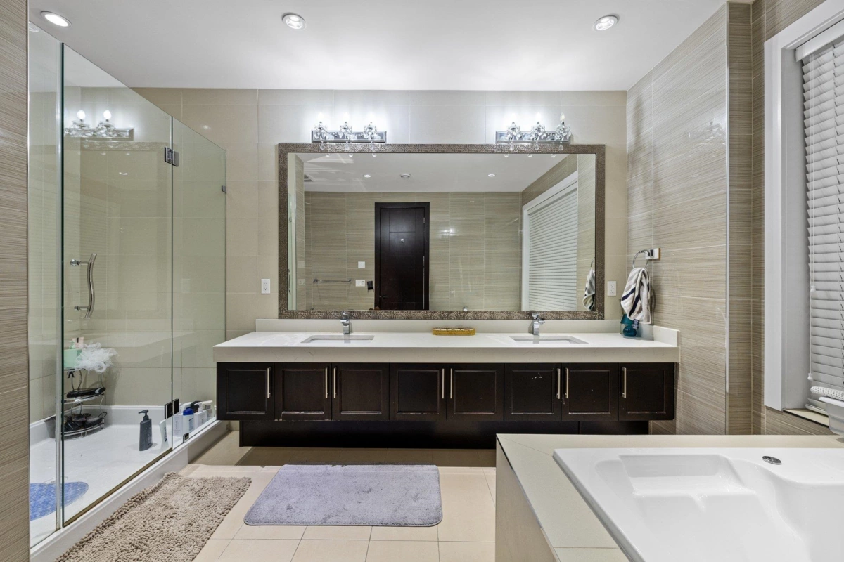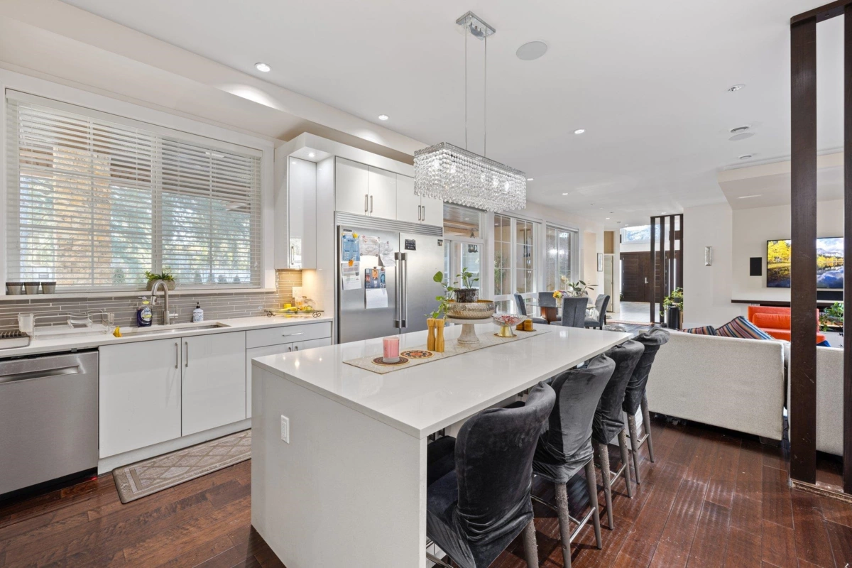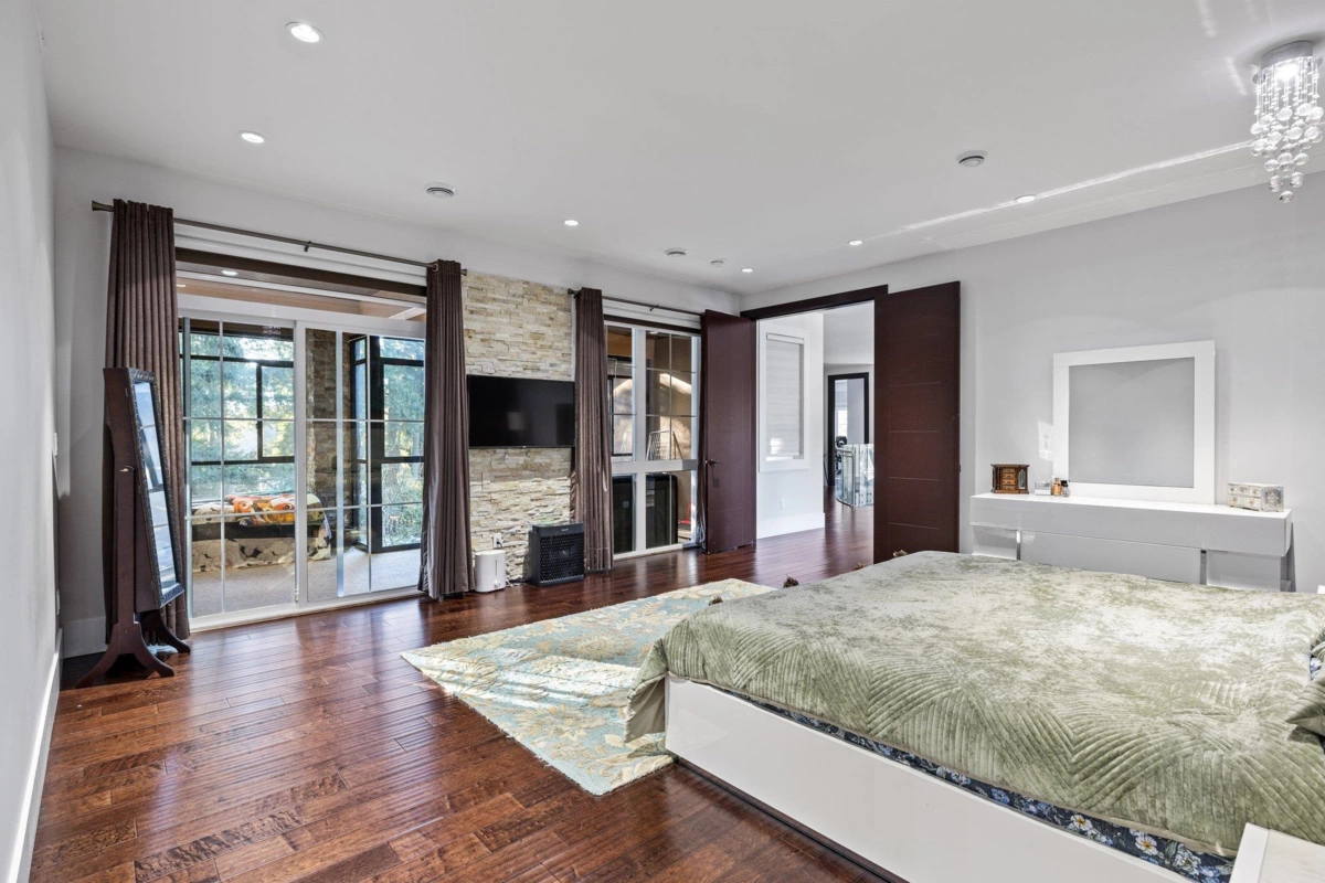 This exquisite 7,000+ sq ft home on a 0.55-acre lot showcases impeccable craftsmanship and high-end finishes. The interior features vaulted ceilings, feature walls with fireplaces, and an open-concept layout. The gourmet kitchen boasts white quartz countertops, a large waterfall island, and a WOK/spice kitchen, flowing into the bright living and dining areas. The main floor includes an office, a bedroom with an ensuite, and a covered deck. Upstairs, a spiral staircase leads to four bedrooms, all with ensuites, including a grand master suite with a private enclosed deck. Additional highlights include a two-bedroom nanny suite and a large solarium upstairs. Located in desirable Elgin Park, this is a must-see! Call today!