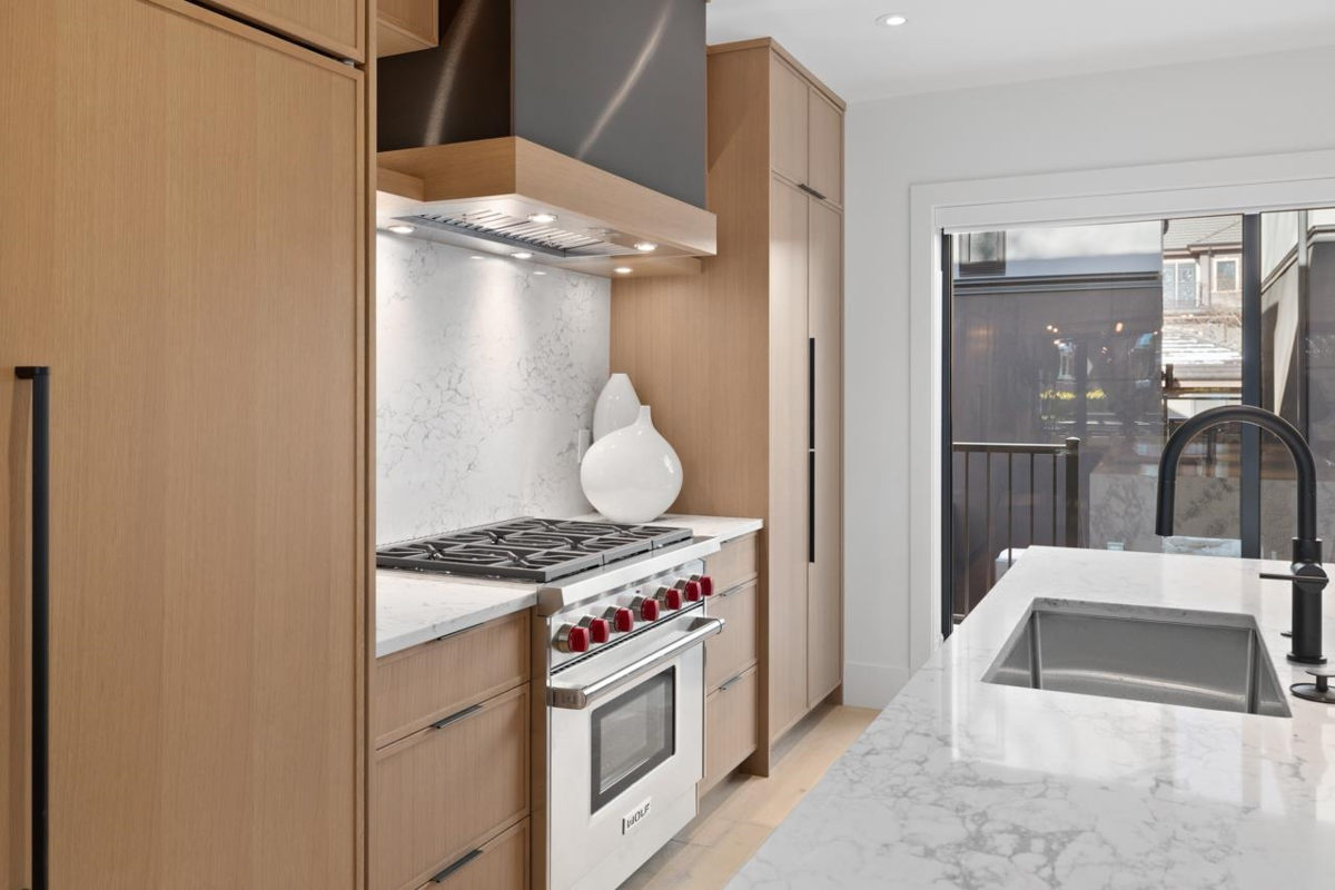 "The Heights" by Crossmark Projects offers this 3-bed+Den, 3.5-bath residence spanning 3 thoughtfully designed levels. The main floor boasts a spacious living room, a dining area perfect for family gatherings, and a gourmet kitchen with a 4'x10' island, custom oak cabinetry, integrated Sub-Zero fridge, Wolf 6-burner stove, and a large pantry. The upper level is a family retreat with 3 beds+ a primary suite with hotel-inspired ensuite. The versatile lower level includes a cozy theater/rec room, bedroom/office, and flexible gym space and exterior entry. Enjoy large front and back yards, parking, ample storage, and unbeatable walkability to all of Kerrisdale's amenities. Open House Nov 29th/30th Sat 2-4pm/Sun 12-1:30pm