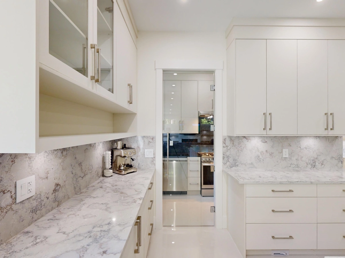 This exceptional luxury half acre estate residence is nestled in the prestigious Sunnyside Park area of South Surrey close to Chantrell Creek and Elgin Park Secondary School. This Modern inspired residence, with meticulous workmanship boasts 4 Bedrooms upstairs and guestroom on main, all ensuites. Royal master suite with Luxury bath and huge 16 by 10 Walkin closet. Huge Living and dinning room with high ceiling. Luxurious kitchen with top of the line THERMADOR appliances and separate spice kitchen. Big 31'8 by 18 Covered patio with full outdoor kitchen and built-in Firepit Table. Step outside to a sprawling backyard, perfect for entertainment and leisure, complemented by natural beauty of tall trees. FULLY LOADAD.