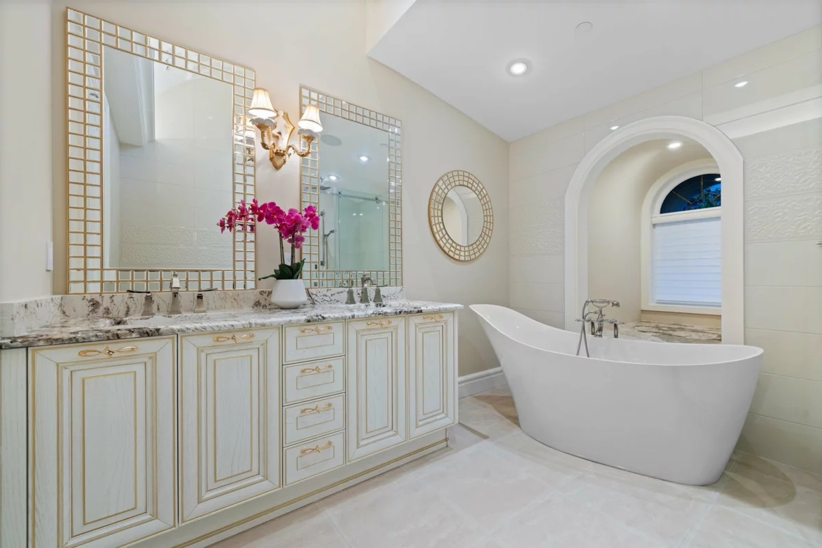 This Ultra Luxurious 3 lvl 4645 sqft West Vancouver Parisienne Masterpiece with Beautiful South facing Ocean Views was Built in Dec 2020 on a Lg private 8448 sqft Garden Oasis perched on the high quiet side of Mathers Ave. SHOW HOME NEW condition featuring 5 bedrooms (all ensuited) 6 bathrooms, 2 Laundries, 2 kitchens, 2 Fireplaces, office & Media rm. Exemplary details throughout. Magnificent millwork, wainscoting, imported bespoke light fixtures & chandeliers with 24K gold leafing, Versace designer floors, triple pane windows. Custom EUROHOUSE ITALIAN kitchen by CUCINE LUBE & MIELE appliances. Hardwd & Tile Inflr Radiant heating, Marble Countertops, Back up Generator, A/C, remote blinds, EV Charging. 1000 sqft of Ocean view terraces. Prime location walk to TOP schools. Open House Sun 2-4
