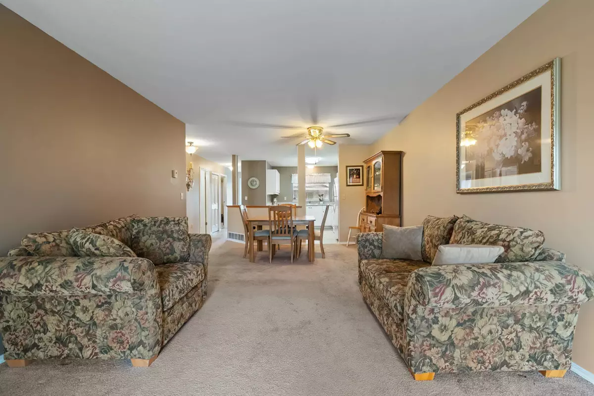 Charming 2-bedroom, 2-bathroom ranch-style home located in a well-regarded 55+ community. Step inside to a bright and updated home with a practical layout designed for comfort. Classic white kitchen with ample dining space and abundant storage. Relax in the spacious living and dining area featuring a natural gas fireplace for cozy evenings. The spacious primary bedroom offers generous storage with double closets & an en-suite that provides a touch of luxury. The second bedroom serves as a guest room or home office. A private covered patio, suitable for year-round enjoyment and a front patio ideal for friendly conversations with neighbours. Carport with outside storage & close proximity to the clubhouse. Vibrant community with various events & walking distance to shopping & dining.