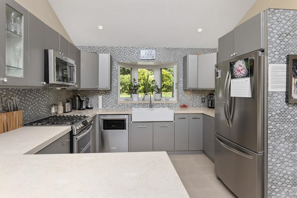 Executive estate like property on 2.23 acres beautifully landscaped welcomes you to a meticulously maintained home with high-end finishings over 2 levels. Indulge yourself in the updated kitchen with stainless steel appliances, gas stove, silestone counter-tops & bay window overlooking the gardens. Expansive windows, crystal chandeliers, along with so many updates throughout the home create a light & warm effect. Professionally landscaped gardens surround the property with mature trees and a variety of blossoming & fruit bearing plantings blend harmoniously with the natural surroundings.