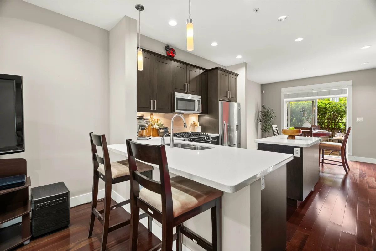 Stylish, Contemporary and quality built townhome in The Allure Complex. With 3 beds / 3 baths open concept floor plan, 9' ceilings. Engineered H/W floors, Quartz countertops. Gourmet kitchen with high end S/S like new appliances; Bosch gas stove, Bosch washer and Dryer, Fisher Paykel fridge. Ensuite boasts quartz counter with double sinks and framed glass shower. High efficient forced air heating, and central vacuum systems plus many more. 2 car tandem garage plus room storage area. Close to The Shops at Morgan Crossing, short walk to Peninsula Village and Sunnyside Park. Short drive to the beach. Quick access to highway 99 provides an easy commute to Vancouver, Delta, Richmond and the US border. This is your chance to own this beauty!!