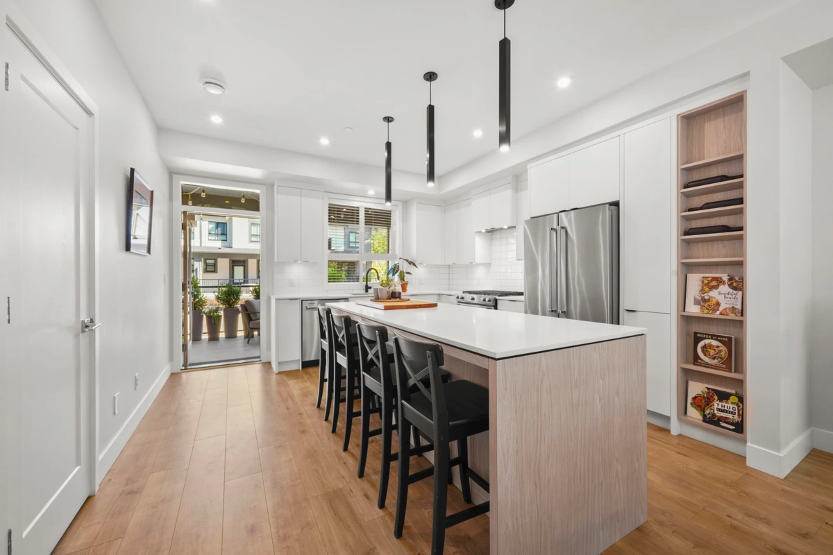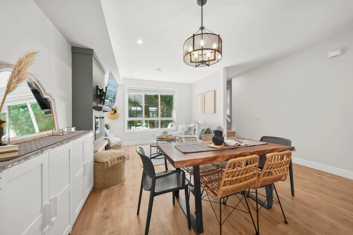 Welcome to Acadia at Garrison Campus! This 4 bed, 4 bath townhouse offers modern finishes and a thoughtful layout. The main floor features a beautiful kitchen with access to a covered patio w/gas hookup for year-round BBQs and a bright living room overlooking Dieppe Park. Upstairs you’ll find the primary bedroom with ensuite + 2 bedrooms and a full bath. A powder room is on the main, while the lower level includes a bedroom & a full bath off the garage—ideal for a teen, nanny, exchange student, or office. Complete with central AC, EV charger, and walking distance to shops, Vedder Park & Rotary Trail, UFV, schools & more! Book your private viewing today!