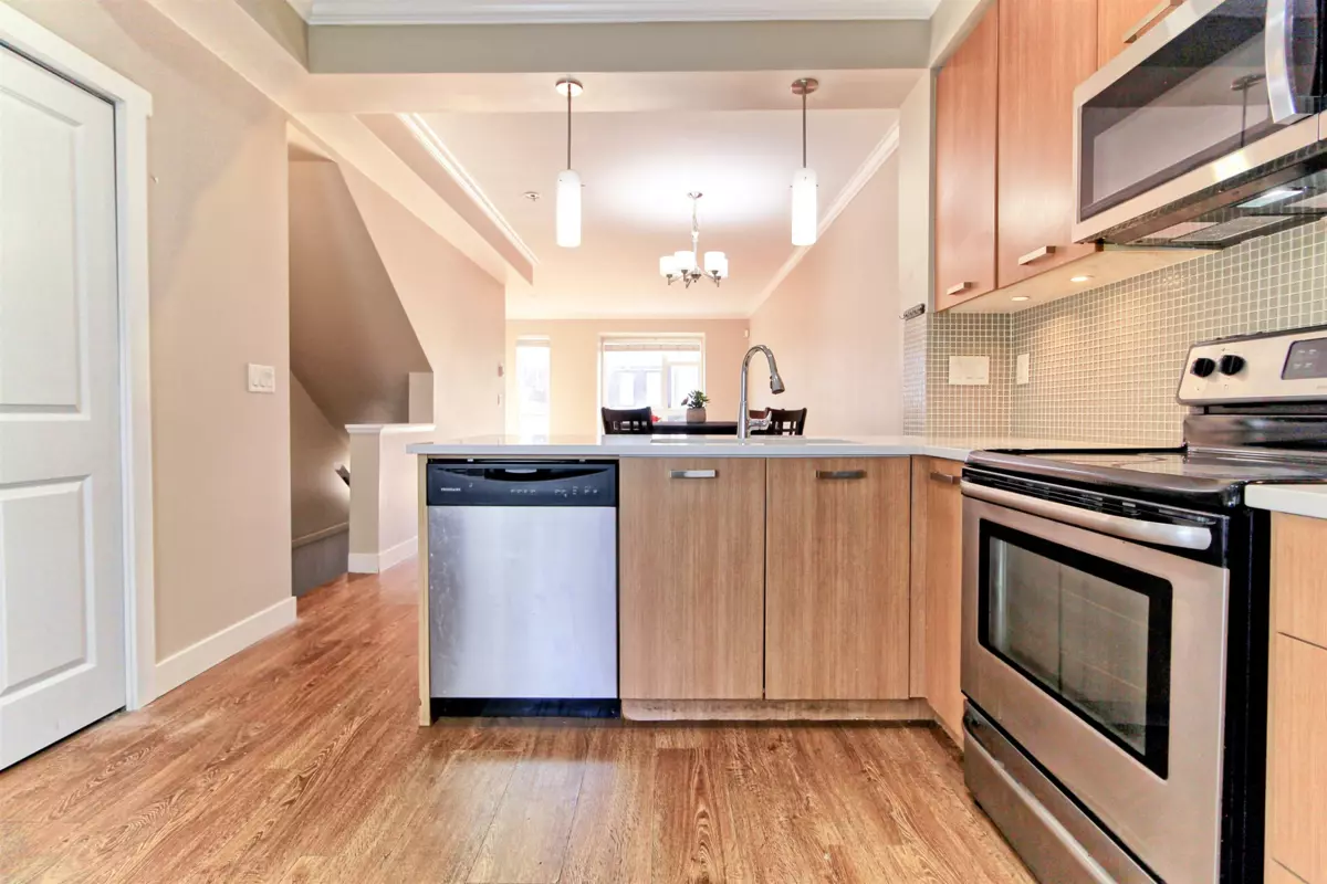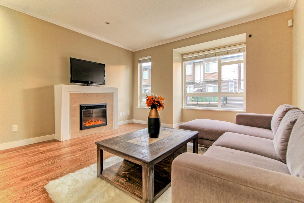 Welcome to your new home at ONE44! This 4-bedroom, 4-bath modern residence backs onto a peaceful greenbelt and nature path, offering both comfort and tranquility in a busy city. The functional layout includes a new full ensuite bathroom on the lower level, perfect for guests or in-laws. Recent updates feature a Samsung fridge (2022) and microwave (2025), fresh paint, and new blinds. Inside, enjoy 9’ ceilings, laminate floors, quartz counters, and a cozy electric fireplace, all enhanced by abundant natural light. The complex also offers its own clubhouse to relax, entertain, or stay active. Ideally located just minutes from schools, shopping, restaurants, and transit, this home is perfect for the growing family or downsizer. PRICED BELOW BC ASSESSED VALUE