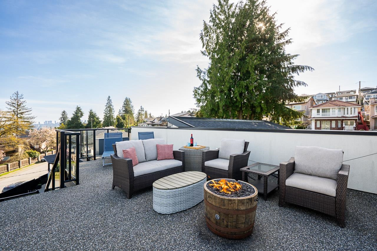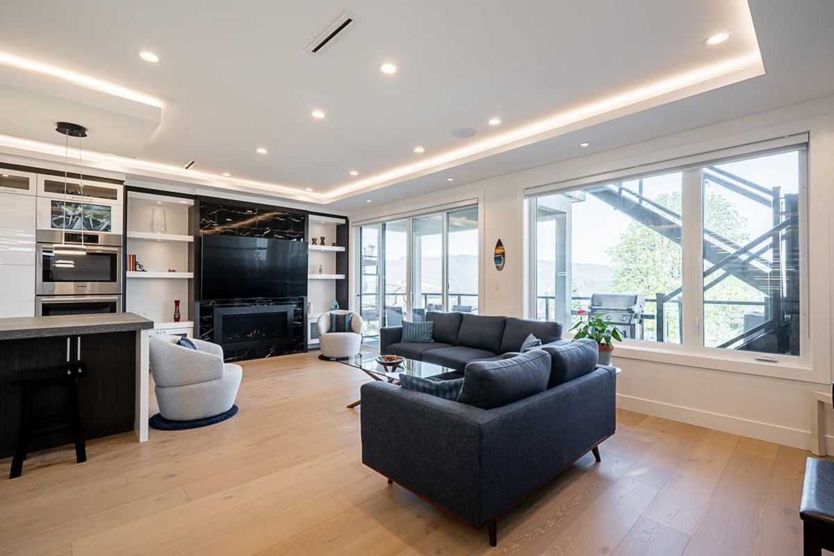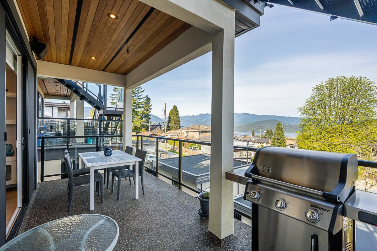 Exceptional 6 bed, 6 full bath home offers breathtaking views of Mt Baker & Burrard Inlet from 3 levels. Chef’s kitchen boasts premium Bosch appliances, double wall oven, oversized island & ample cabinetry. Enjoy seamless indoor/outdoor living w/a covered deck(gas BBQ/heater hookups) & rooftop patio w/gas fire pit hookup & sweeping water & mountain VIEWS! The luxurious primary suite feat a spa-inspired ensuite w/dual vanity, oversized rain shower & deep soaker tub. Smart home feat inc Control4 automation, A/C, radiant heating, smart thermostats, video security, and b/i central vac. The lower level incl a spacious family rm, flex space w/separate entrance, and a newer legal 2 bed suite complete w/kitch & laundry,ideal for rental or extended family. Bonus EV level 2 charging! Shows like NEW!