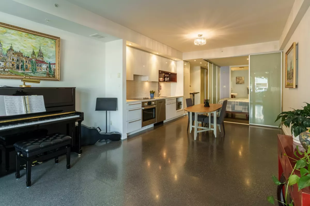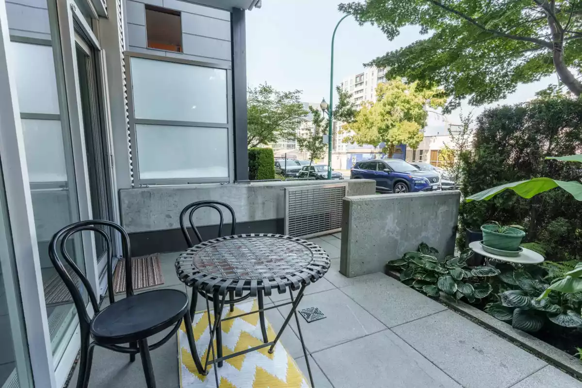 Welcome to Jacobsen! - The East Side's premiere Live/Work Studio. Walk to Emily Carr, VCC and the upcoming skytrain station in minutes. Blocks to the seawall as well as Main St's and E 2nd's best social hangouts. Spacious one bedroom and den townhouse w/ private patio in a solid concrete building! Enjoy 9.5' high ceilings, polished concrete floors, closet organizers, roller blinds, in-suite storage, one parking and your own private patio! With a well-equipped Fitness Centre, Gallery Room and Workshop, it's hard to find a better location! Join us at the Open House, Sunday, November 30, 2-4 pm!