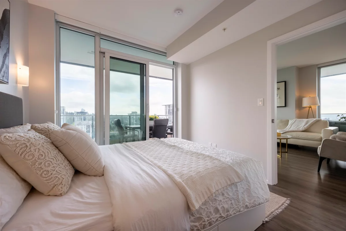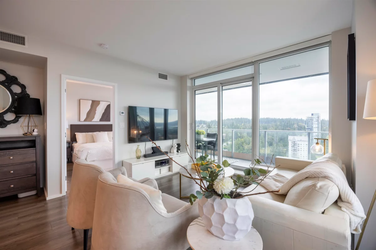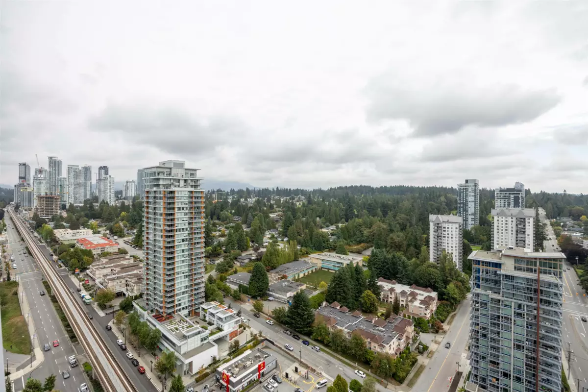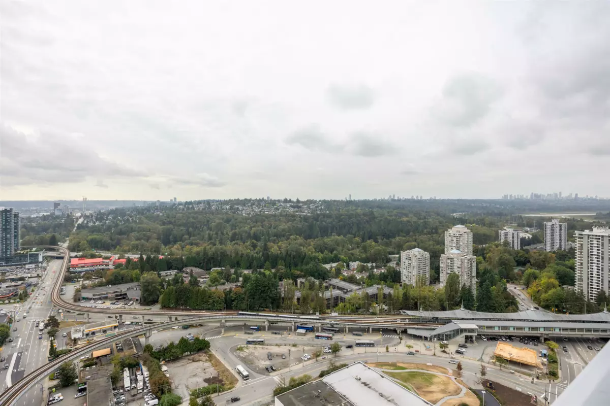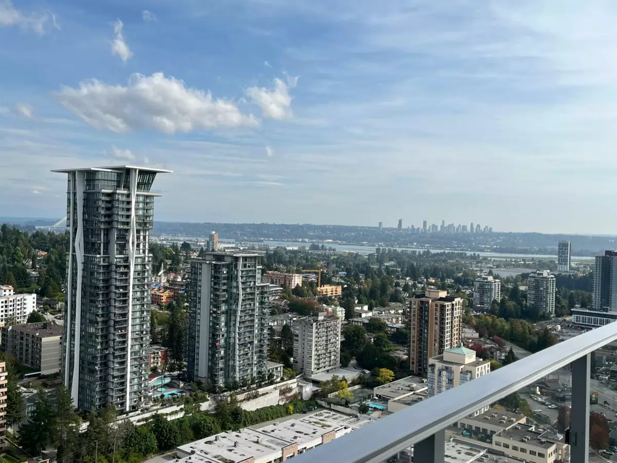 A brand new condition with no GST! Experience elevated living with a stunning river, mountain and city views from the 26th floor! This southeast corner home with 2-bedroom plus den & 2-bath (Jr. 3 Beds) features floor-to-ceiling windows, a spacious layout, and a gourmet kitchen with premium appliances. The versatile den is ideal for a home office or extra bedroom, and the wrap-around balcony provides expansive outdoor space for entertaining, relaxing, and enjoying the scenery. Located in a vibrant community with direct access to Lougheed Town Centre, dining, and SkyTrain, this is a rare opportunity to enjoy modern luxury living with exceptional amenities and unparalleled comfort in a prime location! Showing on Saturday & Sunday by appointment. Call today, easy to show!