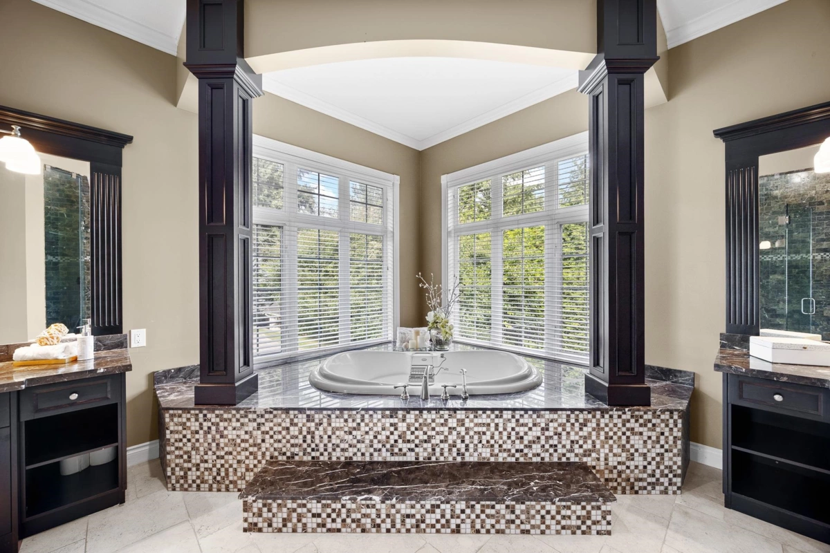 European built with exquisite finishing, Spectacular 1Acre Estate in Grandview Heights. Fully gated & fenced, backing onto mature protected green space. Chef's kitchen has all the bells & whistles with an w/oversized island, loads of cabinetry, a Sub-Zero fridge, commercial-grade Thermador oven. Beautiful high coffered ceilings, extensive crown mouldings, large office w/fireplace & rich mahogany shelving. Luxurious master on main with f/place, formal dining room, elegant living room w/tons of windows & cozy family room. Fully finished basement features huge games room, dance floor, wet bar, sauna, gym, hockey rink & soundproof theatre. Entertainers backyard w/tiered decking, salt water pool w/water slide , newer hot tub .. Golfers! turf putting & chipping green. Open House Nov 29 Sat 2-4pm