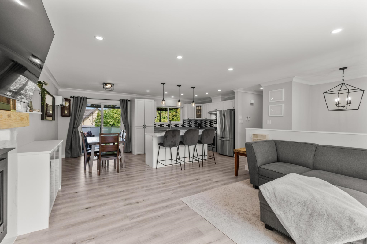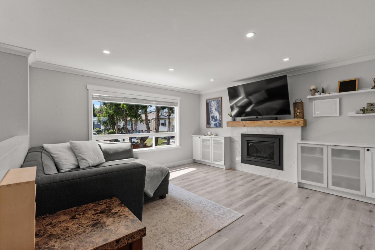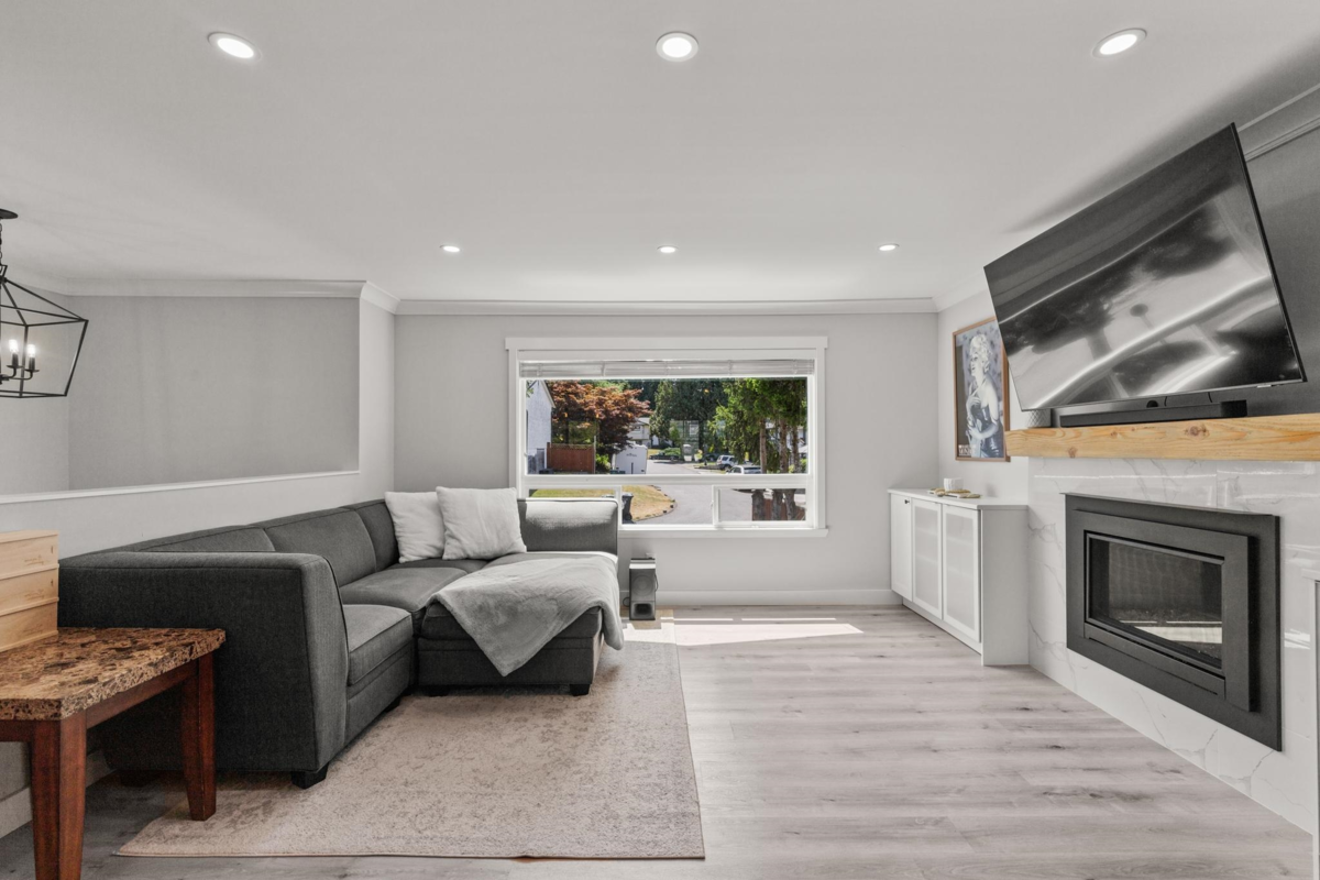 Welcome Home! This stunning south-facing 3-bedroom upstairs detached residence is ready for you. Offering a beautifully designed 1-bedroom basement suite, ideal for extra income or extended family. Enjoy the spacious, open-concept layout flooded with natural light from the large bay window, highlighting a bright and inviting living area. Upgrades include a modernized kitchen, stylish renovated bathrooms, and a newer heat pump ensuring cool comfort in summer. Stay cozy with both gas and wood fireplaces during those cold evenings. Outside, the new deck and fenced yard create the perfect oasis for entertaining. Nestled in a prime, central location near shopping, top-rated schools, parks, and more—this superbly renovated home is a true gem! Don't miss the opportunity to make it yours.