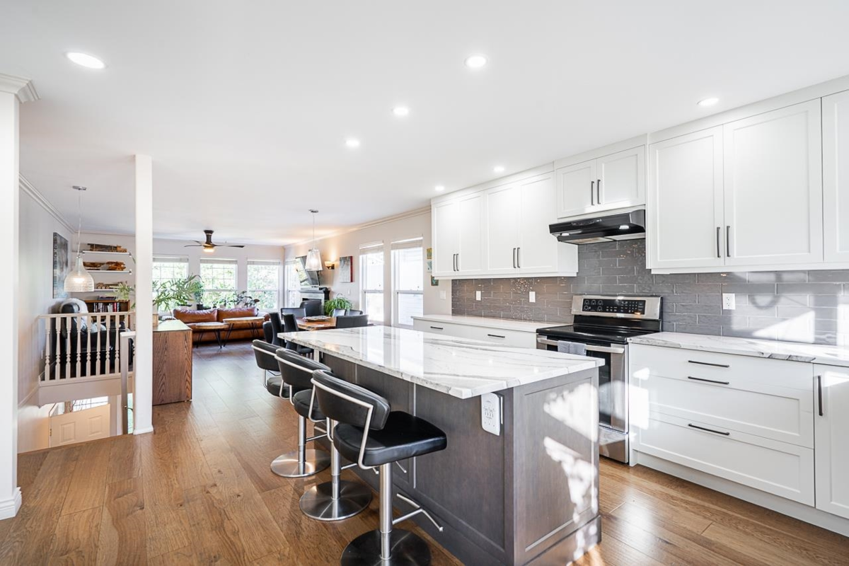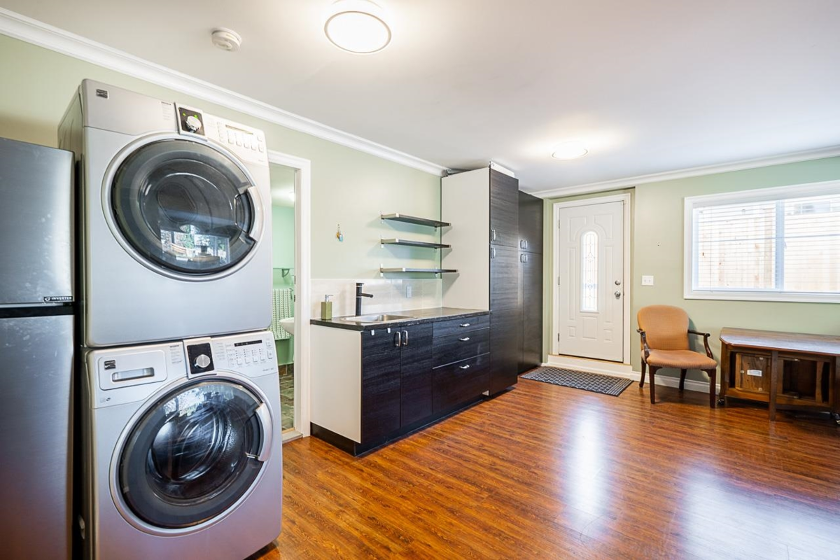 Welcome to this beautiful 5 bed 4 bath home in Aldergrove. Beautifully updated in 2020 including new bathrooms and brand new show home quality open concept kitchen with Quartz countertops, and Electrolux side by side vertical fridge and freezer. Flooring was redone with commercial grade engineered Hickory hardwood on main. Upstairs you will find your open concept main living area, Primary bedroom with walk in closet and ensuite bathroom, plus two more bedrooms and guest bathroom. Downstairs continues with a fourth bedroom, flex room, bathroom and large rec room with wet bar that would be perfect for rec room, media room, or guest suite. Lower level also includes a beautiful legal one bedroom, ground level, basement suite.