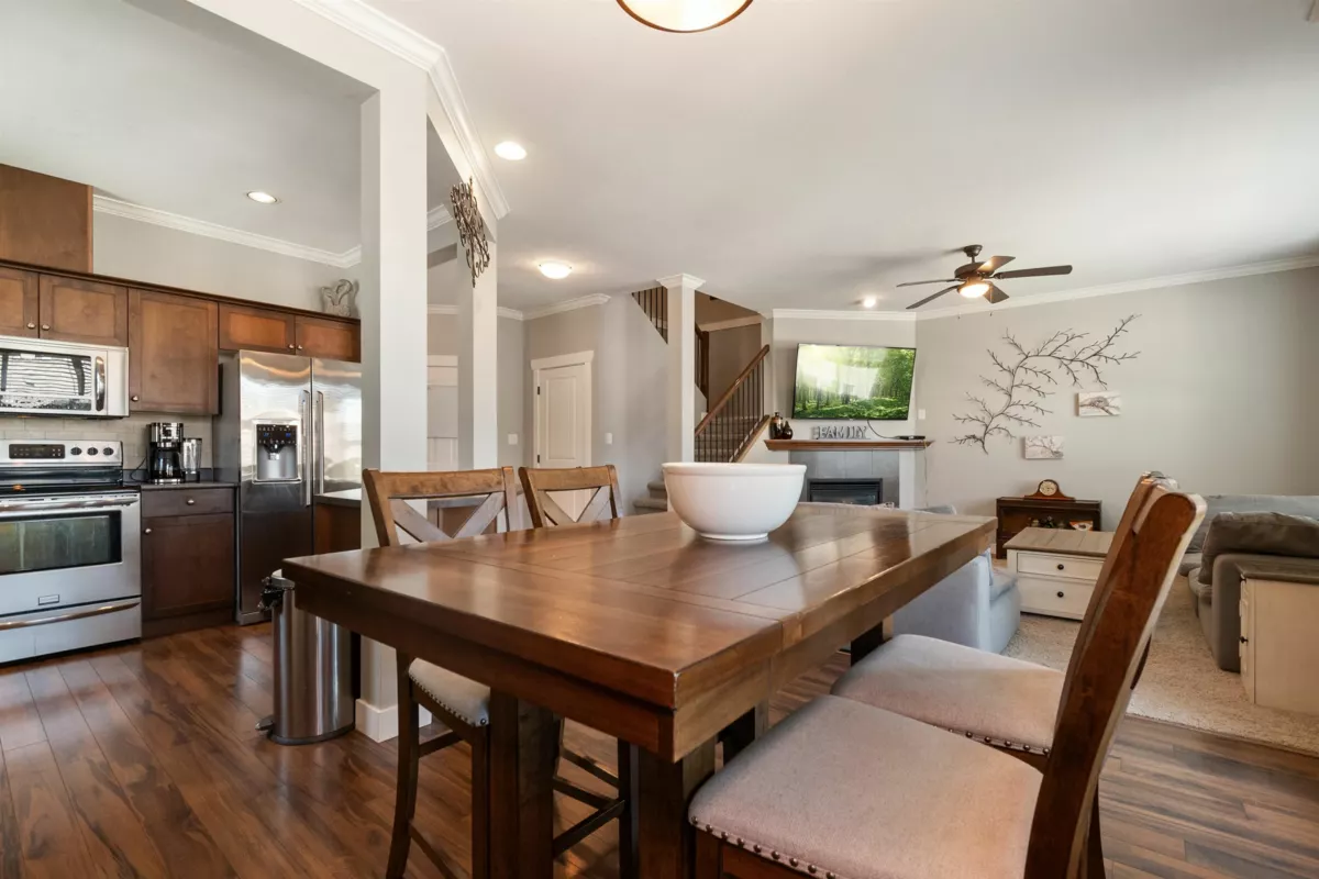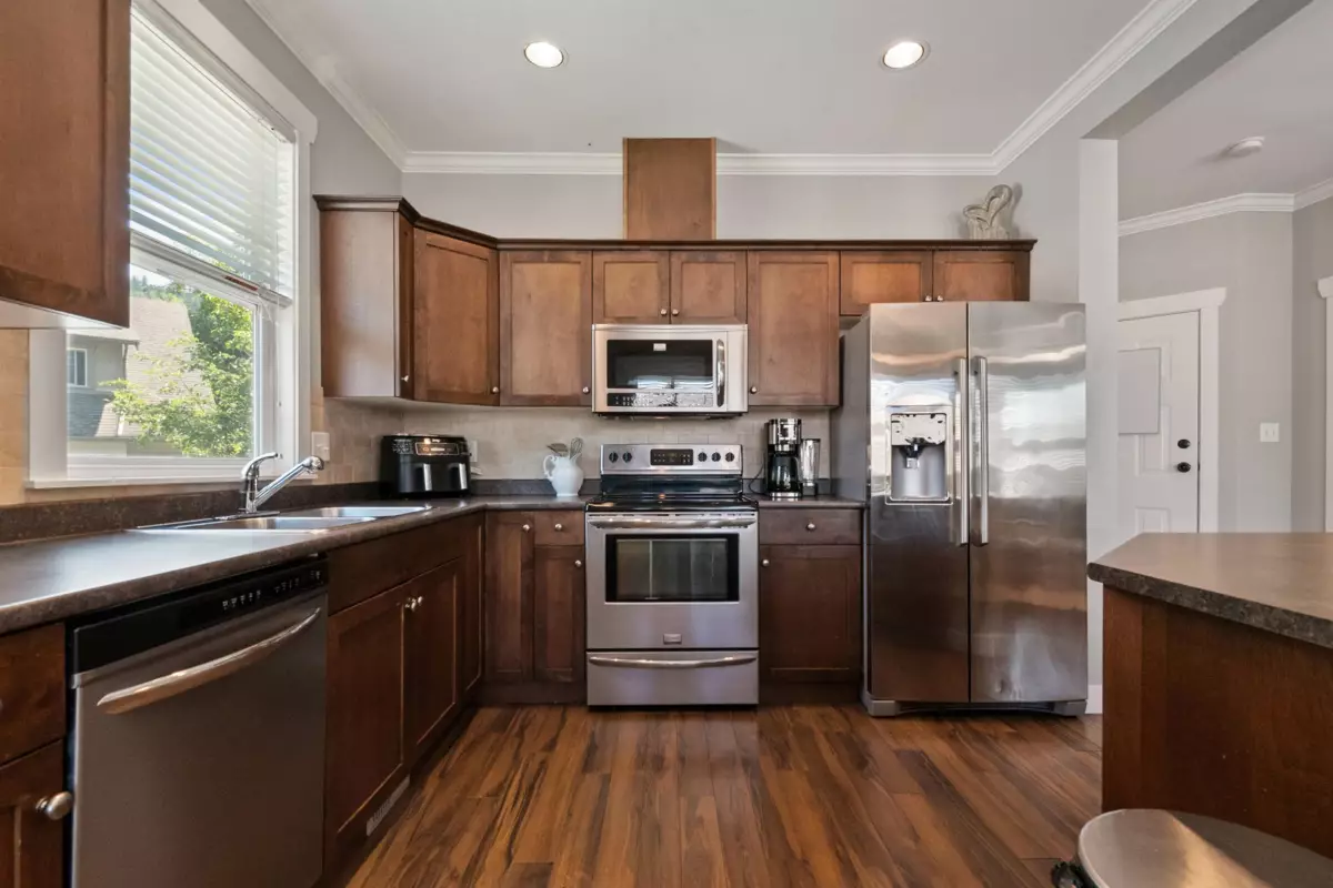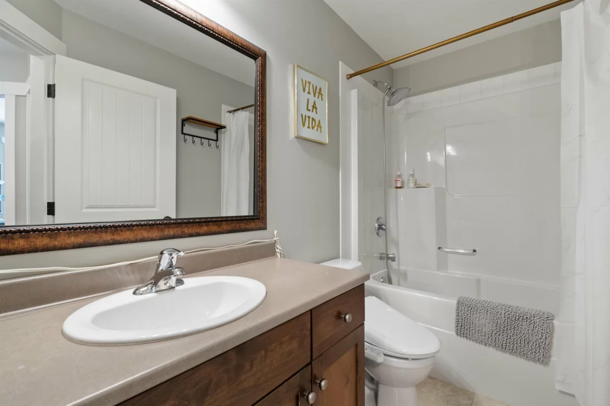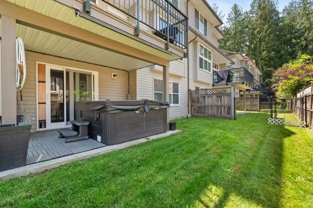 Discover the charm of Walker Creek living in this desirable three-bedroom townhouse, boasting 2020 square feet. This spacious end unit has added privacy and light. The main floor features an open floor plan with easy access to a spacious partially covered deck, perfect for outdoor enjoyment. Upstairs, the primary suite offers a generous walk-in closet and nice three-piece ensuite, along with two additional well-sized bedrooms. 4 Bathrooms total. The expansive basement is a standout, with a large recreation room featuring a built-in bar, ample storage, and direct access to a fully fenced backyard with covered hot tub. Enjoy one of the best locations in the complex, combining spacious living and a welcoming community atmosphere. Don't miss this chance to call it home!