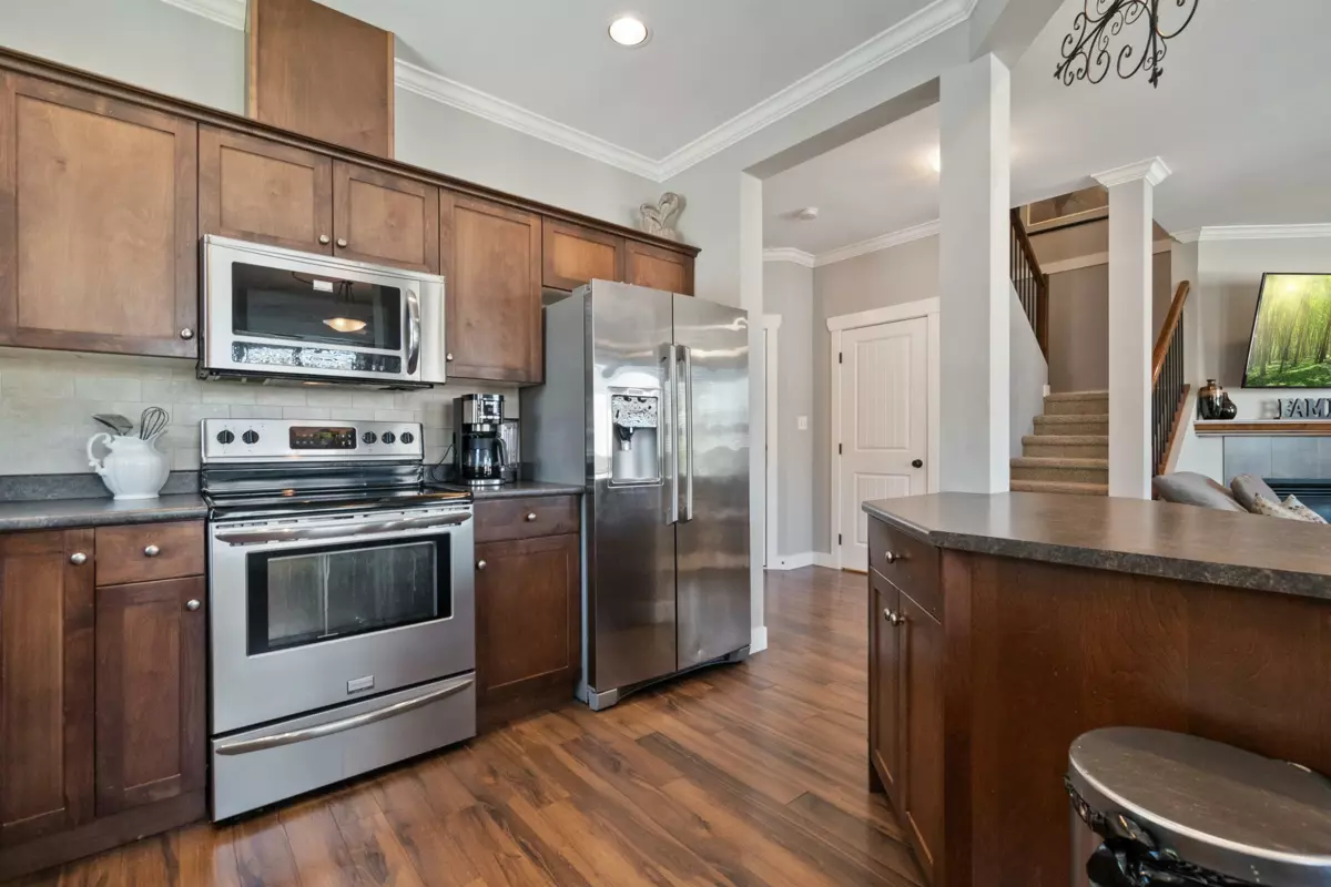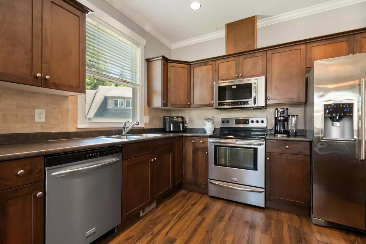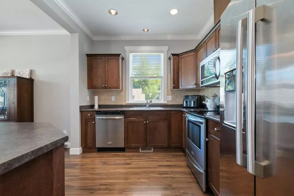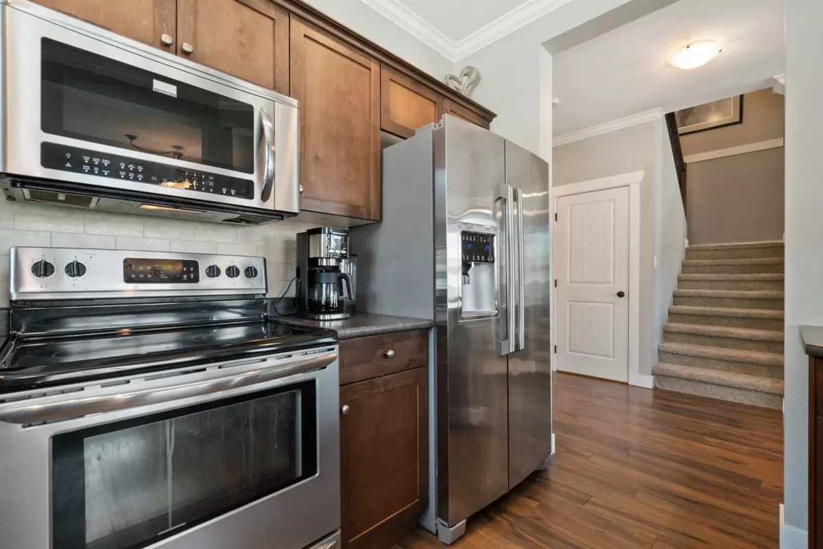 Discover the charm of Walker Creek living in this desirable three-bedroom townhouse, boasting 2020 square feet. This spacious end unit has added privacy and light. The main floor features an open floor plan with easy access to a spacious partially covered deck, perfect for outdoor enjoyment. Upstairs, the primary suite offers a generous walk-in closet and nice three-piece ensuite, along with two additional well-sized bedrooms. 4 Bathrooms total. The expansive basement is a standout, with a large recreation room featuring a built-in bar, ample storage, and direct access to a fully fenced backyard with covered hot tub. Enjoy one of the best locations in the complex, combining spacious living and a welcoming community atmosphere. Don't miss this chance to call it home!