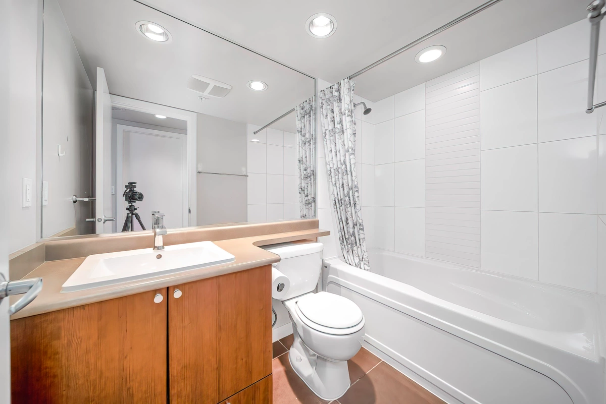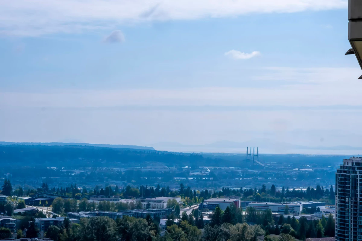 VIEWS! SPECTACULAR CITY, MOUNTAIN & WATER VIEWS! Welcome to WEST, a sought-after BOSA-built community in the heart of Highgate Village, Burnaby South. This spacious and bright 2-bedroom, 2-bathroom home offers a highly functional “no-wasted-space” layout. The generous east-facing primary bedroom easily fits house-sized furniture and boasts unobstructed views of Mount Baker and the lush courtyard below. Enjoy a modern open-concept kitchen with a gas range, granite countertops, and convenient in-suite laundry. A massive balcony extends from the living room and both bedrooms—perfect for relaxing or entertaining while taking in the breathtaking views. Comes complete with one secure underground parking stall and one storage locker. Don’t miss this opportunity-This is HOME! Come to show!