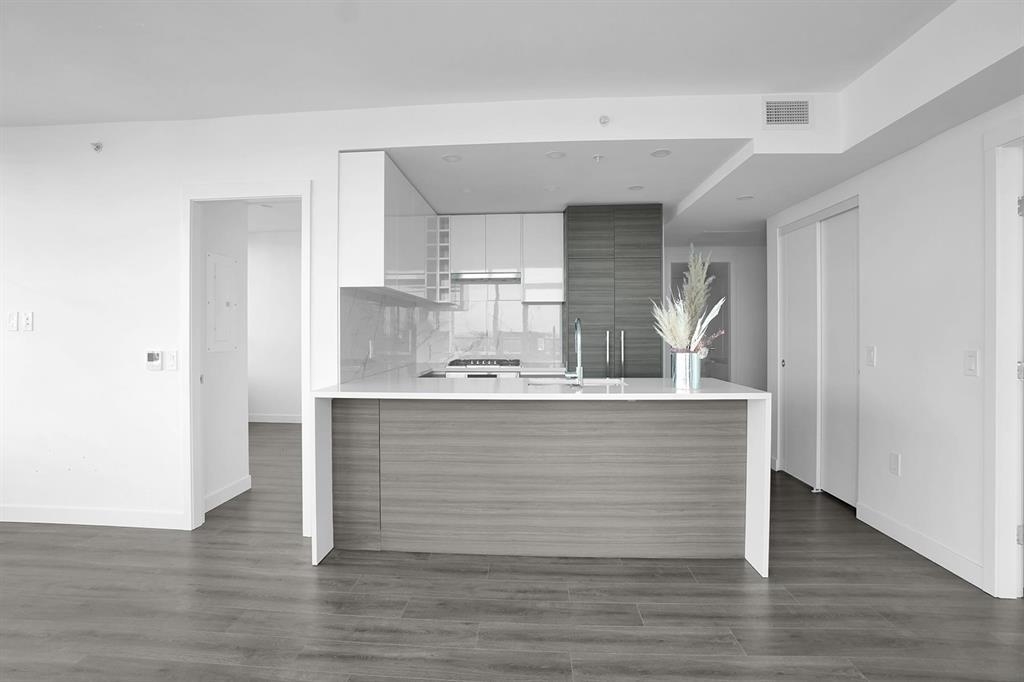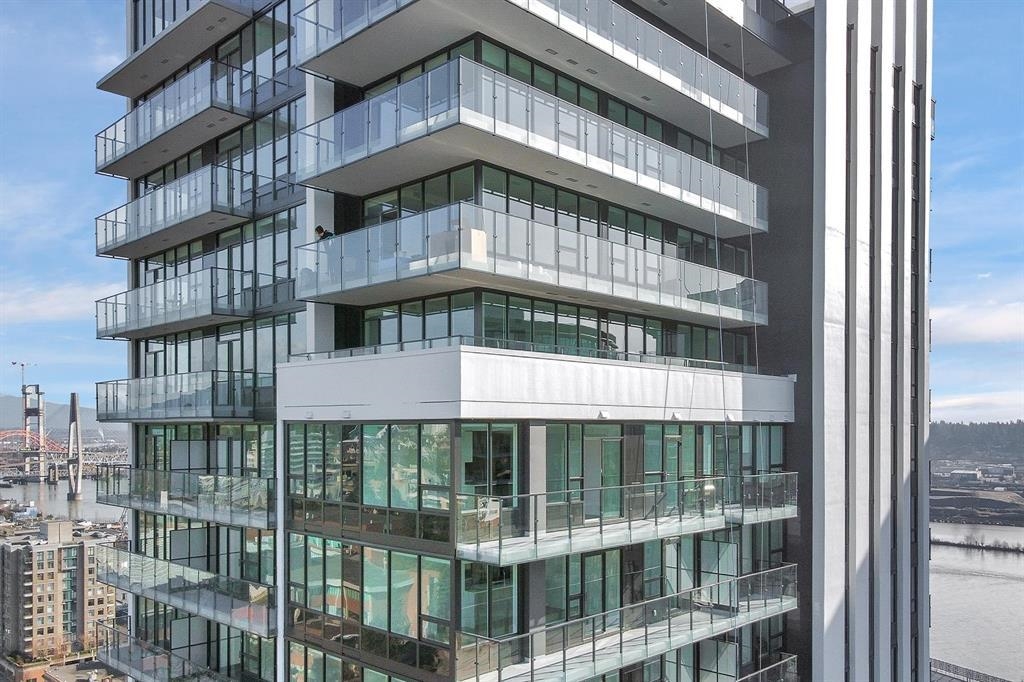 Welcome to Ovation, a striking 32-storey landmark in Downtown New Westminster. This 27th-floor unit offers 884 SF of luxury living with 2 bedrooms, 2 bathrooms, and breathtaking panoramic views of the Fraser River, cityscape, and bridge. The designer U-shaped kitchen features premium appliances, including a 36" Fisher & Paykel fridge and 30" Bosch cooking appliances, paired with quartz countertops. The elegant master ensuite boasts stylish tiling and a walk-in shower. Steps from the SkyTrain, shopping, and dining, Ovation also offers exclusive SKY CLUB amenities: a rooftop hot tub, mini-golf, gym, and private clubhouse. Book your showing today!