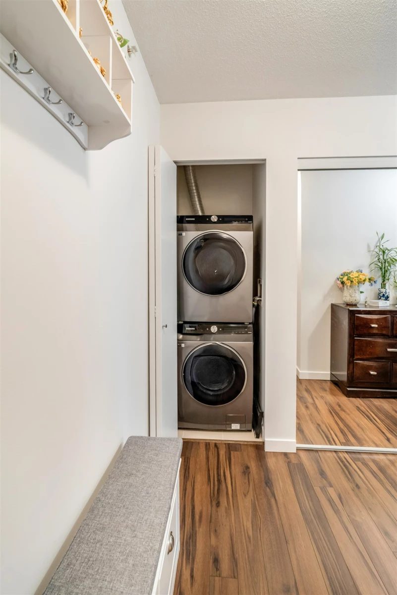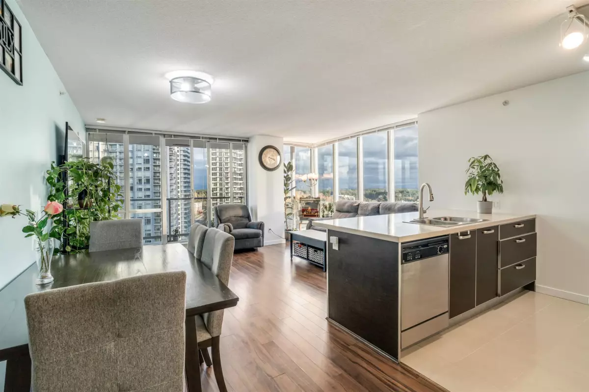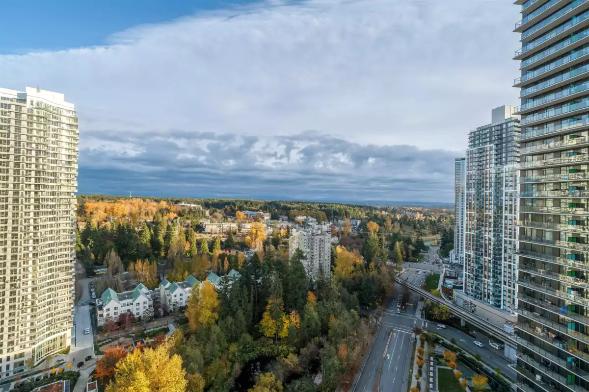Park Place 2 by Concord. This bright, freshly painted corner unit offers 910sq.ft. of well-designed living with 2 bedrooms and 2 full bathrooms. Floor-to-ceiling windows showcase unobstructed Mt. Baker views, filling the home with natural light. The modern kitchen features stainless steel appliances, aluminum-framed cabinets, Corian countertops, a pantry, and ample built-in storage. Upgrades include brand-new washer, dryer, microwave, soft-closing closets, and smart thermostat. Laminate flooring runs through the living area, with a large balcony completing the home. Amenities include a gym, yoga room, theatre, billiards, bowling alley, table tennis, sauna, party rooms, and 24-hour concierge. Steps to Central City Mall, Holland Park, SFU, Walmart, restaurants, and King George Station(200m).