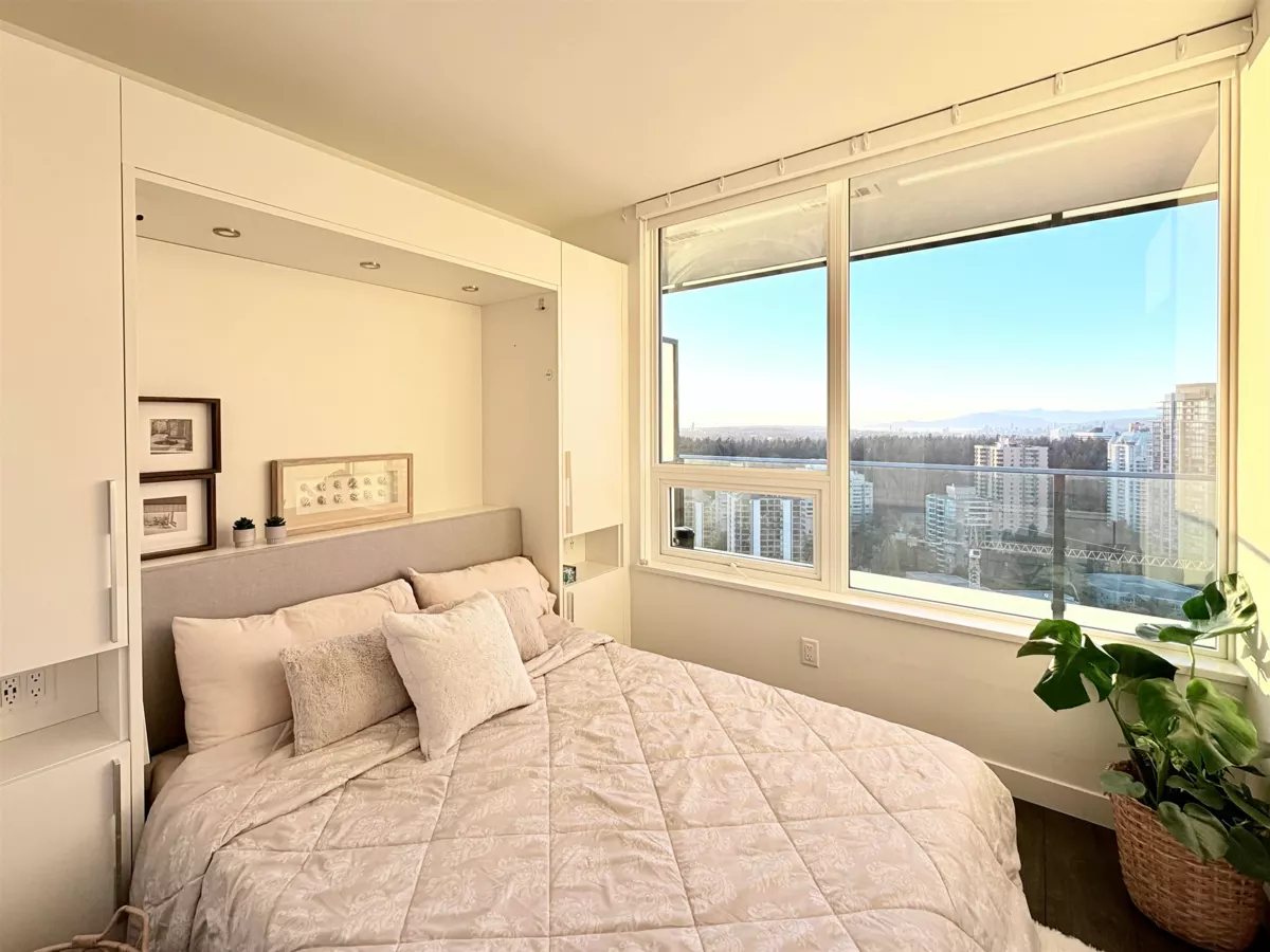 Everything is JUST RIGHT for this lovely 2bed2bath corner unit at Maywood On the Park. HEIGHT- start from 27F you can look beyond the trees of Central Park and enjoin the view of the sea inlet and Vancouver downtown, also panoramic view of dynamic Metrotowncity, lakes, Fraser river, Vancouver island, North shore mountains; LOCATION-Directly connected to Community park, Central Park and Metropolis / Skytrain Station 5min walk; LAYOUT- compact but cozy bedrooms leave space for the rarely found large living/dining area about 15x20 feet; FEATURE -Whirl Pool 30" W/D, Bosch kitchen appliances, Duravit sanitary ware, Heated master ensuite floor, over-sized double-glazed windows... BONUS- 2 parkings(1EV)! life quality,Convenience,Tool against inflation... not a hard decision, come visit this SAT!