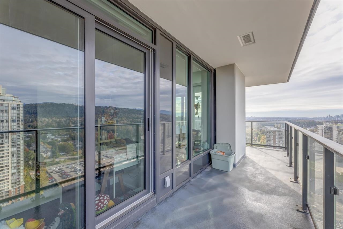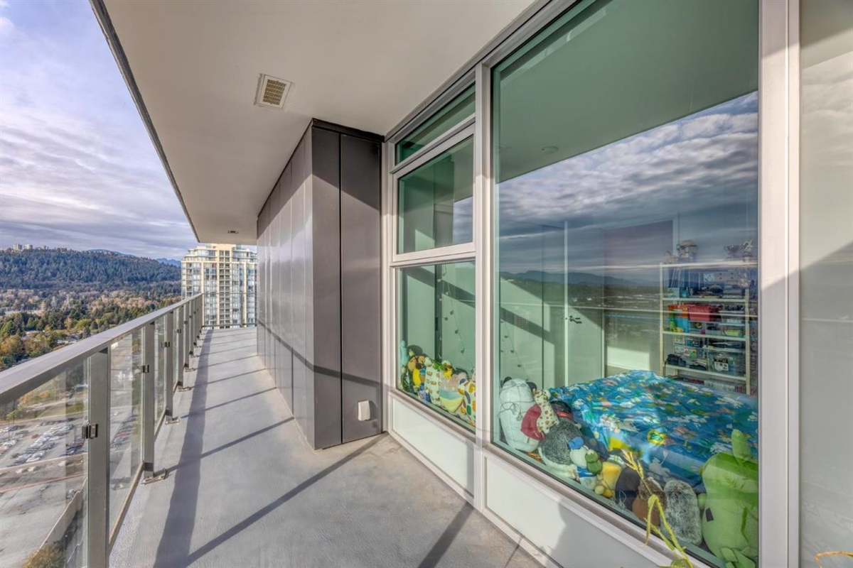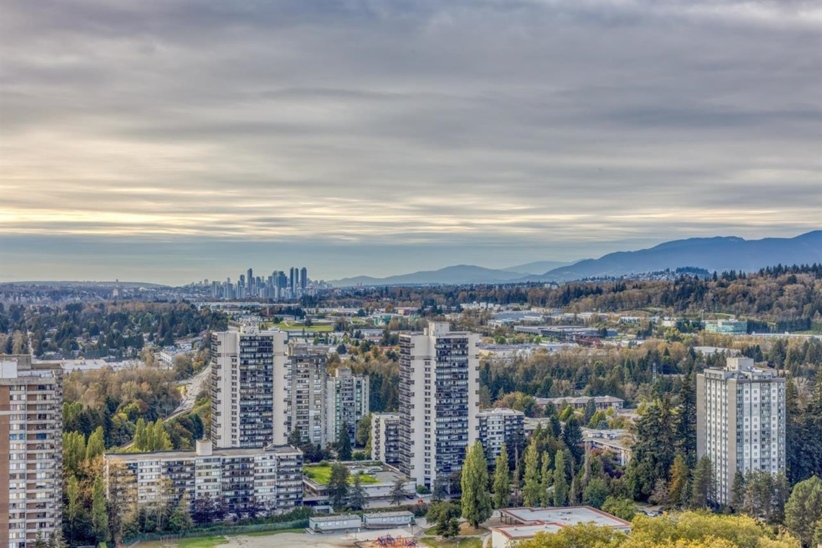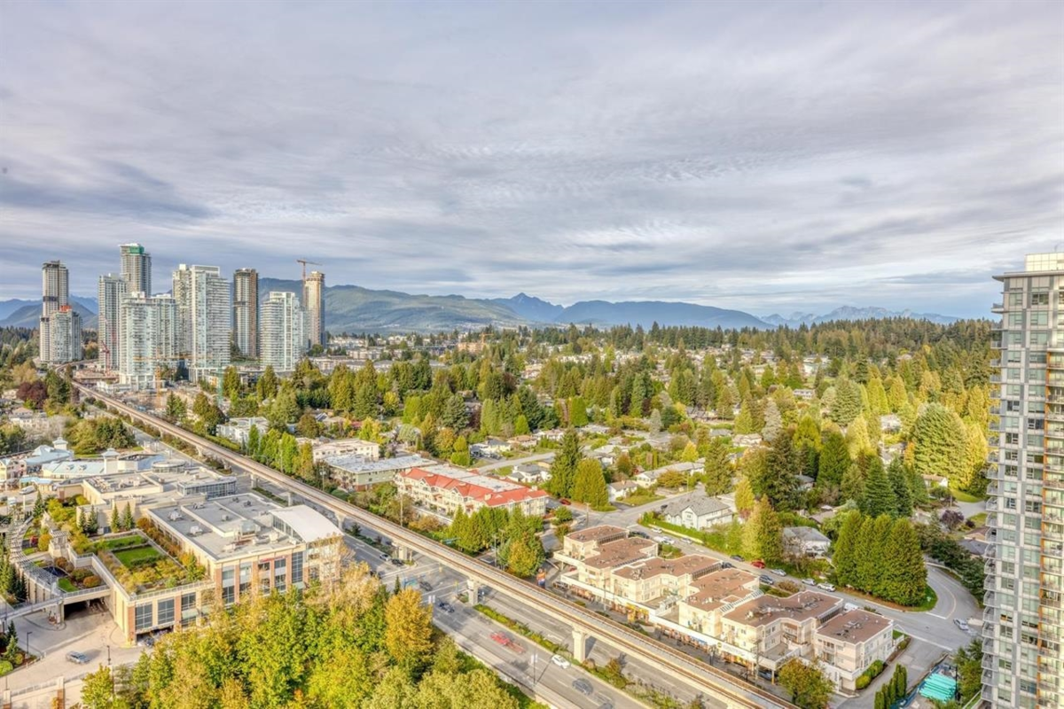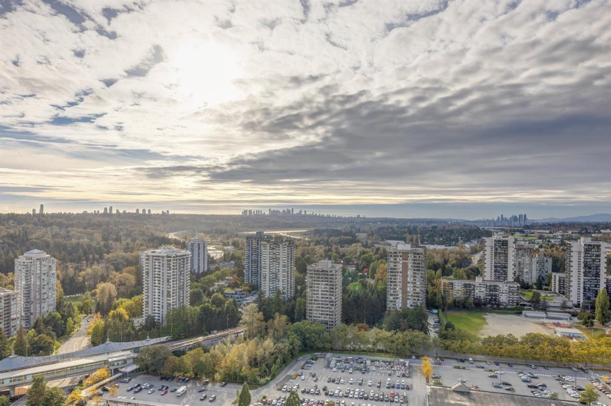 CITY OF LOUGHEED - TOWER 1: This 27th-floor NW corner unit features 2 bedrooms with ensuites, a den, and a 350 sq. ft. wraparound balcony. The space offers high ceilings, large windows, and premium finishes including quartz countertops, Bosch appliances, and a Panasonic microwave. Enjoy stunning views of the city, mountains, and water, from downtown to SFU and Metrotown. Amenities include A/C, a 3-floor, 18,000 sq.ft. clubhouse with indoor/outdoor spaces, a fitness center, yoga studio, game rooms, and more. The building also features 24-hour concierge services, 5 high-speed elevators, a dog park, and easy access to shopping, dining, and banking.