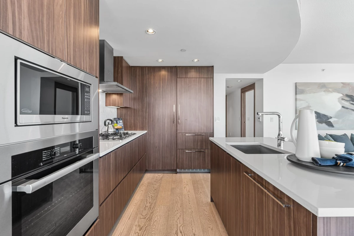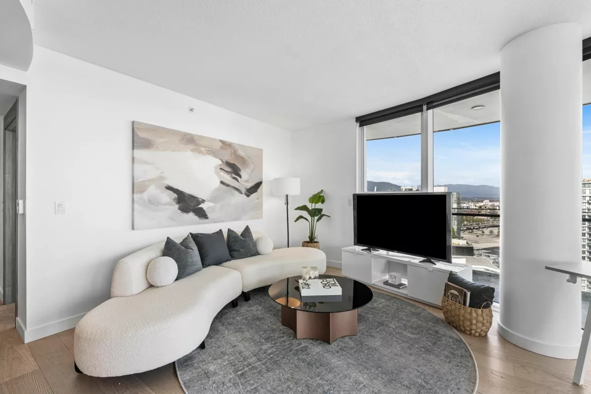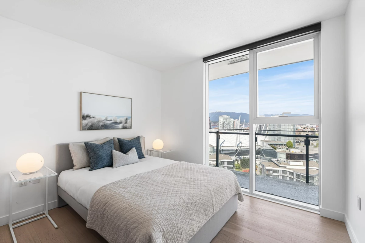 Sub-Penthouse Level at the coveted 'Arc' by Concord Pacific. Experience elevated living in one of Vancouver’s most iconic and architecturally striking buildings. This 2 bed + flex + 2 bath bright corner suite has a phenomenal layout, with floor-to-ceiling windows, fully Air Conditioned, and a 363sf wrap-around balcony showcasing Post Card Views of False Creek and City. High-end finishes include Miele appliances, sleek cabinetry, wood flooring, and quartz counters. Spacious Flex Room, ideal for a home office. Enjoy world-class amenities including a glass-bottom pool on the 20th floor, spa, gym, lounges, and sky gardens. 2 Parking Stalls and 1 locker. Steps to the Seawall, Marina, and Yaletown's World Class shopping and dining.