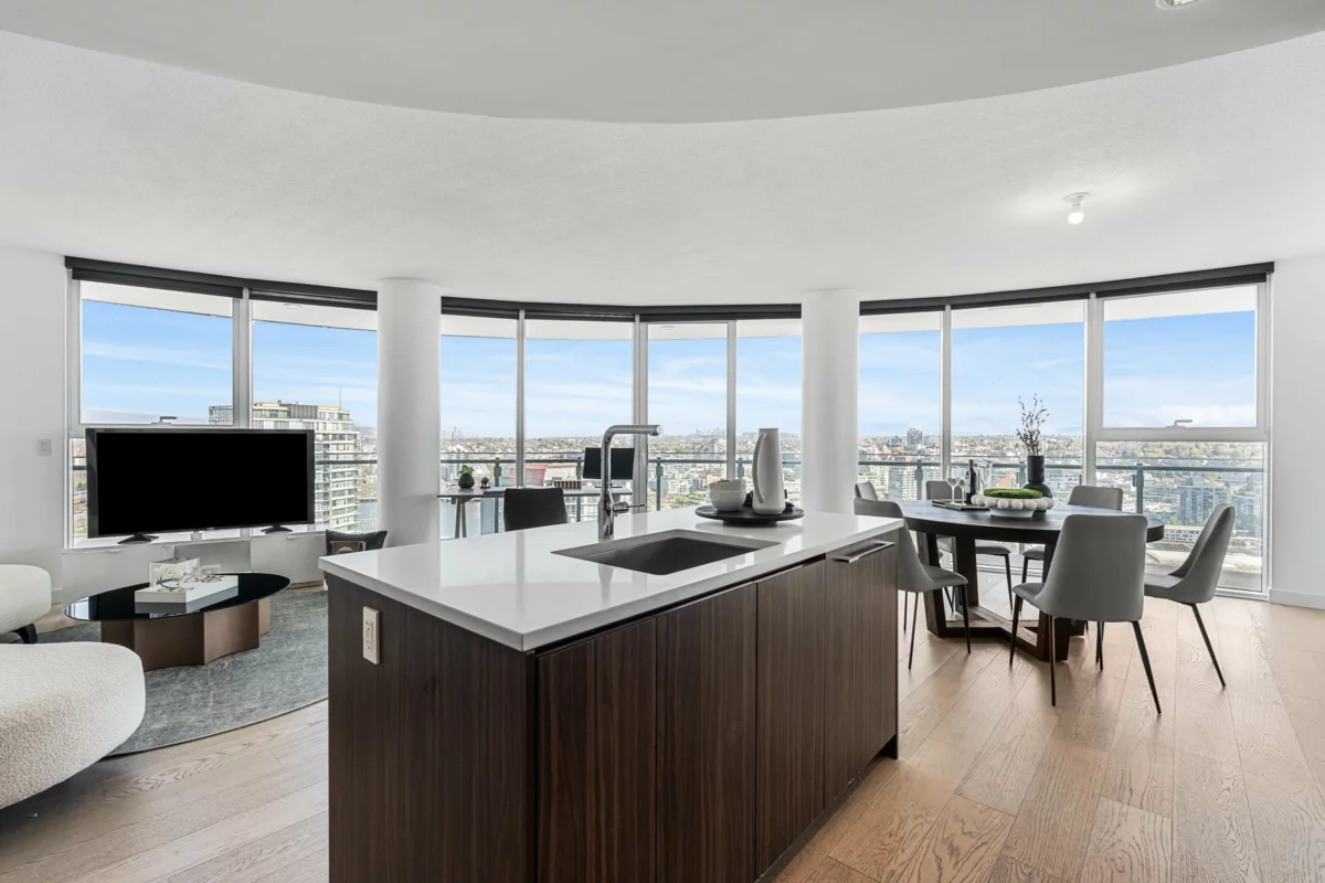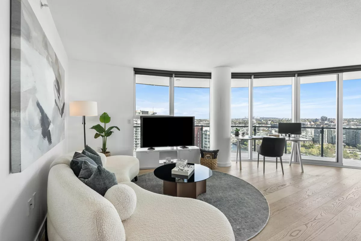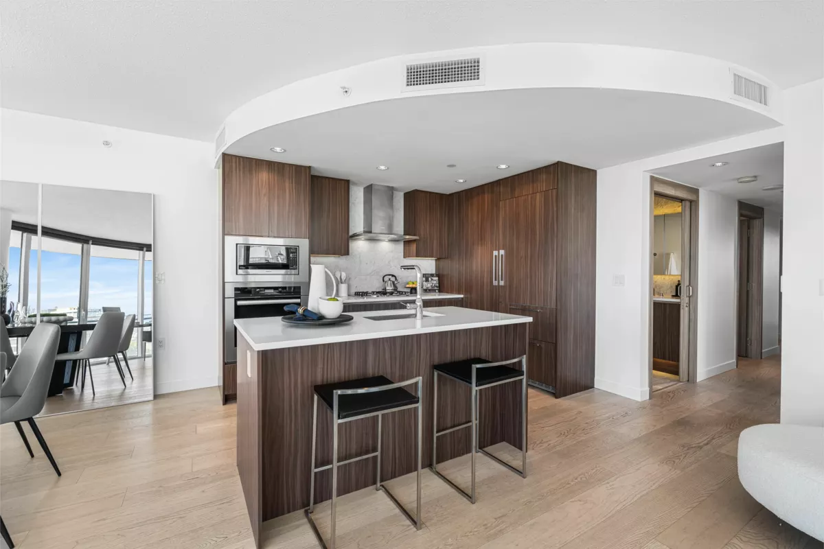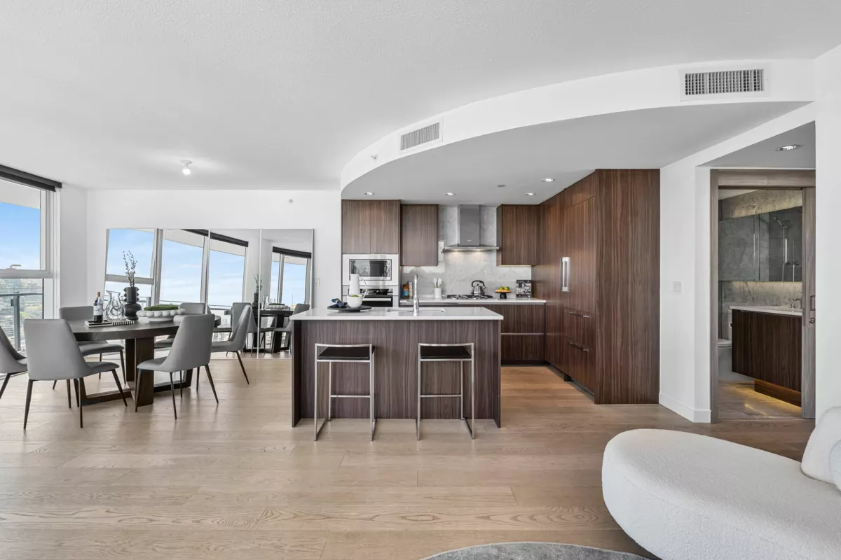 Sub-Penthouse Level at the coveted 'Arc' by Concord Pacific. Experience elevated living in one of Vancouver’s most iconic and architecturally striking buildings. This 2 bed + flex + 2 bath bright corner suite has a phenomenal layout, with floor-to-ceiling windows, fully Air Conditioned, and a 363sf wrap-around balcony showcasing Post Card Views of False Creek and City. High-end finishes include Miele appliances, sleek cabinetry, wood flooring, and quartz counters. Spacious Flex Room, ideal for a home office. Enjoy world-class amenities including a glass-bottom pool on the 20th floor, spa, gym, lounges, and sky gardens. 2 Parking Stalls and 1 locker. Steps to the Seawall, Marina, and Yaletown's World Class shopping and dining.