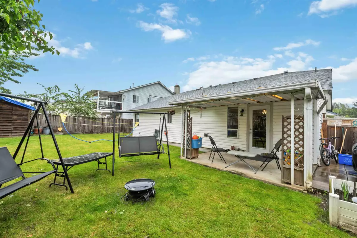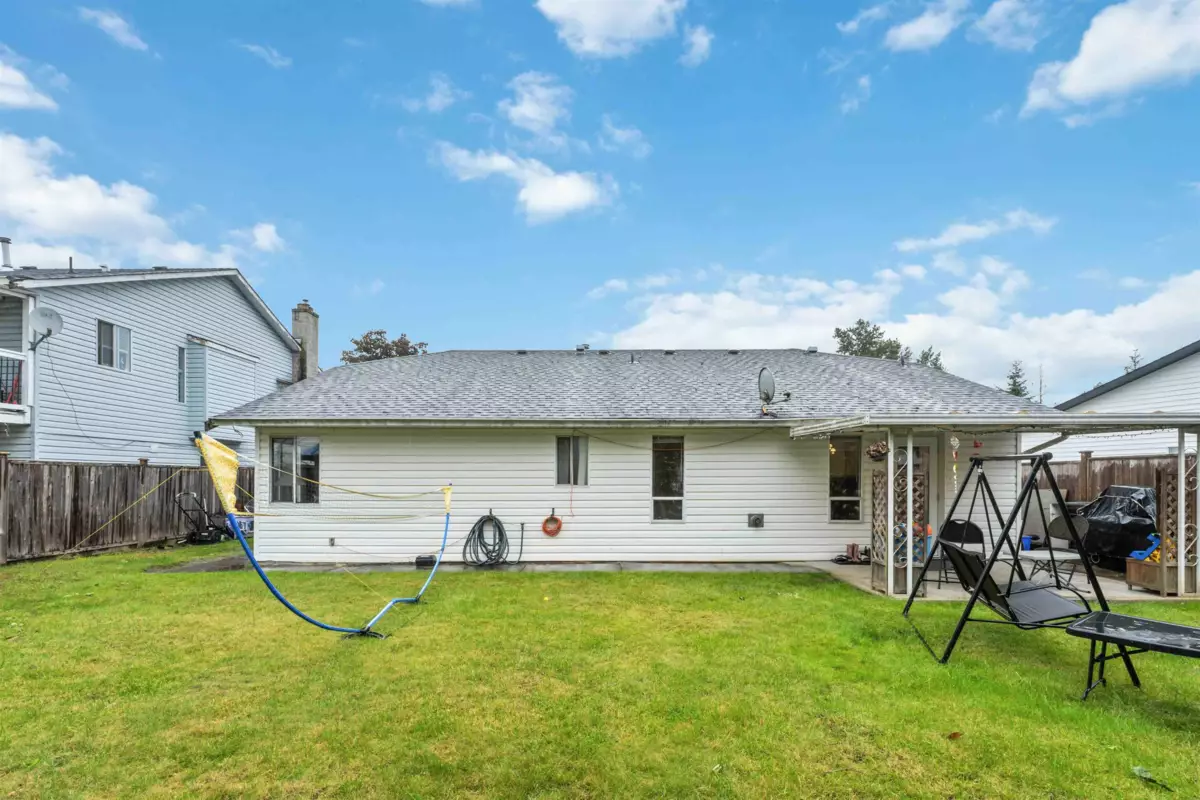 This well-maintained, 3-bedroom, 2-bathroom rancher offers single-level living, perfect for easy accessibility with no stairs. Situated in a peaceful, family-friendly cul-de-sac, this home is just a short walk from the scenic Fishtrap Creek Park and Discovery Trail. Families will appreciate being close to St. James & St. Ann's Catholic School, fitness centres, bus routes, and playgrounds. The shopping centre and freeway access are just minutes away for added convenience. Enjoy the beautifully landscaped yard and a fenced backyard that ensures privacy for relaxation or family gatherings. With a generous lot size of 5,900 sqft, there's plenty of room for outdoor enjoyment. This clean, move-in-ready rancher offers both comfort and convenience in a prime location!