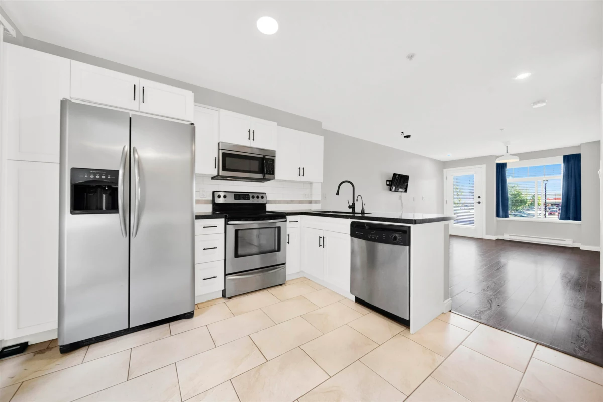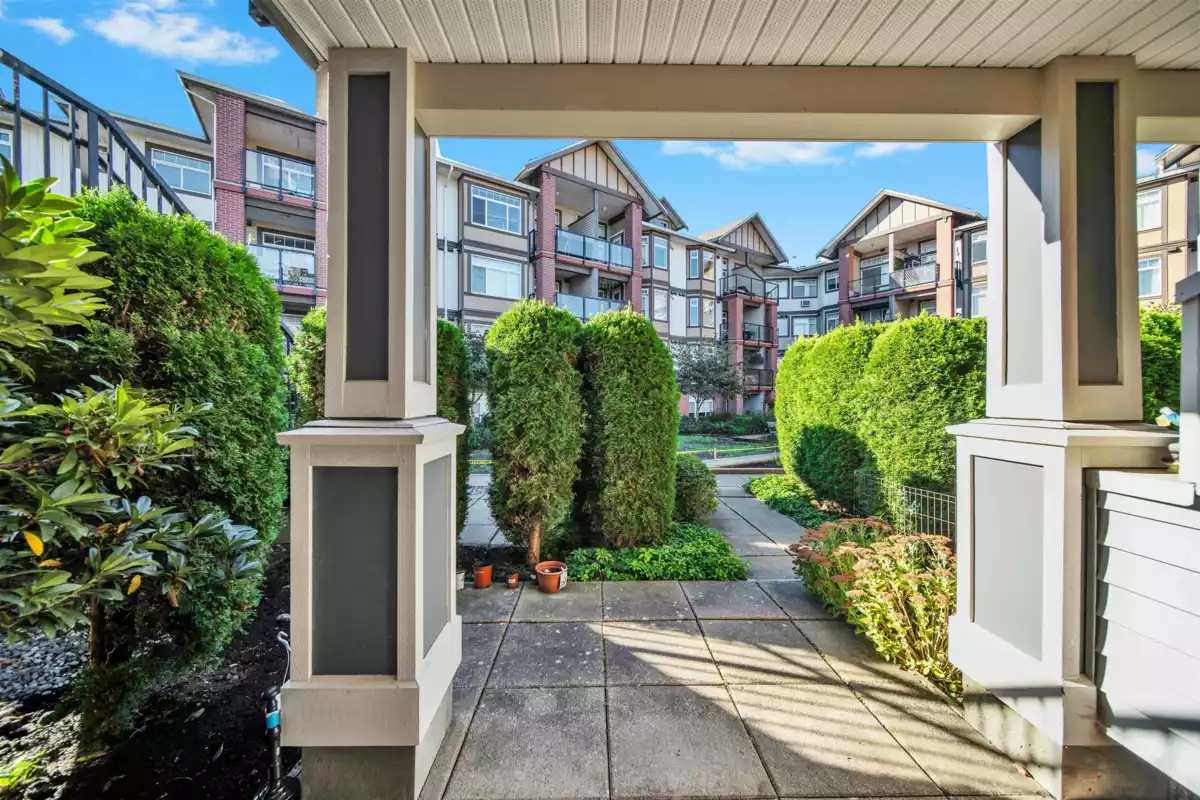 TOWNHOME FEEL AT CONDO PRICE! Experience the best of both worlds with this townhome-style 1 bed + den condo, with your own private entrance & no hallways or elevators to worry about! This bright, functional layout features a kitchen with a breakfast bar, perfect for meals or entertaining. Enjoy a southerly exposed private patio opening to a gated courtyard, plus underground parking, an on-site gym, & affordable strata fees. The spacious primary bedroom fits a king bed, & the location is unbeatable - Starbucks, Save-On-Foods, and Shoppers Drug Mart are across the street - no car needed, & Willowbrook Mall is only 5 mins out. With easy access to transit & schools, & the future SkyTrain station coming nearby, it’s a smart investment too! Quick possession available.