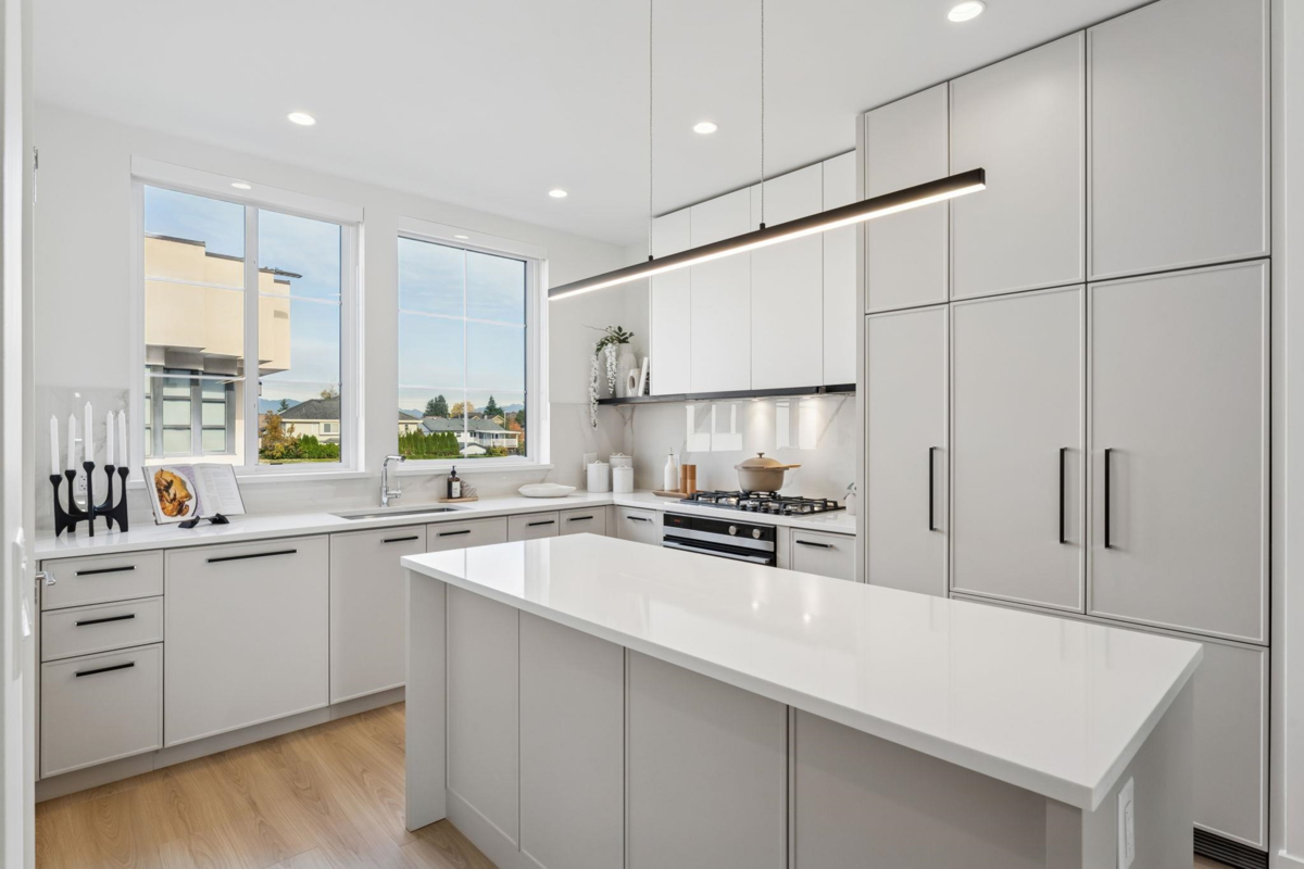 Located in Richmond3 s desirable Steveston neighbourhood, Cavendish by Panatch Group is an exclusive collection of move-in-ready 3 & 4 bedroom townhomes and duplexes. This bright 3 bedroom townhome offers just under 1,300 sqft of thoughtfully designed living space. Upstairs, all three bedrooms are grouped to keep everyone connected. The open-concept kitchen features sleek quartz countertops, integrated Fisher & Paykel appliances, and modern shaker-style cabinetry. Enjoy a fenced yard and a deck off your living area®ideal for entertaining and everyday living.