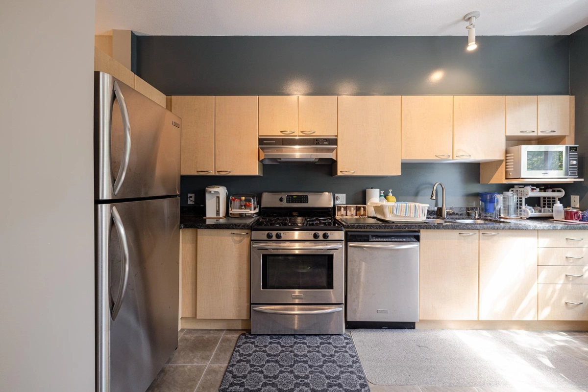 Welcome to Tennyson Garden in Terra Nova, a thoughtfully crafted townhouse community by Polygon. This well-maintained, three-level residence features a cozy gas fireplace and real hardwood flooring in the living room, beautifully complemented by designer paint finishes. The main floor boasts an impressive 9-foot ceiling, enhancing the sense of space and light throughout. The kitchen has been tastefully upgraded with sleek stone countertops and steel appliances. School catchment includes Spul'u'Kuks Elementary and Burnett Secondary-ideal for families seeking excellent educational options.