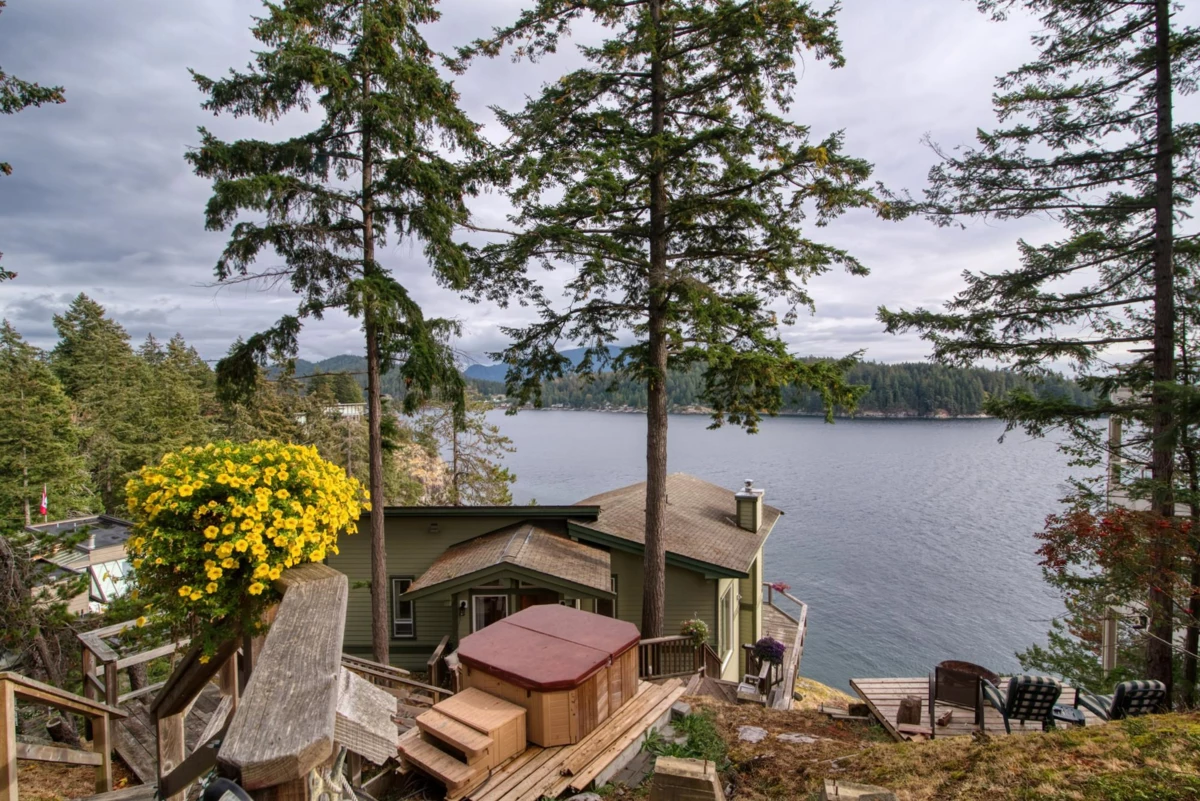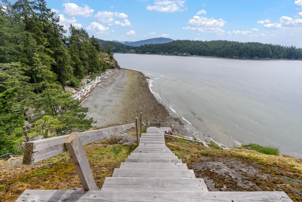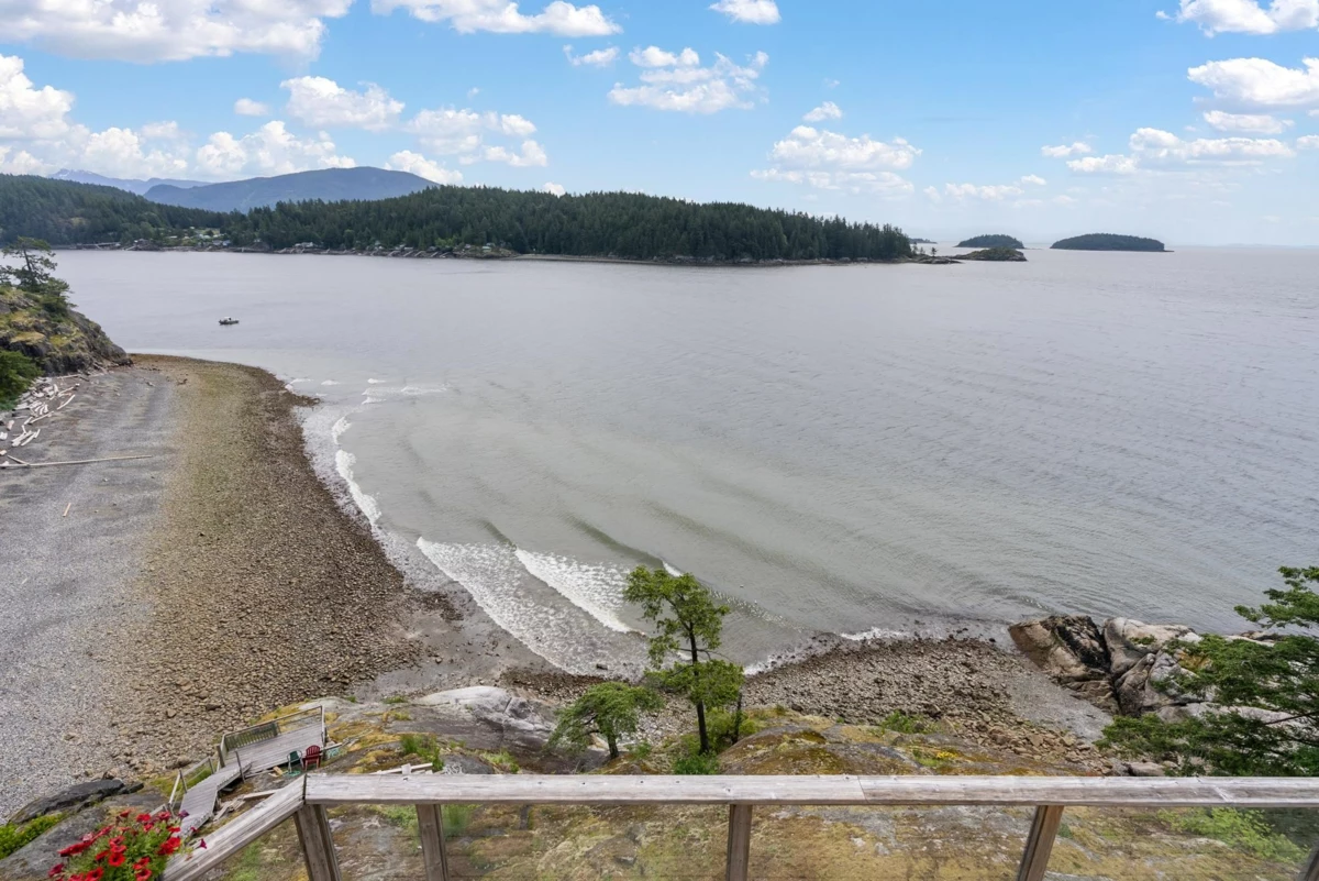 Discover Westcoast Waterfront in coveted Gibsons Bluff, just a scenic 40-minute ferry ride from West Vancouver. This south-facing 0.495 acre property offers a 22 year old home with views over the Salish Sea, Keats, and Vancouver Islands. Immerse in coastal living, strolling to Georgia Beach, Franklin Beach, and vibrant Gibsons Public Market. Features include Euroline windows, a detached triple garage with 220 power, and a staircase to rocks overlooking the water, creating a direct connection to the coastal landscape. Indulge in outdoor living on the expansive deck, dining against breathtaking views. Witness eagles soaring, boats sailing by, and occasional whale sightings. As a bonus a registered mooring buoy adds a maritime touch. Listed below tax assessment!