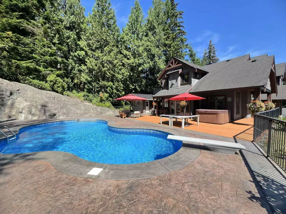Hidden Gem in Anmore Village - Private Oasis Nestled on a private 1.4-acre lot in Anmore Estates, this meticulously maintained family home is surrounded by lush trees and designed for outdoor living. Enjoy the landscaped yard with an outdoor pool, hot tub, expansive deck, pergola, and BBQ stove in the garden-perfect for entertaining. Inside, the open-concept layout features vaulted ceilings, south-facing windows, hardwood floors, and a gourmet maple kitchen with granite counters. A main-floor ensuite bedroom suits guests or in-laws. The master suite offers a fireplace, sitting area, and spa-like 5-piece ensuite. A rare gem with a triple garage! Tons of upgrade, including newly replaced composite tile deck. Open House Nov 23 Sun 12:00 - 2:00pm