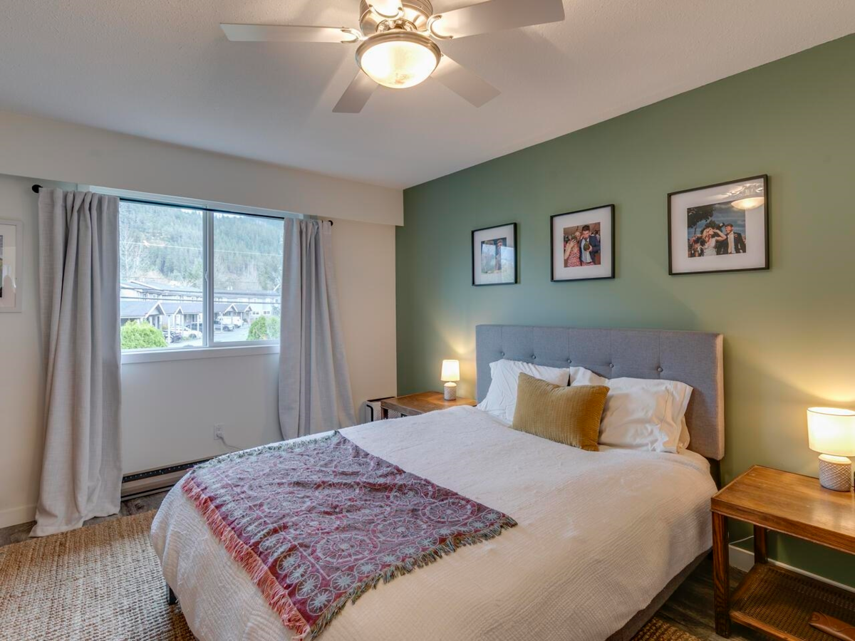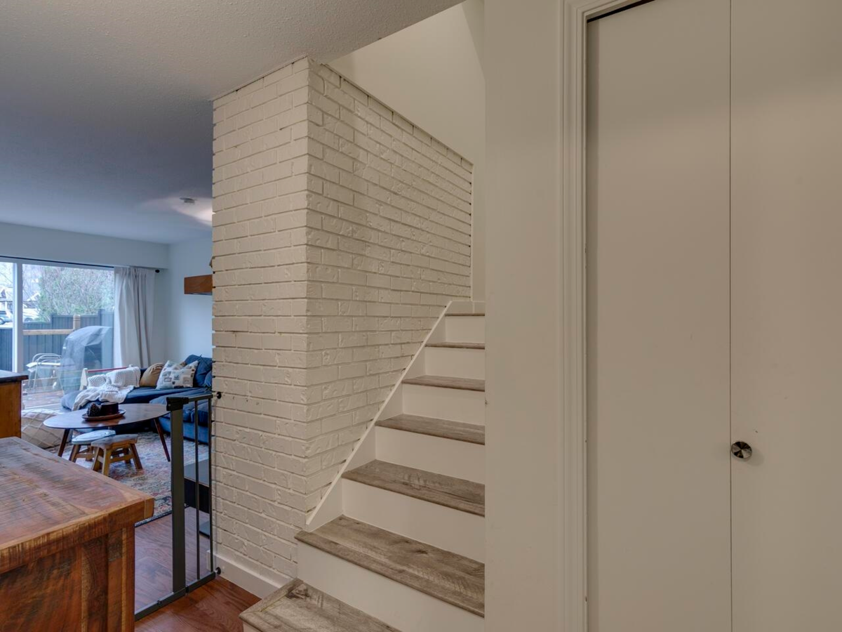 Welcome to The Cottonwoods in Brackendale — the perfect mix of nature and convenience, just steps to trails, the river and a fantastic local café. This 2-bed + Flex townhome offers peace of mind with major building upgrades completed, including HardieBoard siding, windows, roof, gutters and fencing. Inside features laminate flooring throughout, a 2-pc powder room on the main and a beautifully renovated main bathroom. The living room opens to a fully fenced backyard with a newly built deck that seamlessly extends the living space for outdoor dining and relaxing. Generous bedrooms and a versatile den/storage provide comfort and flexibility. Covered parking with a private locker included. Walkable to schools, restaurants and shops — an inviting home in a sought-after neighbourhood.