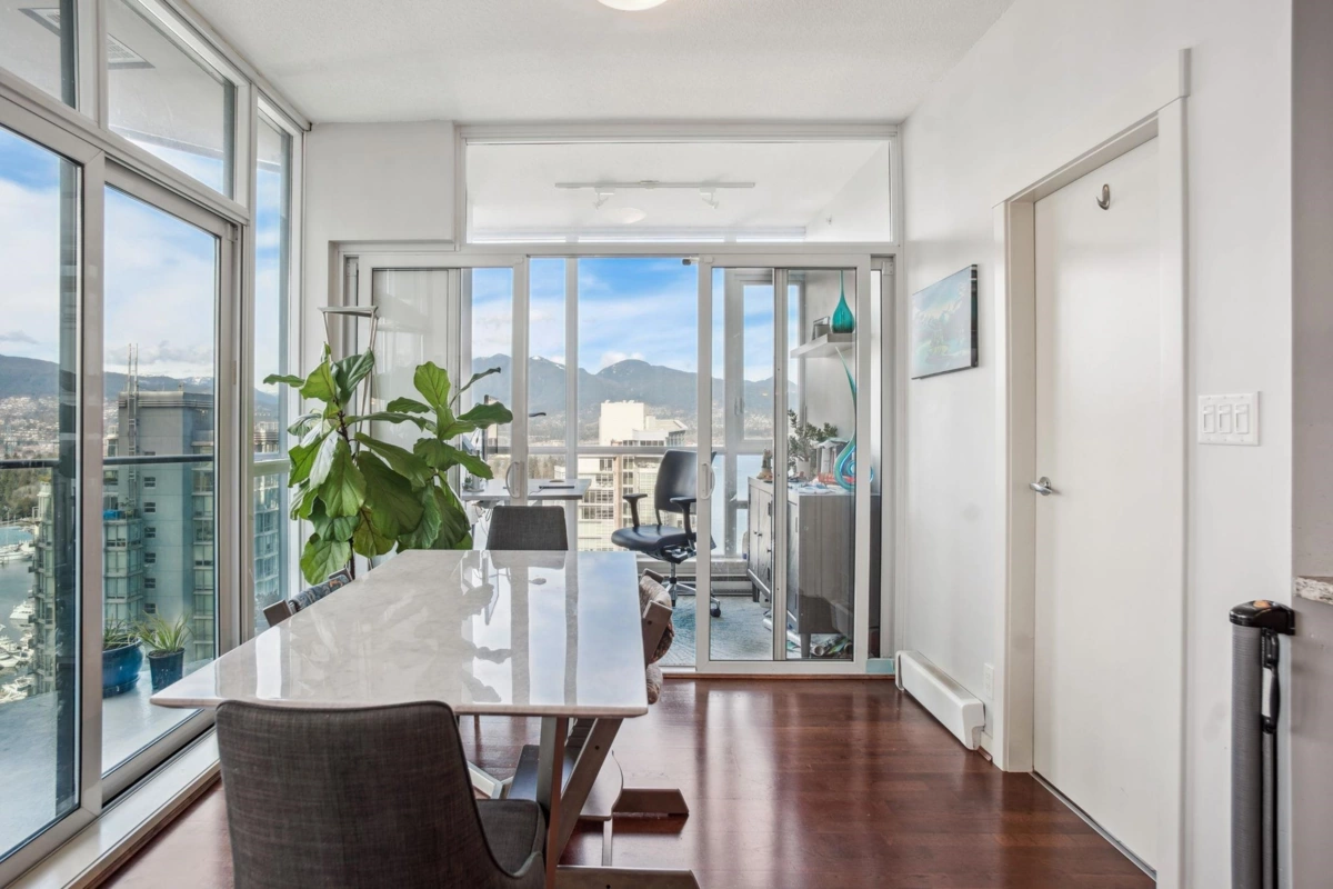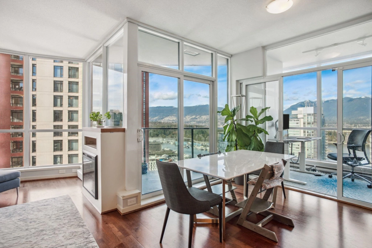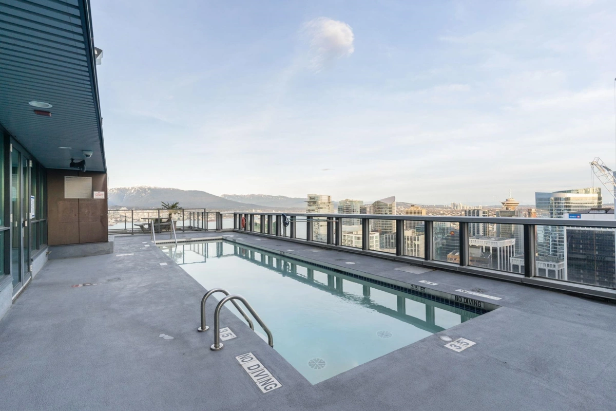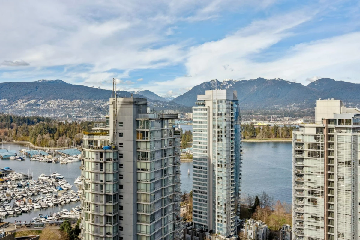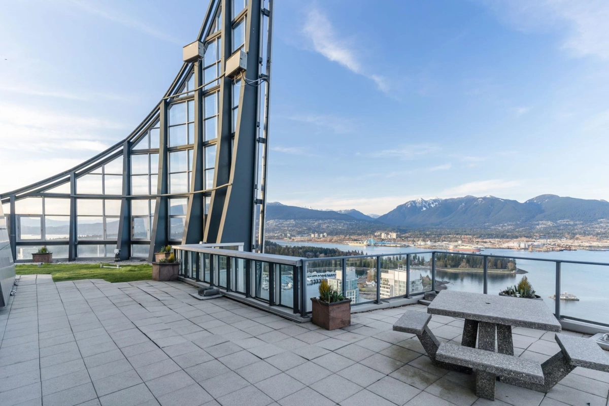 Discover elevated living at its best, welcome to The Melville! Enjoy breathtaking corner-unit views of Coal Harbour, North Shore Mountains, Marina and DT Vancouver. Recently professionally painted, this stunning 2 bed 2 bath home features the desirable NW corner floor plan w/ 9' ceilings, den and solarium. Enjoy sunsets from your beautiful outdoor patio.This impeccably designed home boasts hardwood floors, fireplace, premium full-size stainless steel appliances, granite & marble countertops w/ ample storage space. Includes 1 parking & 1 locker. Conveniently located to major amenities, transit, grocery stores, Stanley Park Seawall and Robson Street. Enjoy 24hr concierge & exclusive rooftop access to fitness center, hot tub, sauna, garden, bbq area &outdoor swimming pool. OH Sun 2-330pm