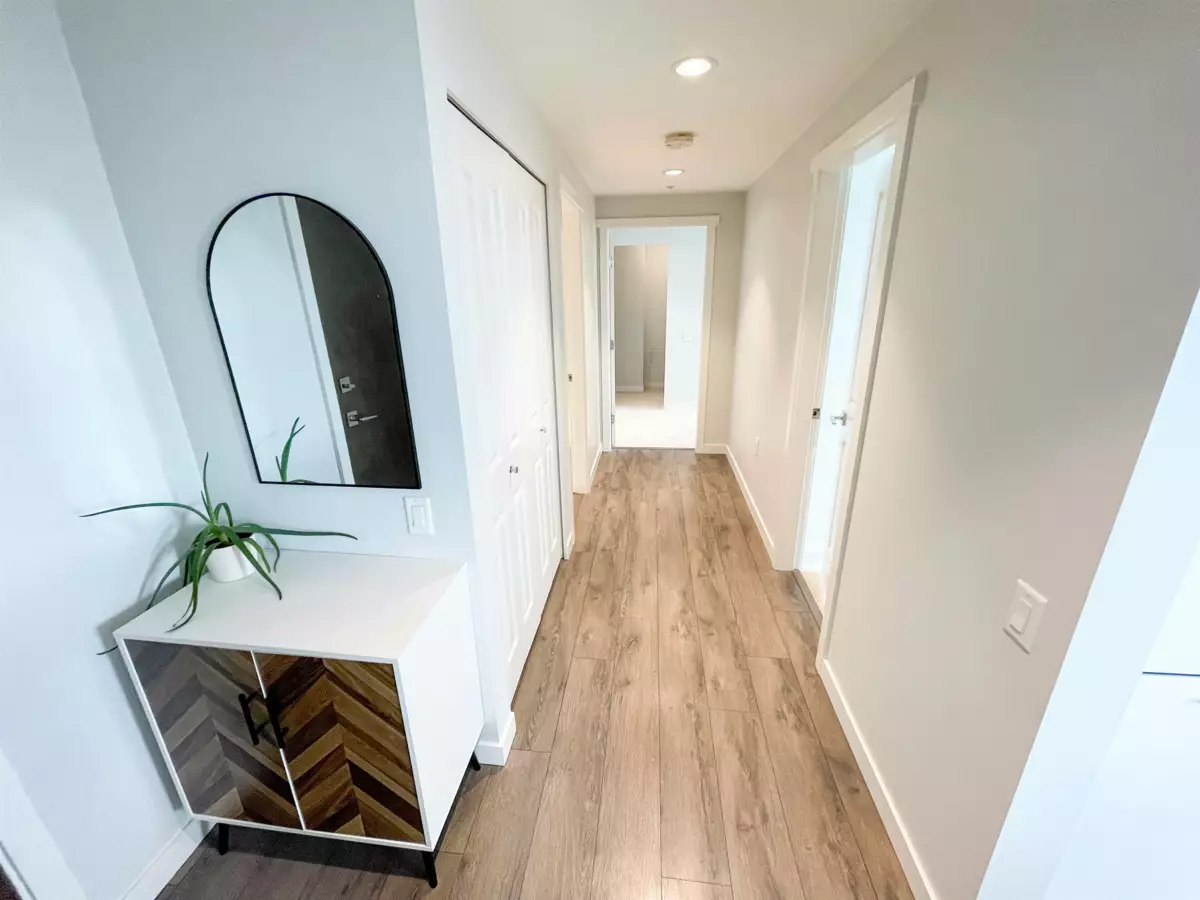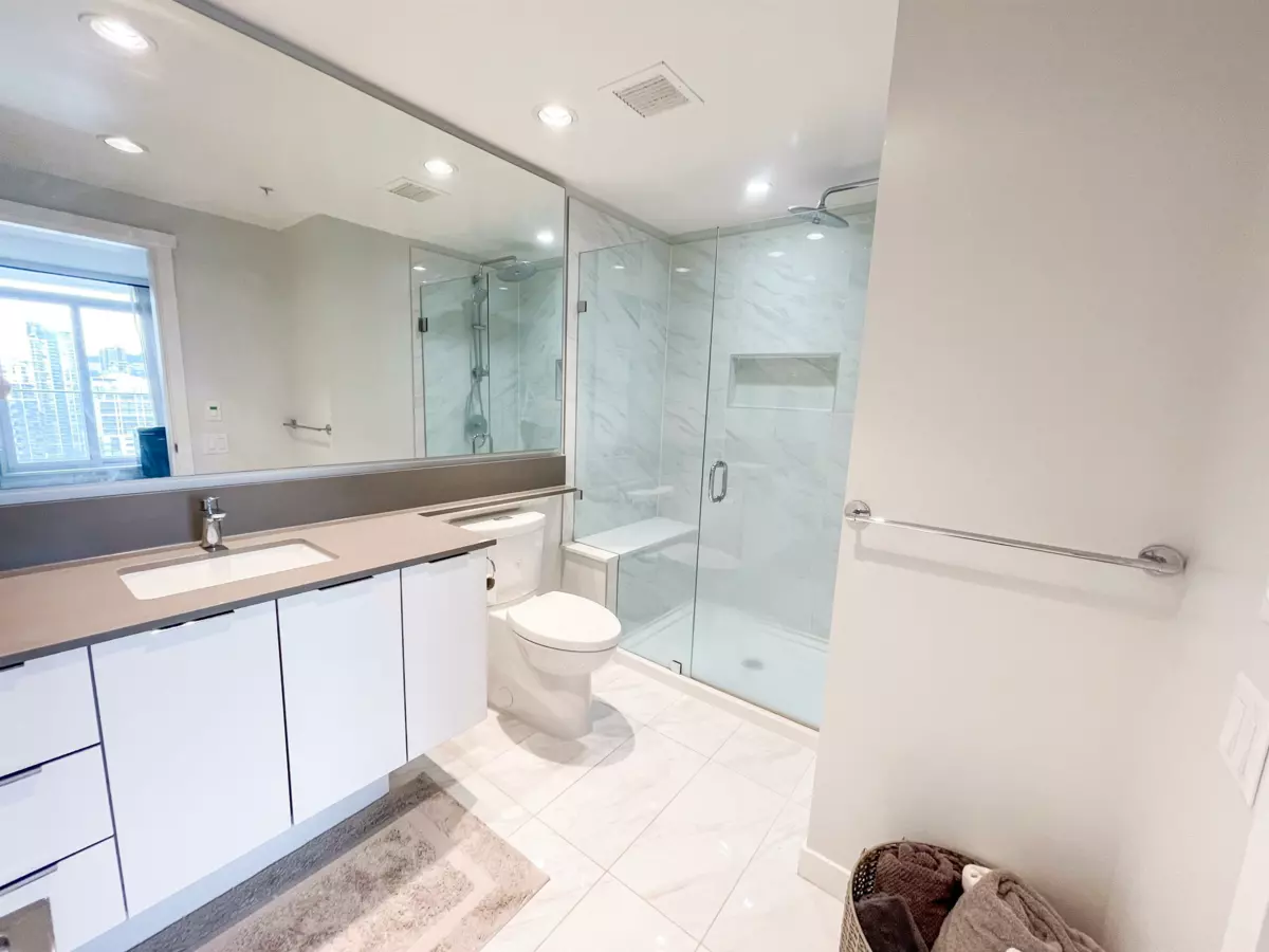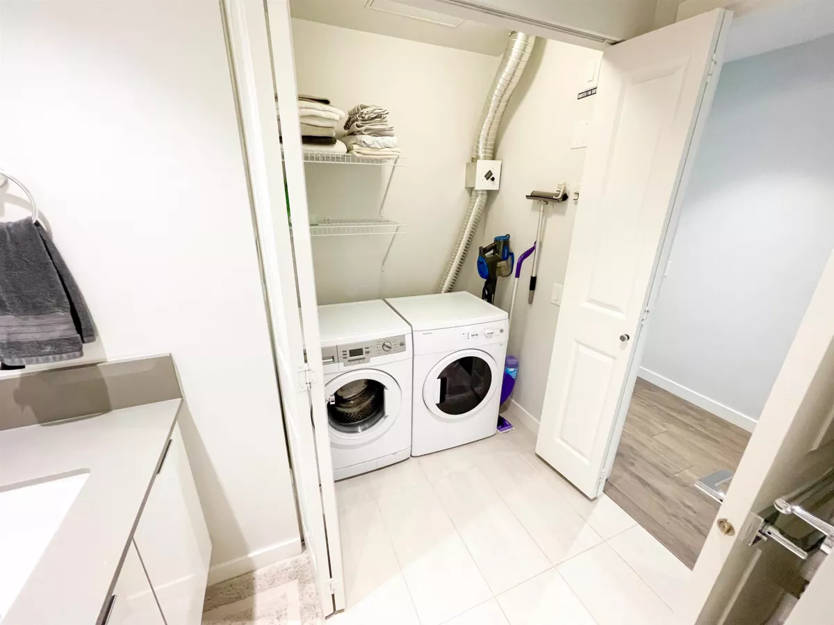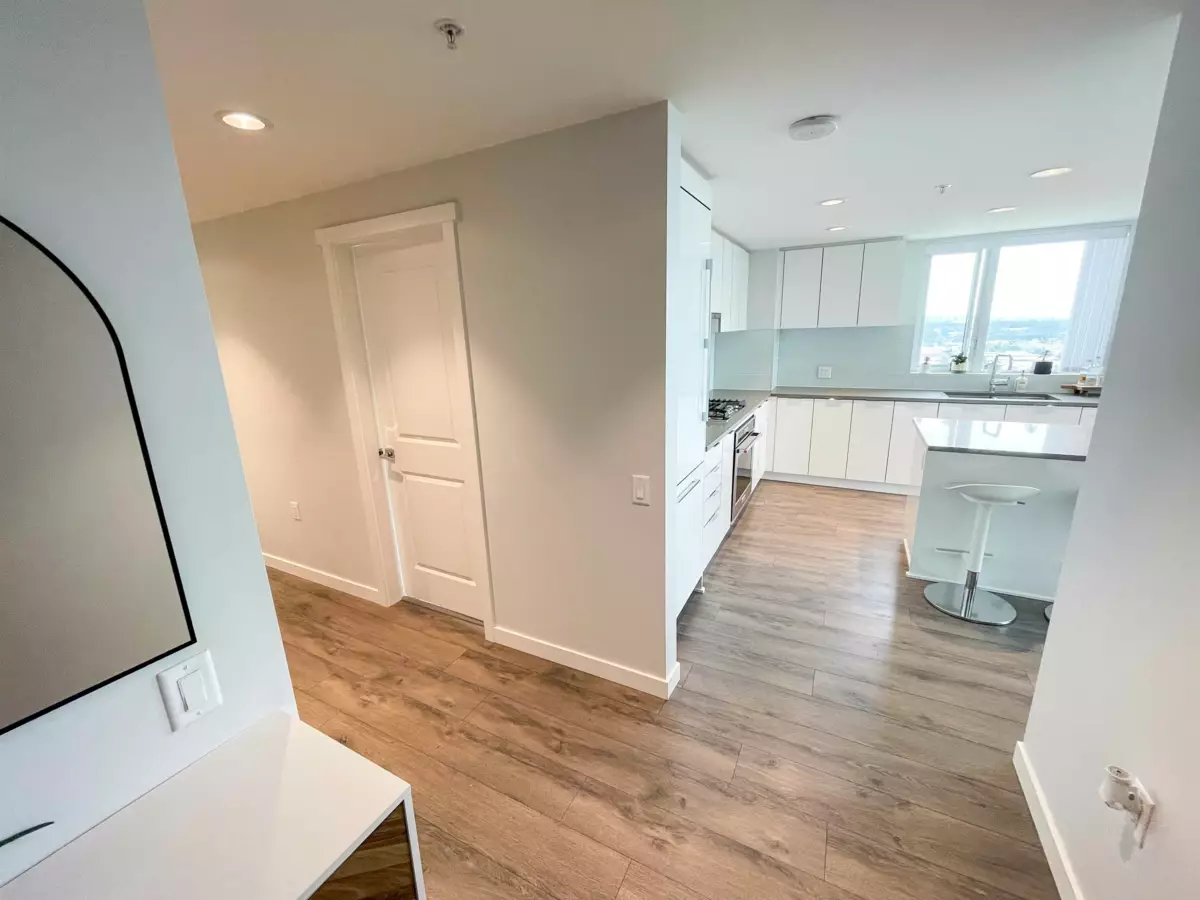 This bright, airy south-east facing corner home showcases panoramic views and an abundance of natural light. Featuring two spacious bedrooms and two bathrooms, the thoughtfully designed layout ensures both comfort and privacy. Floor-to-ceiling windows frame stunning vistas, while two private balconies provide perfect spots to relax. The modern kitchen offers sleek cabinetry, premium appliances, and a generous island, ideal for cooking and entertaining. Situated in the heart of Brentwood, you’ll enjoy resort-style amenities along with vibrant shops, restaurants, and easy transit access right at your doorstep. This is elevated urban living at its finest.