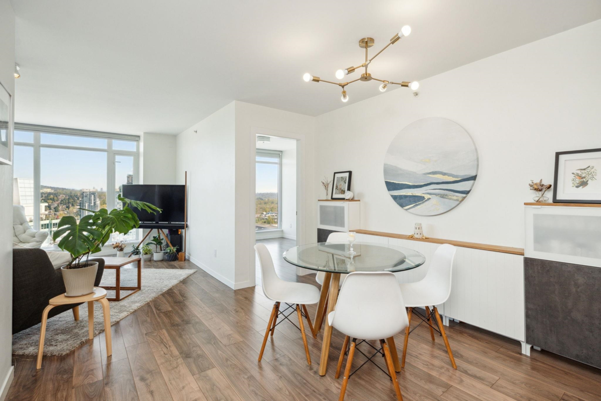 This clean, well-maintained 2-bed, 2-bath corner home perched on the 29th floor offers breathtaking N/SE views of the mountains & city skyline. Recently updated, the home features walnut laminate flooring throughout, fresh paint, new roller blinds, modern lighting fixtures, & a smooth ceiling finish. The kitchen is equipped with an upgraded Stainless Steel gas range/oven, refrigerator, dishwasher & white Quarts Counters for a contemporary touch. Located in a prime location, close to Brentwood Park Elementary, daycare, The Amazing Brentwood Mall, SkyTrain, Whole Foods, & restaurants. Enjoy excellent amenities, plenty of visitor parking, including concierge, gym, party room, & games area. This move-in ready home is waiting for you! Book your private showing today! Open Sat. Oct 4 230-500P
