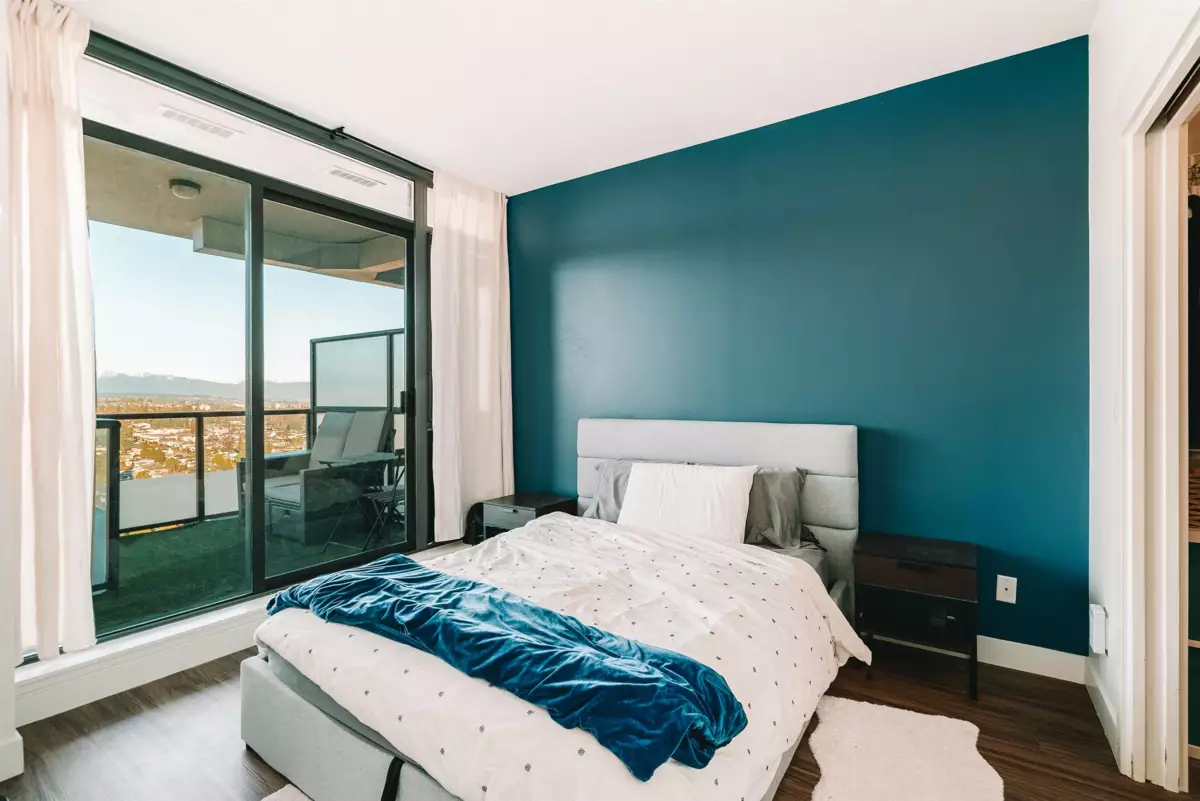 Jaw Dropping North Facing MOUNTAIN VIEW w/ 9ft ceilings & picturesque floor to ceiling windows! A sizeable 1 bed condo that makes you feel like you're on top of the world! And you're next door to Edmonds Skytrain making it a great purchase to move into or rent out as an income property. Other Features: a gourmet kitchen, gas stove, stainless steel appliances, granite countertops, refinished cabinets & laminate flooring. Enjoy the view inside with a cozy gas fireplace. Or outside on your private & spacious 100sqft patio. Well run & proactive strata w/ caretaker & excellent amenities. Immediate skytrain access to get around the city, or keep it close surrounded by parks, shops, recreation, restaurants, schools & more a short walk away! 1 Parking/Storage. 2 Pets/Rentals allowed.