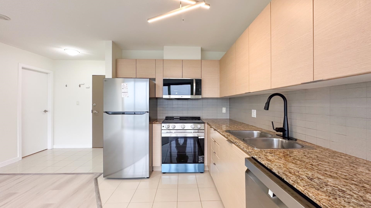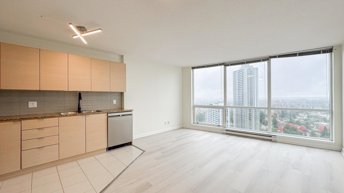Welcome to urban living at its finest! This beautifully updated one-bedroom condo offers unbeatable convenience and modern comfort. Located just steps from the SkyTrain, top-tier shopping, and vibrant dining options, you’ll enjoy seamless access to everything the city has to offer.Bright and spacious layout with stunning city views,brand new laminate vinyl flooring throughout,sleek kitchen with new stainless steel appliances,quiet, well-maintained building in a highly walkable neighborhood. Whether you're a first-time buyer, downsizer, or investor, this condo checks all the boxes. Don’t miss your chance to own a piece of the city in a location that truly has it all.