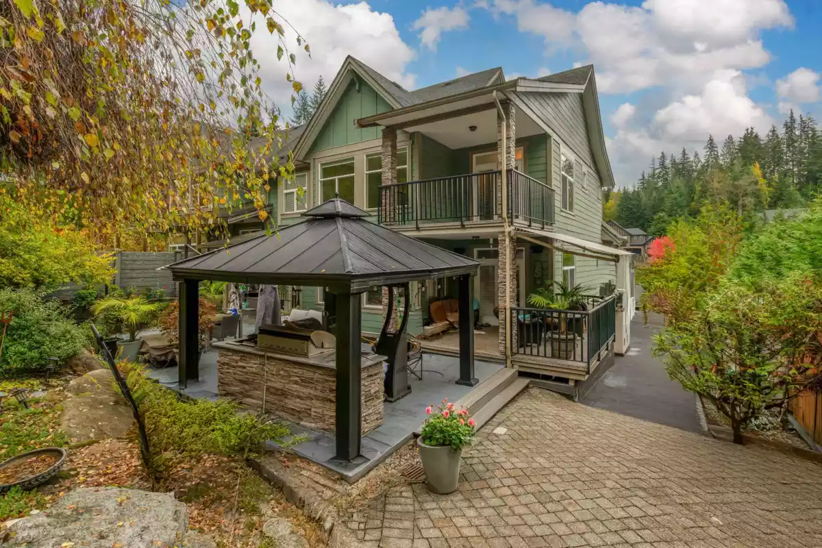 Luxury living in beautiful Anmore! This impressive 1/2 duplex offers over 3,700 sqft of elegant living space with 4 bedrooms and 4 bathrooms. Designed for comfort and style, it features updated paint, rich laminate flooring, and an open-concept layout perfect for entertaining. The chef’s kitchen boasts premium appliances including a Sub-Zero fridge and Wolf gas range. Enjoy year-round comfort with air conditioning, a new heat pump (2024), and wired for easy setup of a genset. The spa-inspired primary ensuite includes heated floors, while the private backyard—backing onto a peaceful greenbelt—offers a gazebo, built-in BBQ, and extended patio, ideal for relaxing or hosting gatherings. Fresh exterior paint and a full sprinkler system complete this exceptional home.