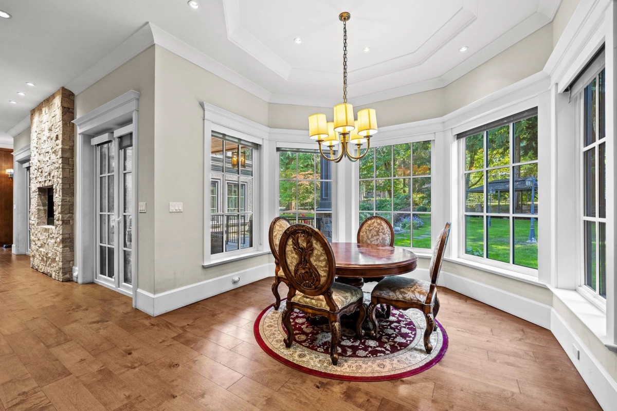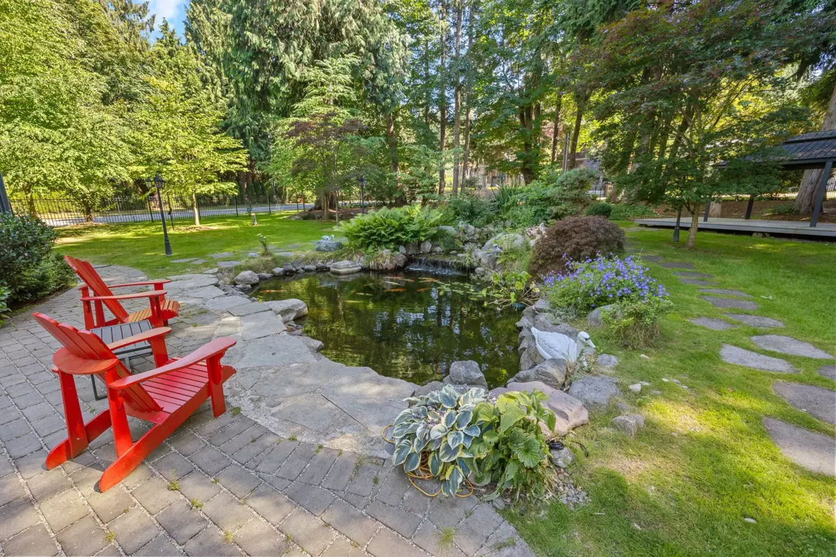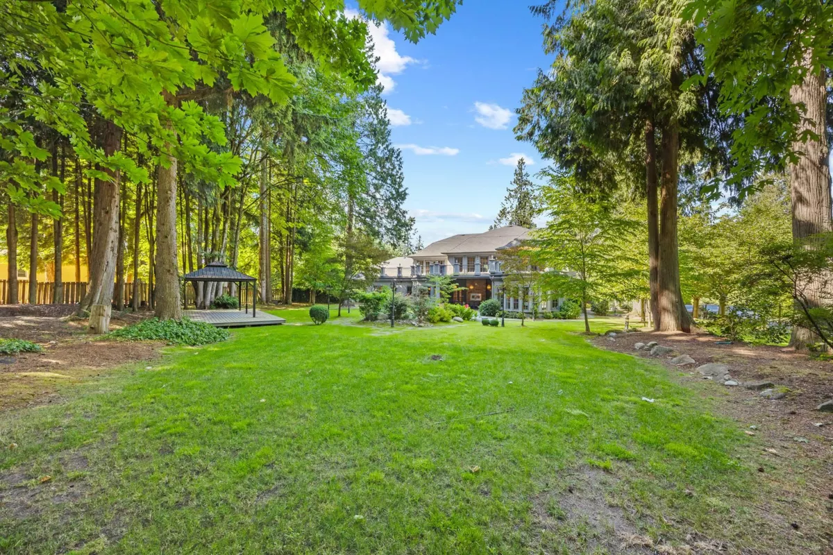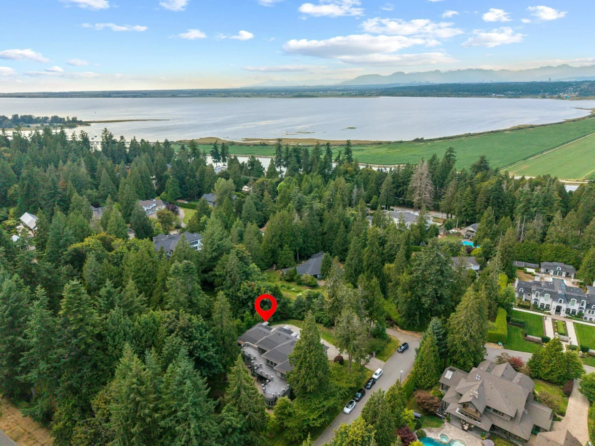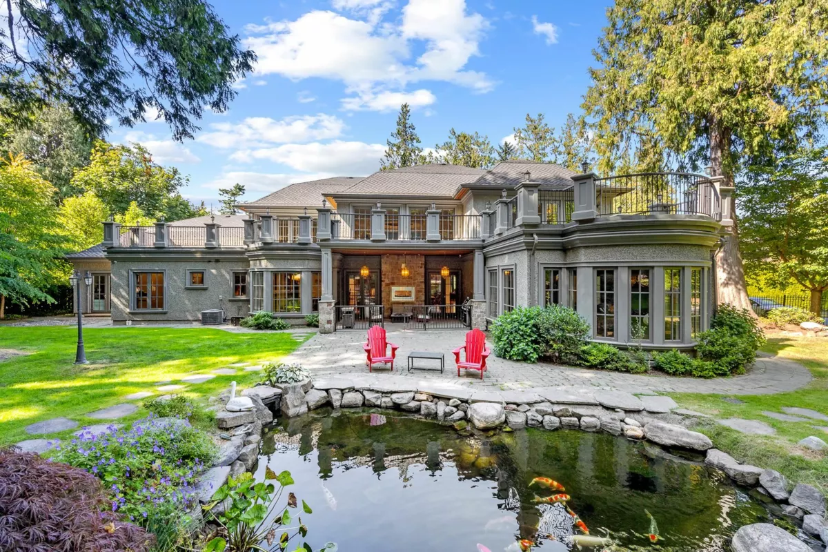 Exclusive custom home in Elgin’s luxury estate community, tucked in a quiet cul-de-sac. Elegant foyer and grand staircase lead to spacious living/dining areas with a built-in bar. Gourmet kitchen with Viking and Sub-Zero appliances, plus wok/spice kitchen. Sunlit conservatory and family room enjoy year-round garden views. Features 5 bedrooms (including en suite) and 7 bathrooms, with a stunning primary suite that opens to a large private deck. Total living space of 7,539 sq ft, with A/C, triple garage, koi pond, and gated entry on 0.92 acres. Outdoor covered patio with fireplace. Private, secure, perfect for entertaining. 5 minutes to Highway 99, directly to the US border, the airport and Vancouver.