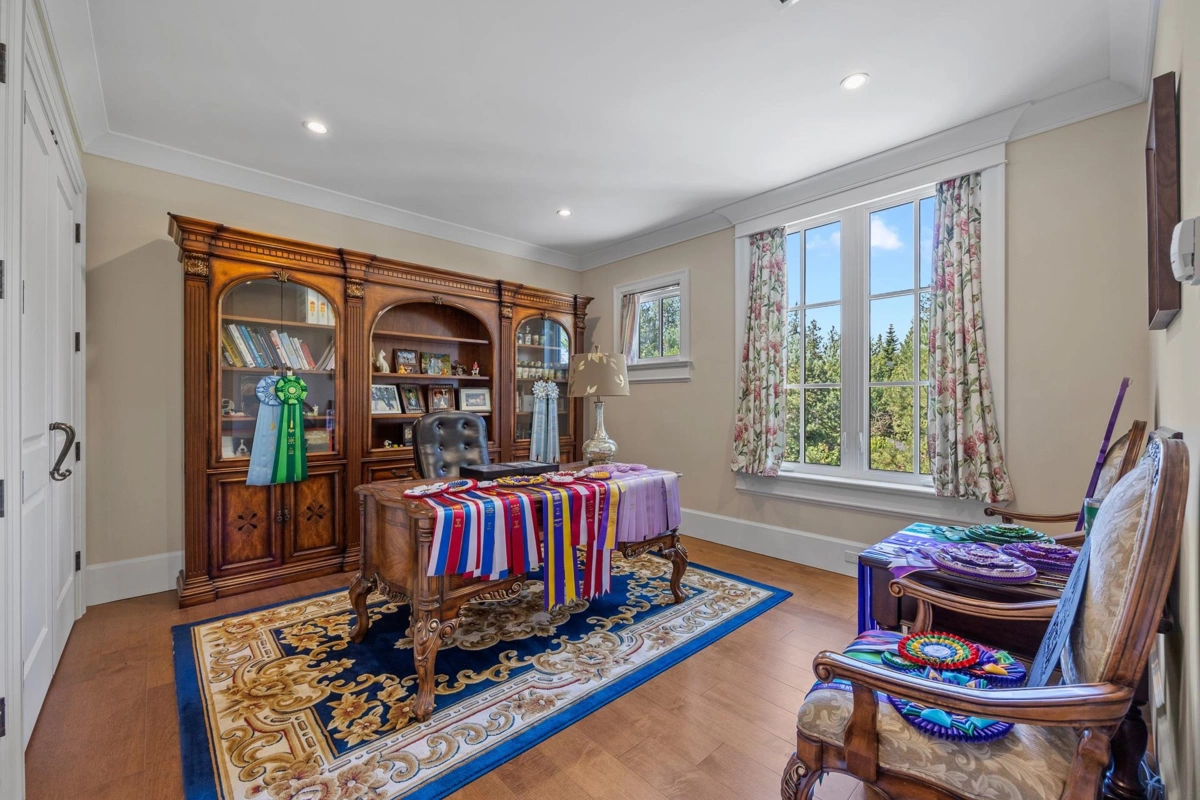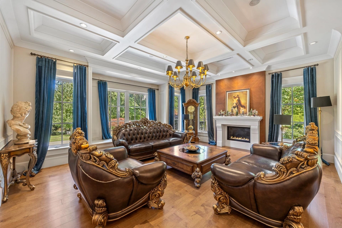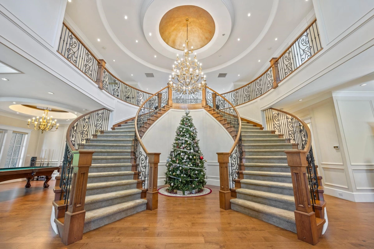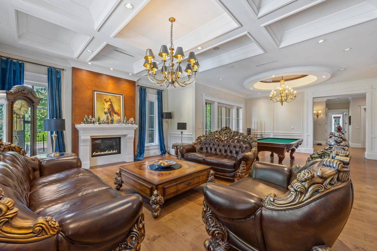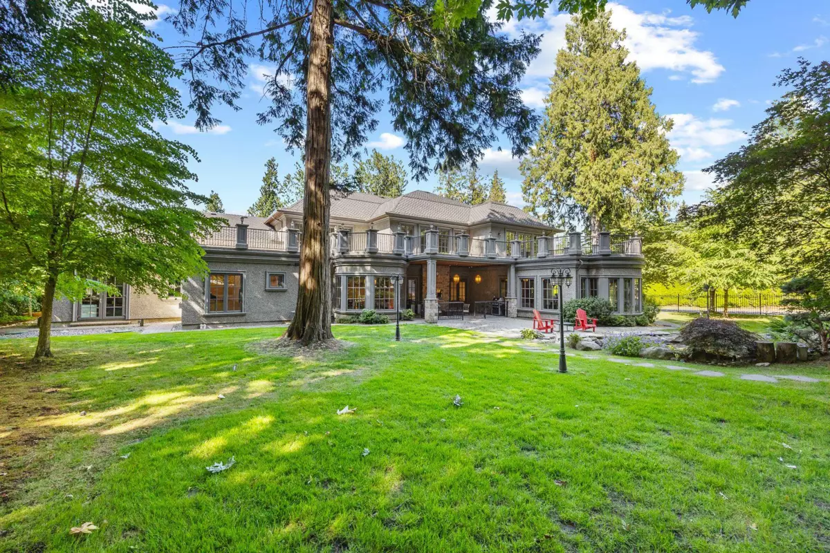 Exclusive custom home in Elgin’s luxury estate community, tucked in a quiet cul-de-sac. Elegant foyer and grand staircase lead to spacious living/dining areas with a built-in bar. Gourmet kitchen with Viking and Sub-Zero appliances, plus wok/spice kitchen. Sunlit conservatory and family room enjoy year-round garden views. Features 5 bedrooms (including en suite) and 7 bathrooms, with a stunning primary suite that opens to a large private deck. Total living space of 7,539 sq ft, with A/C, triple garage, koi pond, and gated entry on 0.92 acres. Outdoor covered patio with fireplace. Private, secure, perfect for entertaining. 5 minutes to Highway 99, directly to the US border, the airport and Vancouver.