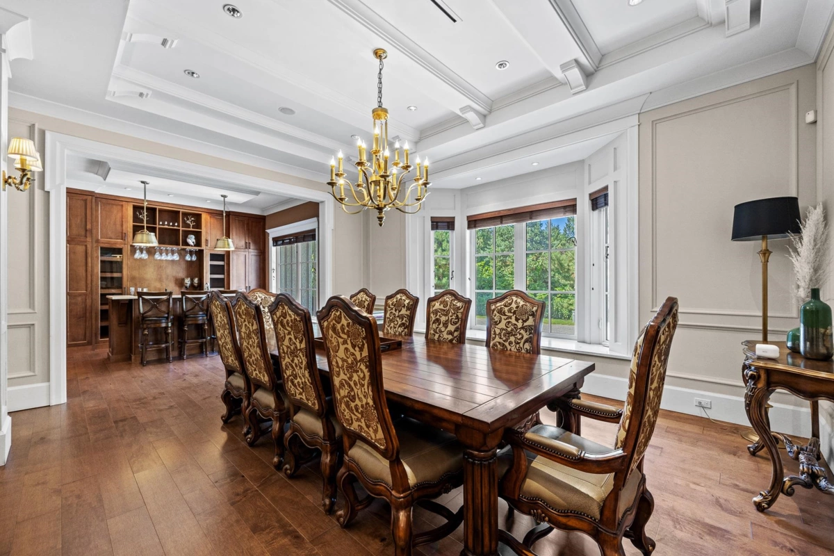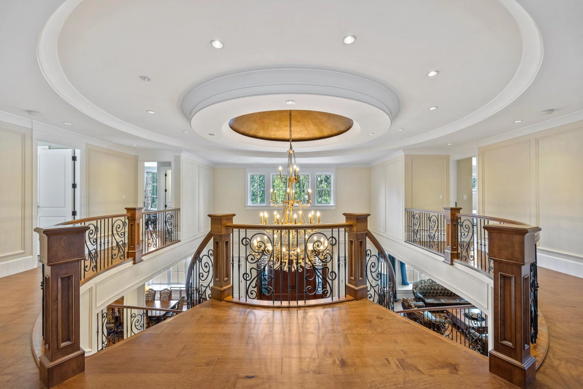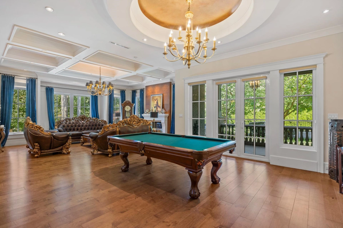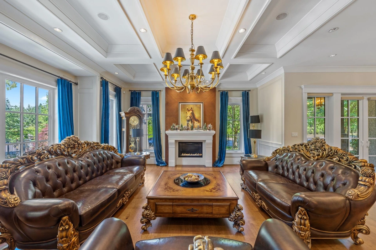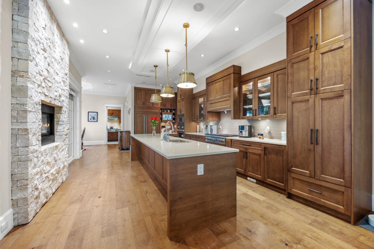 Exclusive custom home in Elgin’s luxury estate community, tucked in a quiet cul-de-sac. Elegant foyer and grand staircase lead to spacious living/dining areas with a built-in bar. Gourmet kitchen with Viking and Sub-Zero appliances, plus wok/spice kitchen. Sunlit conservatory and family room enjoy year-round garden views. Features 5 bedrooms (including en suite) and 7 bathrooms, with a stunning primary suite that opens to a large private deck. Total living space of 7,539 sq ft, with A/C, triple garage, koi pond, and gated entry on 0.92 acres. Outdoor covered patio with fireplace. Private, secure, perfect for entertaining. 5 minutes to Highway 99, directly to the US border, the airport and Vancouver.
