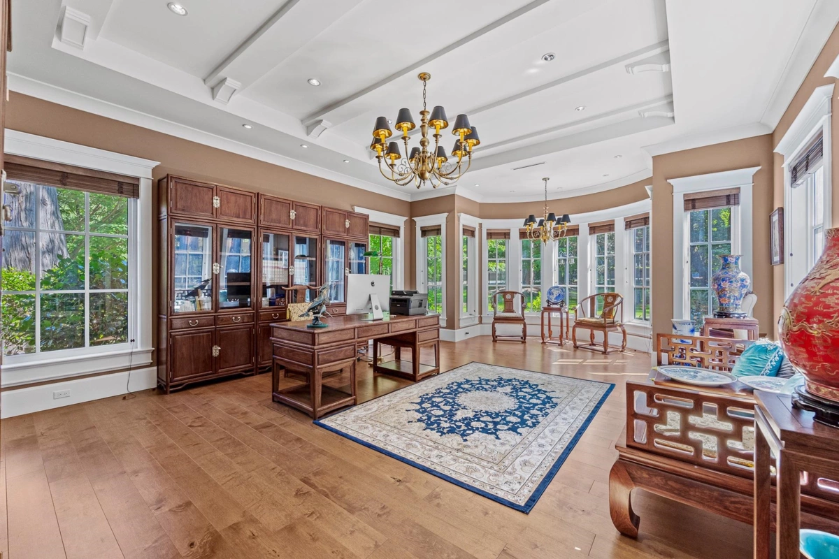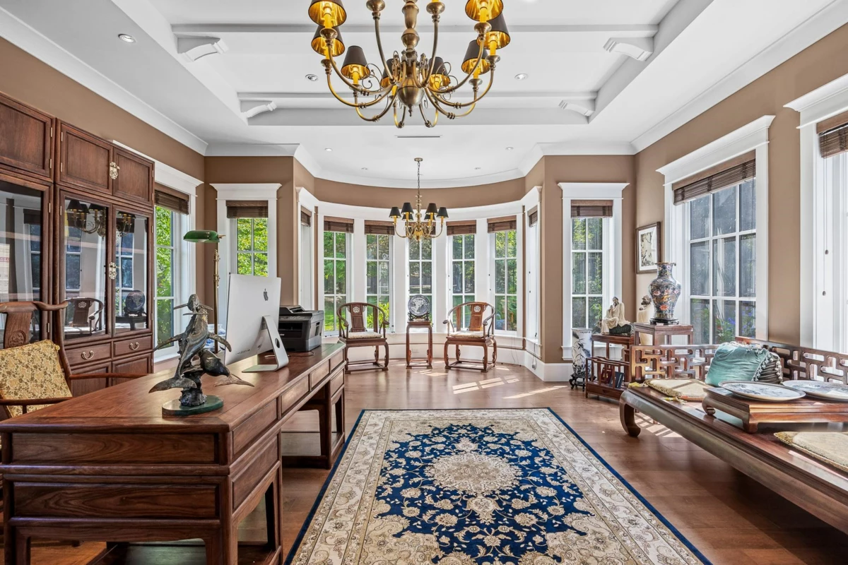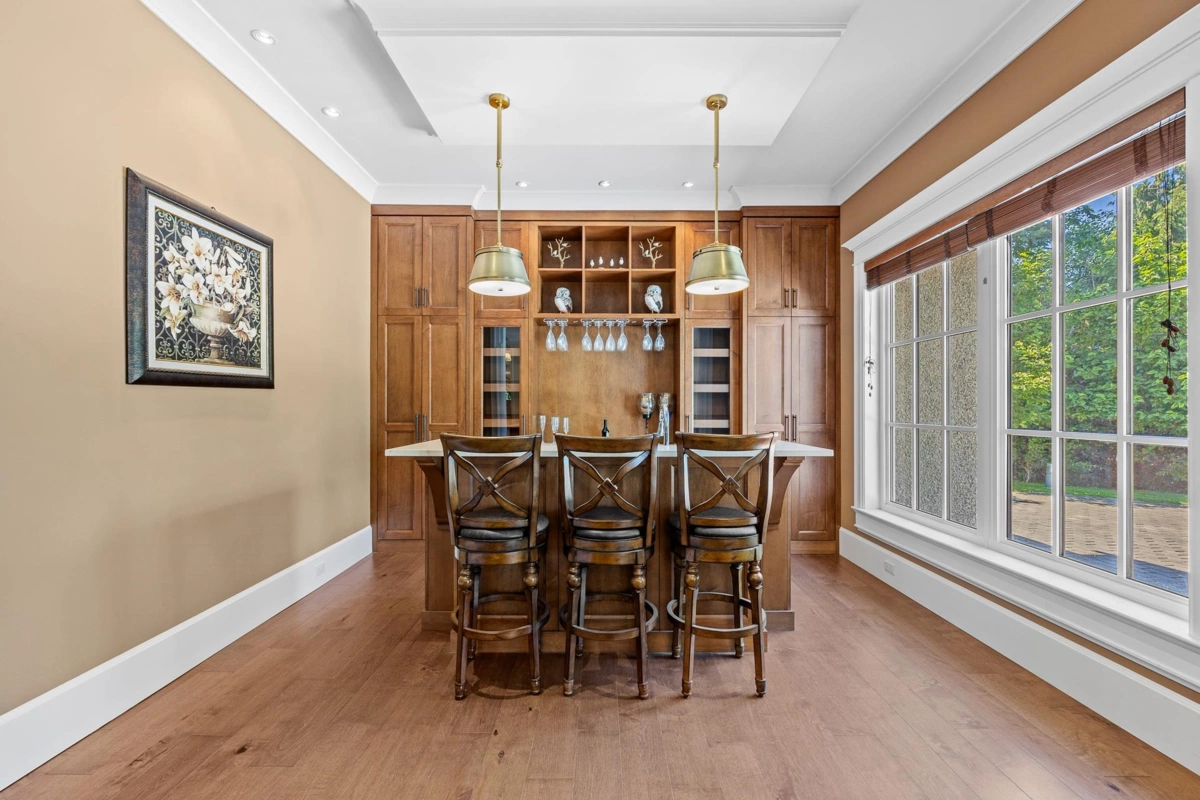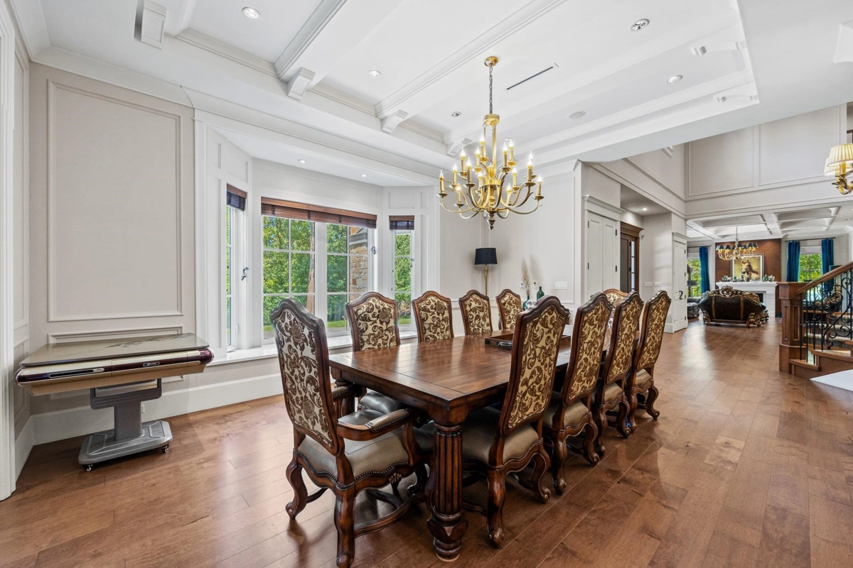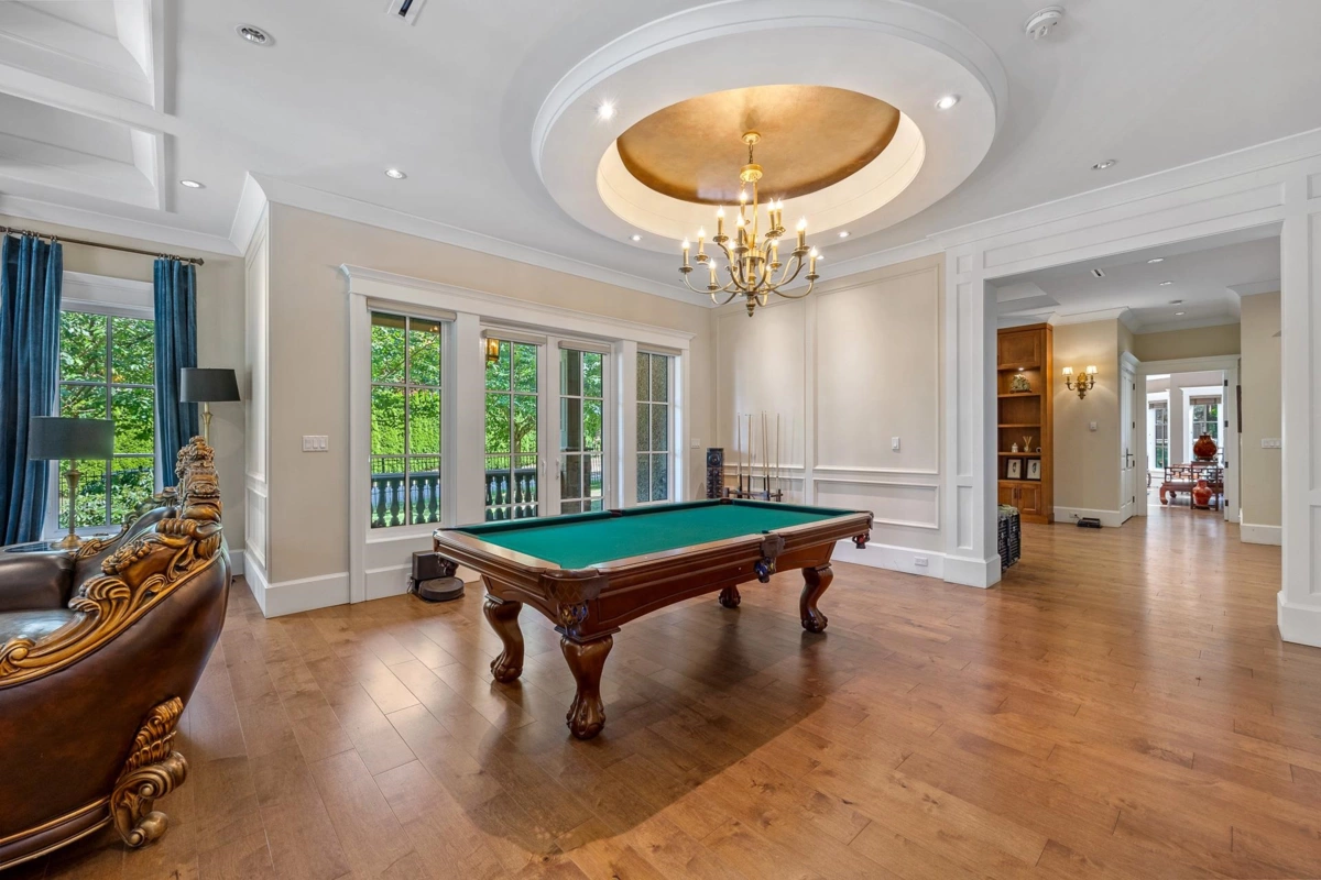 Exclusive custom home in Elgin’s luxury estate community, tucked in a quiet cul-de-sac. Elegant foyer and grand staircase lead to spacious living/dining areas with a built-in bar. Gourmet kitchen with Viking and Sub-Zero appliances, plus wok/spice kitchen. Sunlit conservatory and family room enjoy year-round garden views. Features 5 bedrooms (including en suite) and 7 bathrooms, with a stunning primary suite that opens to a large private deck. Total living space of 7,539 sq ft, with A/C, triple garage, koi pond, and gated entry on 0.92 acres. Outdoor covered patio with fireplace. Private, secure, perfect for entertaining. 5 minutes to Highway 99, directly to the US border, the airport and Vancouver.