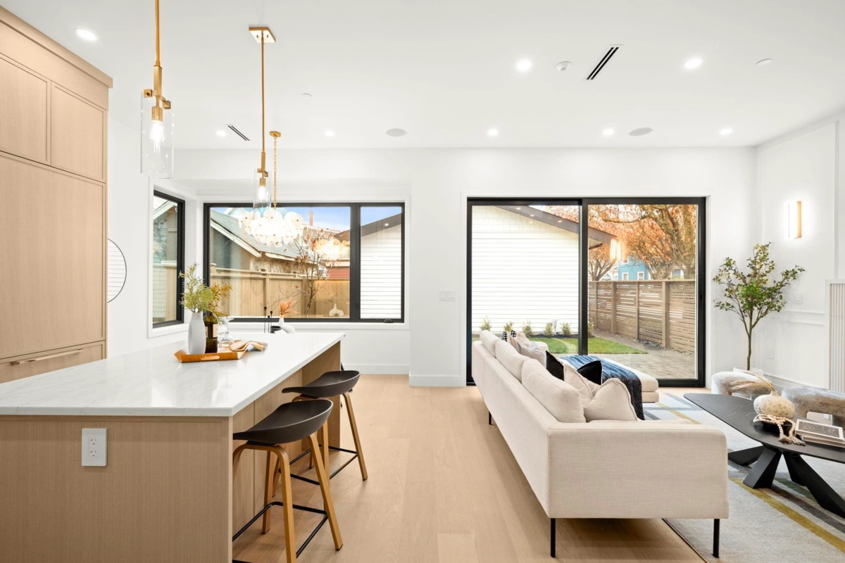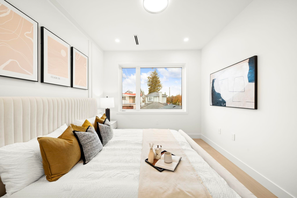 Stunning back duplex in Mount Pleasant with unbeatable mountain views from the upper bedrooms, your daily backdrop of sunrise and sunsets. Enjoy a completely private backyard perfect for pets, gardening, and outdoor entertaining. This 4 bed, 3.5 bath home features engineered hardwood floors, custom cabinetry, detailed millwork, radiant heating, and air conditioning. The sleek kitchen offers Fulgor appliances, a 6-burner gas range, and a large kitchen island with a separate dining space. EV-ready parking and a spacious crawl space for storage. Minutes away from Charles Dickens Elementary and Tupper Secondary catchments, steps to parks, cafés, transit, and more. Book your private showing today!