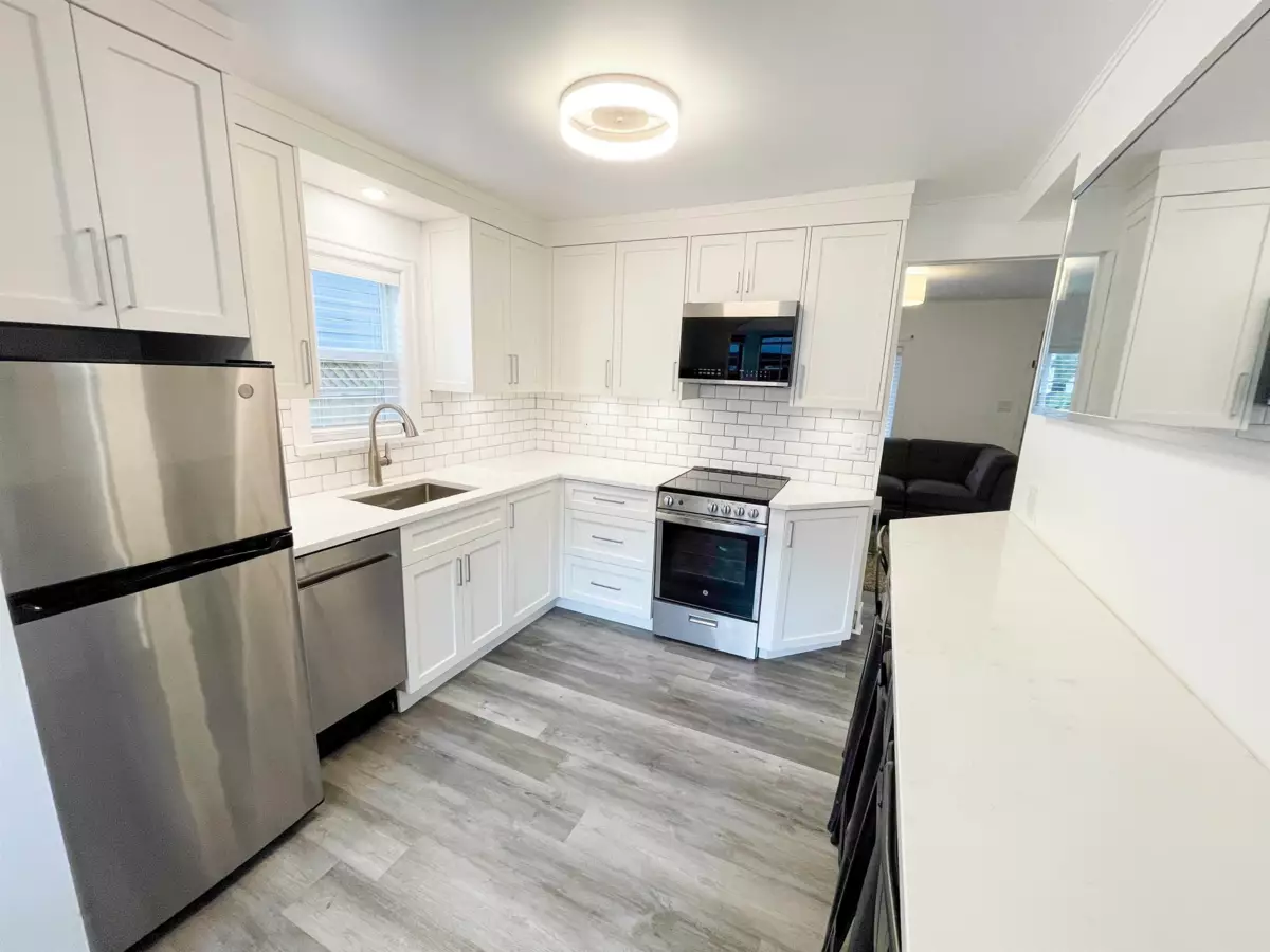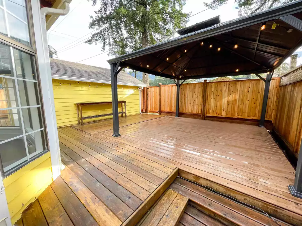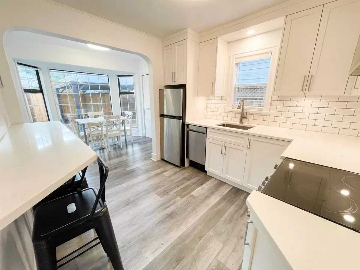 Ultra-clean and beautifully updated detached home featuring a new kitchen, appliances, bathroom, flooring, double-pane windows, washer/dryer, and on-demand hot water. Mini split heating/cooling system, Roof approx. 10 yrs old. Fresh paint inside/out. Enjoy a newer cedar deck, new cedar fencing, and a covered gazebo, perfect for outdoor living. Parking for 3 vehicles plus 4 additional passes along with lane access. Move-in ready and steps to the lake and amenities.