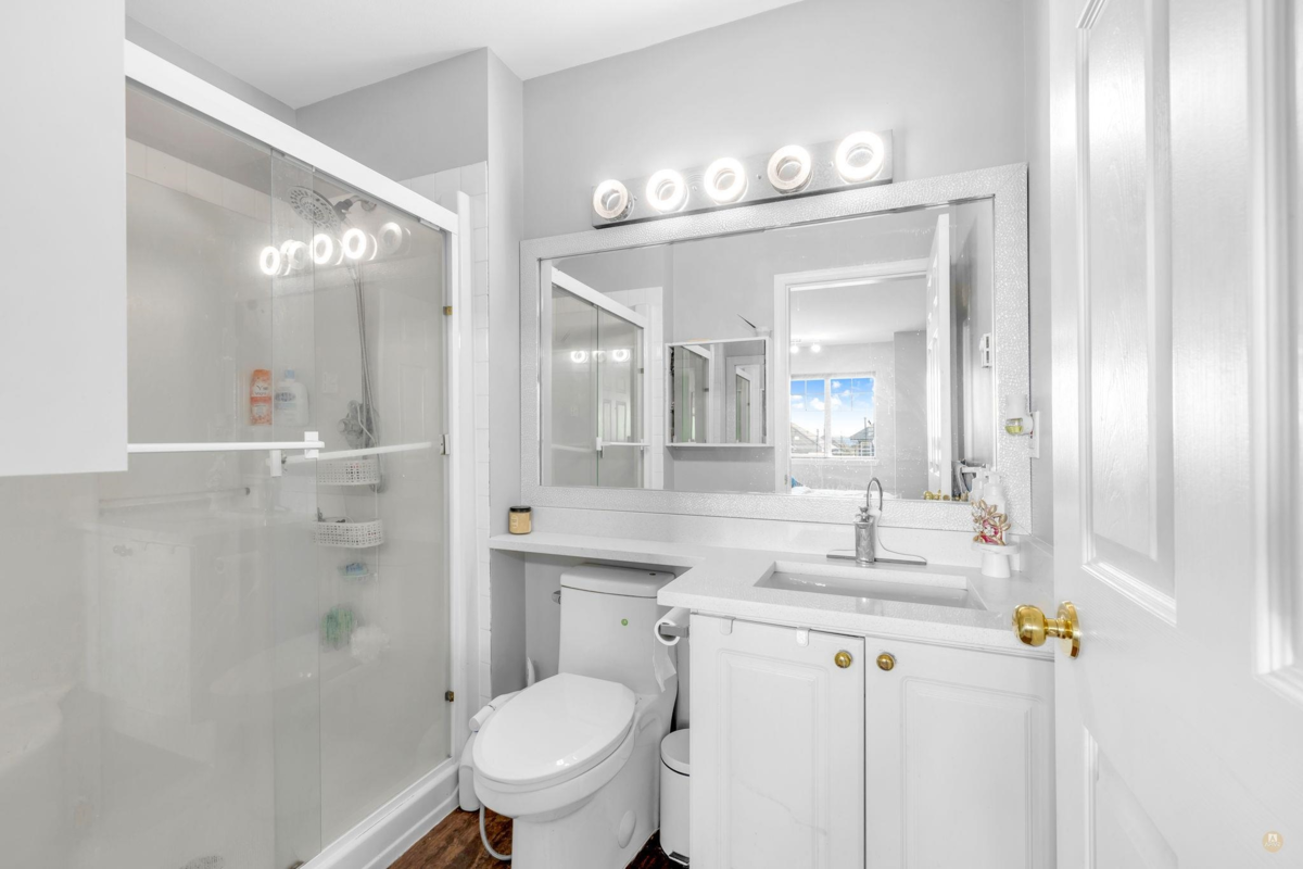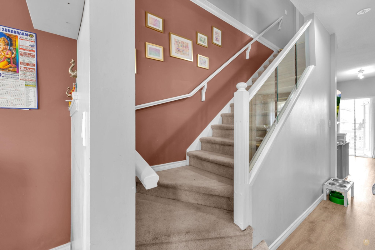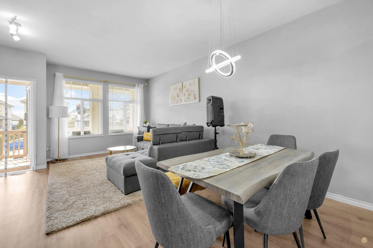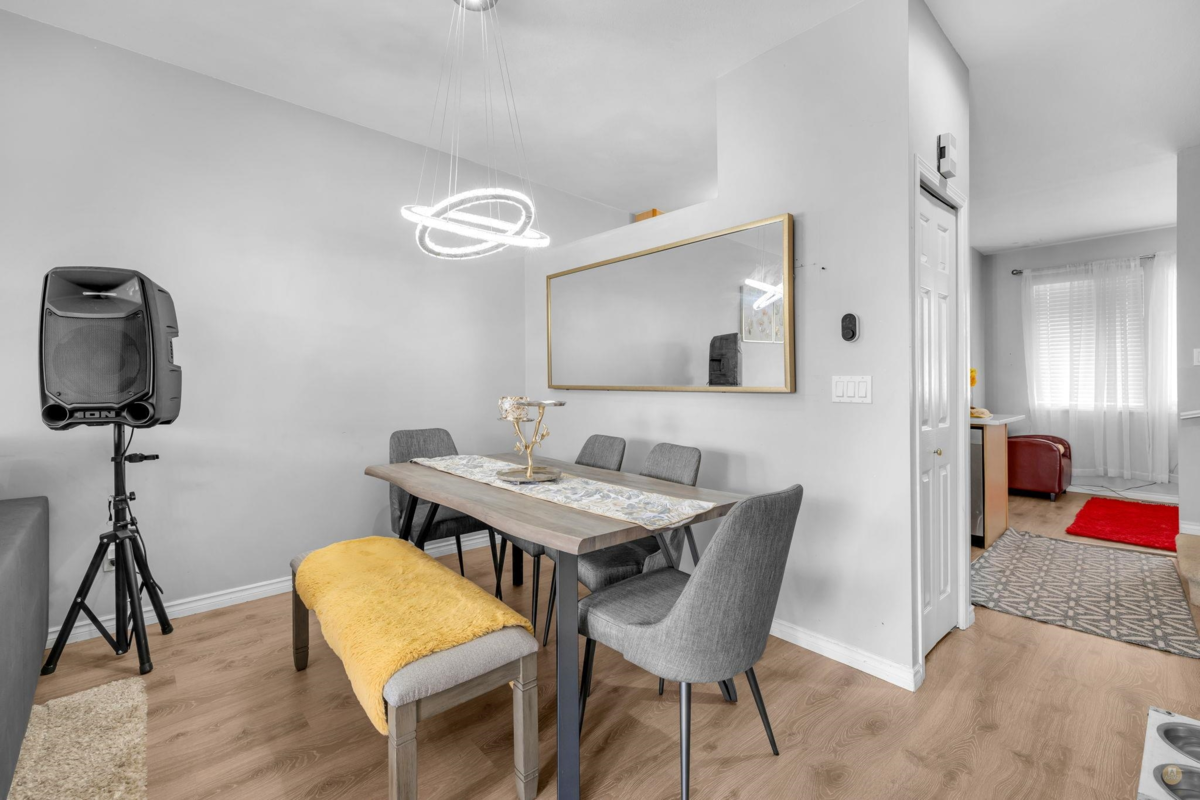 Duplex Style Townhouse! Discover the charm of this bright and spacious 2-bed, 2-bath townhome with 2 parkings located in family-friendly atmosphere, lush green spaces & convenient amenities. Offers fenced-in yard, contemporary laminate flooring under bright windows and high ceilings. Kitchen boasts stainless steel appliances and crisp quartz counters with a convenient breakfast bar. Adjacent laundry and naturally lit bedrooms, including a primacy suite with an ensuite and walk-in closet, provide comfort and convenience. Steps away from school, park, Starbucks, Fresh St. Market, McDonalds, Shoppers Drug, 152 St, Hwy 10 & King George. Walking distance to new French Immersion school - Snokomish Elementary. Call now to book appointment.Open House Sat - Sun 12 - 2 PM