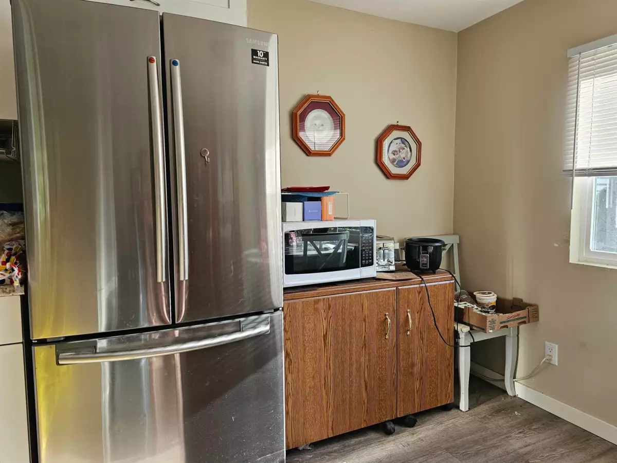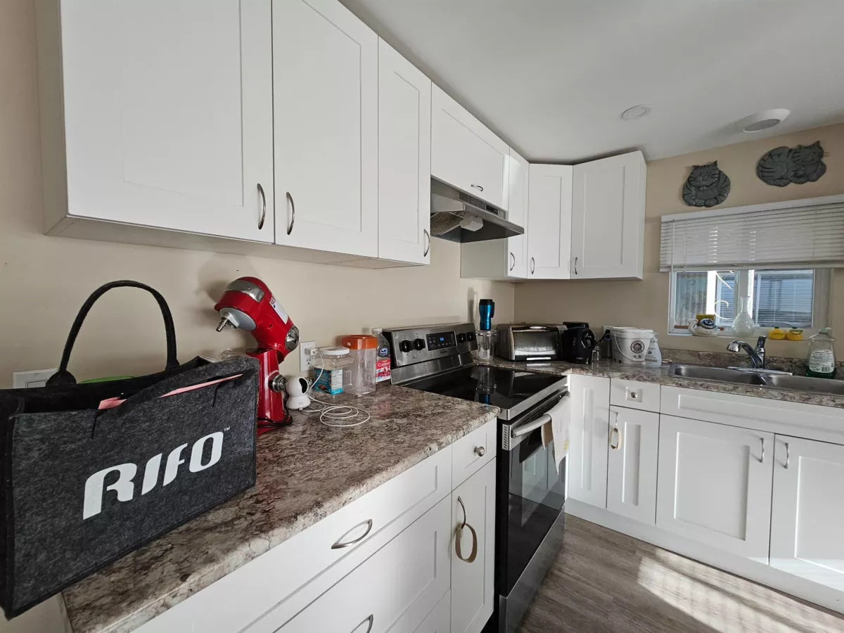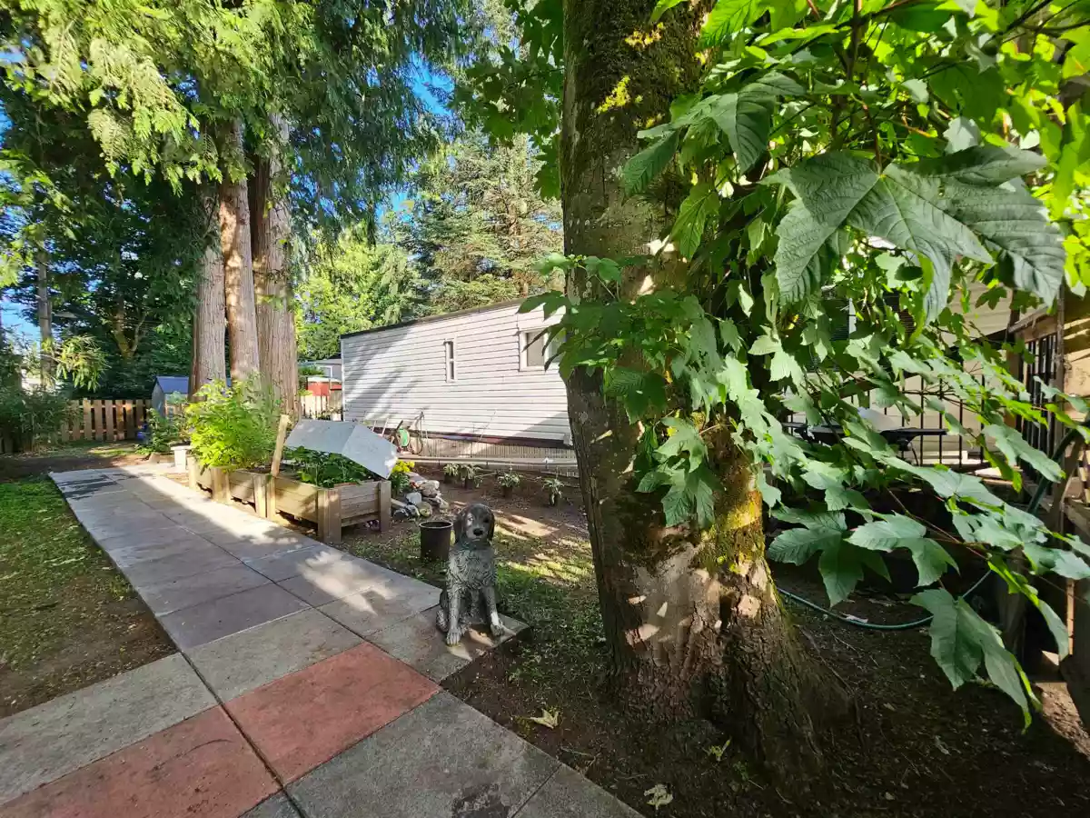 #3 was renovated in 2020 and then a gardener moved in and made this into a dream park! This is a nice quiet park with 9 units! 2 bedrooms 1 bathroom home with vinyl plank flooring. The kitchen features an island/ breakfast bar. This bathroom includes a large walk-in shower. Nicely placed washer & dryer. Having drywall this unit feels fresh and homey. Doors and windows were new in 2020. The primary bedroom has two closets and a nice size to it. There is a large living room with an open kitchen and eating area. The roof is about 7 years old. The furnace is about 7 years old. The yard is such a nice size with perennials and veggies growing! :) Nice covered deck. Close to transit. 2 pets under 40lbs is ok. 19+ pad rental is $1,000.