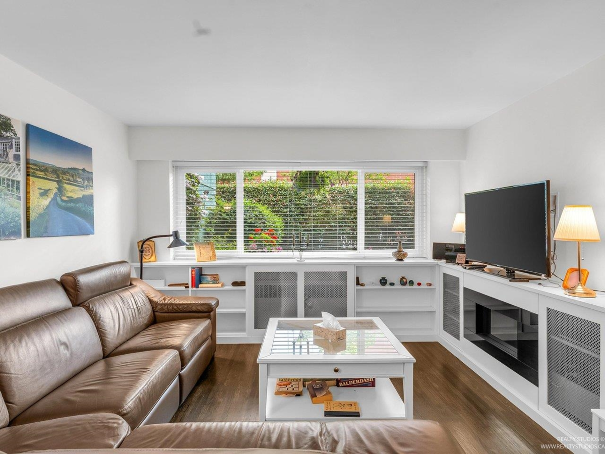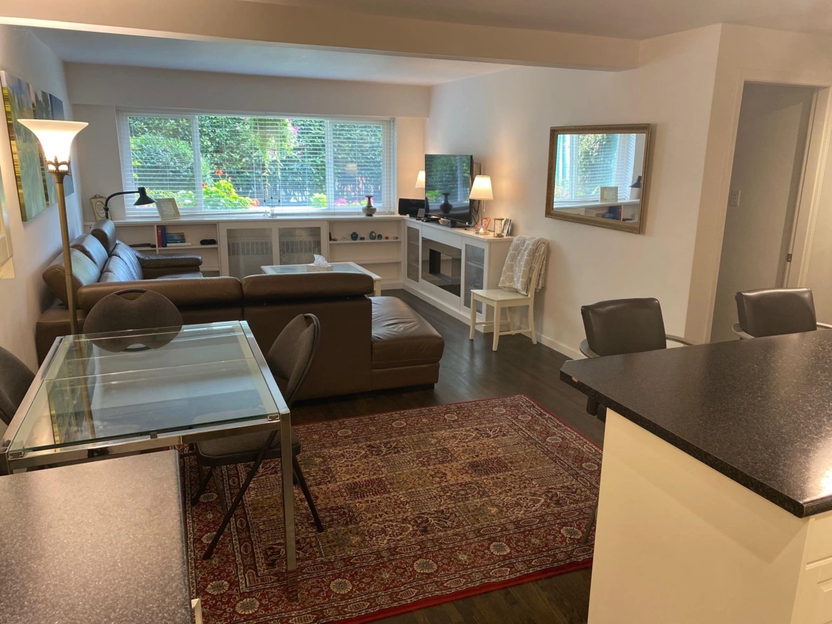 Come and see this spacious 768 s.f. totally renovated, designer 1 bedroom apartment in the heart of Kerrisdale. This easy access ground floor unit has been beautifully renovated, featuring a modern open plan kitchen, updated bathroom, new flooring and lighting, new large expansive windows throughout and an electric fire place with custom shelving all around. Residents must be 30+. No rentals allowed except cats allowed. Waitlist parking, yet ample street parking. One storage locker and the building has FREE shared laundry plus all heat and hot water inclusive in the maintenance fee of $303.00 pm! Enjoy a walkable lifestyle just steps to shops, cafés, restaurants, Kerrisdale Community Centre, Library, Arbutus Greenway, parks, tennis courts and excellent transit options.