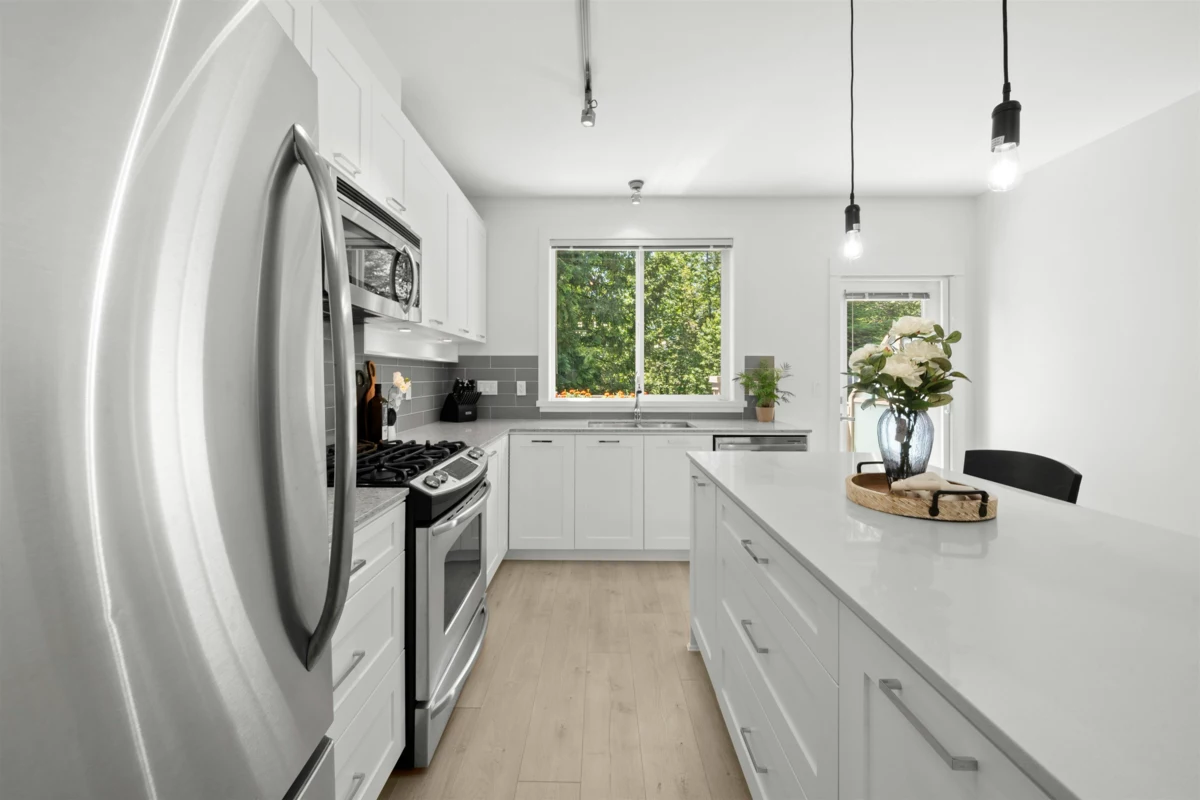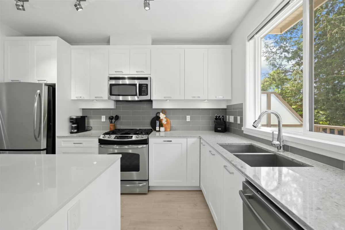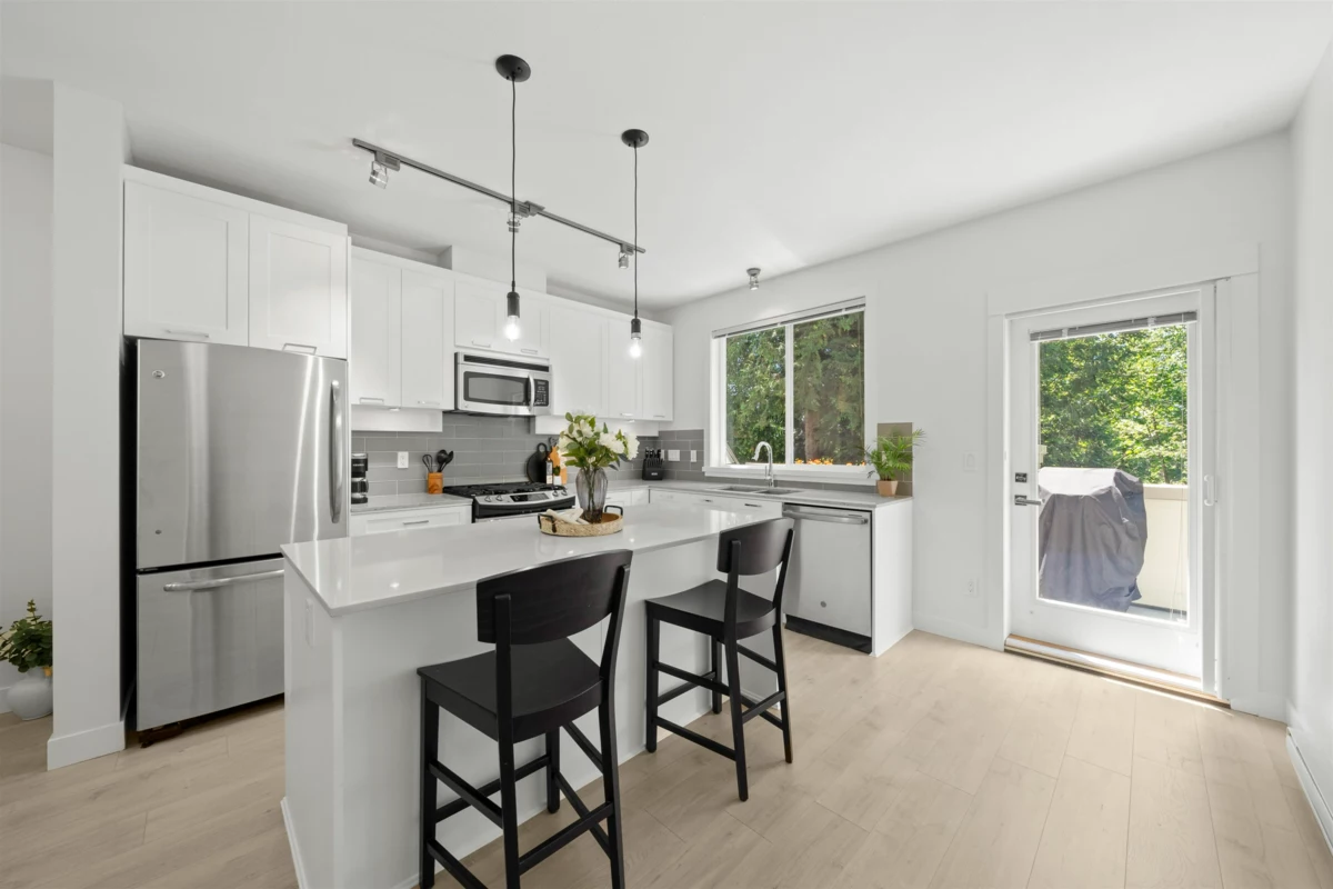 Fabulous Burke Mountain Opportunity! Located on a quiet, tree-lined street just steps to Galloway Park. This bright and updated home features an open-concept floor plan, a modern kitchen with quartz countertops, new laminate flooring throughout, fresh designer paint, and a spacious island perfect for entertaining. Enjoy west-facing exposure from the deck off the kitchen - ideal for outdoor dining and BBQs. The generous double tandem garage accommodates two vehicles with additional space for storage, a workshop, or home gym. Prime location: only a 2-minute walk to the future Burke Mountain Park and the planned joint middle and secondary school. Convenient access to shopping, transit, and Smiling Creek Elementary. This one checks all the boxes — call now!