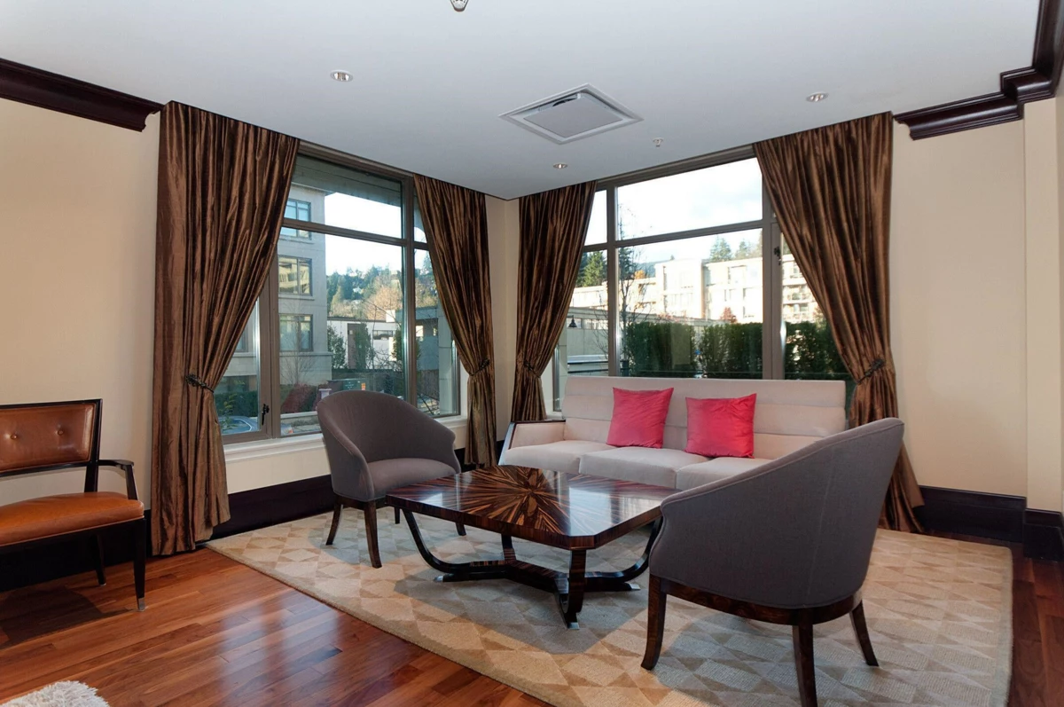 Experience timeless luxury at Waters Edge, an iconic West Vancouver residence by renowned architect Robert A.M. Stern, set along the tranquil Capilano River. This refined 2-bedroom corner suite features a bright southwest-facing den, generous indoor/outdoor space, 9 ft. ceilings, hardwood floors, electric fireplace, and high-end Miele and Sub-Zero appliances. The spa-like bathrooms and thoughtful layout create a sophisticated and comfortable living experience. Just a short walk to Park Royal’s shops and restaurants, this home combines convenience with elegance. Enjoy premium amenities including a fitness centre, library, sauna and steam rooms, and a concierge. Includes 1 parking stall and 1 storage locker. Book your private showing today! Call today to schedule your private showing.